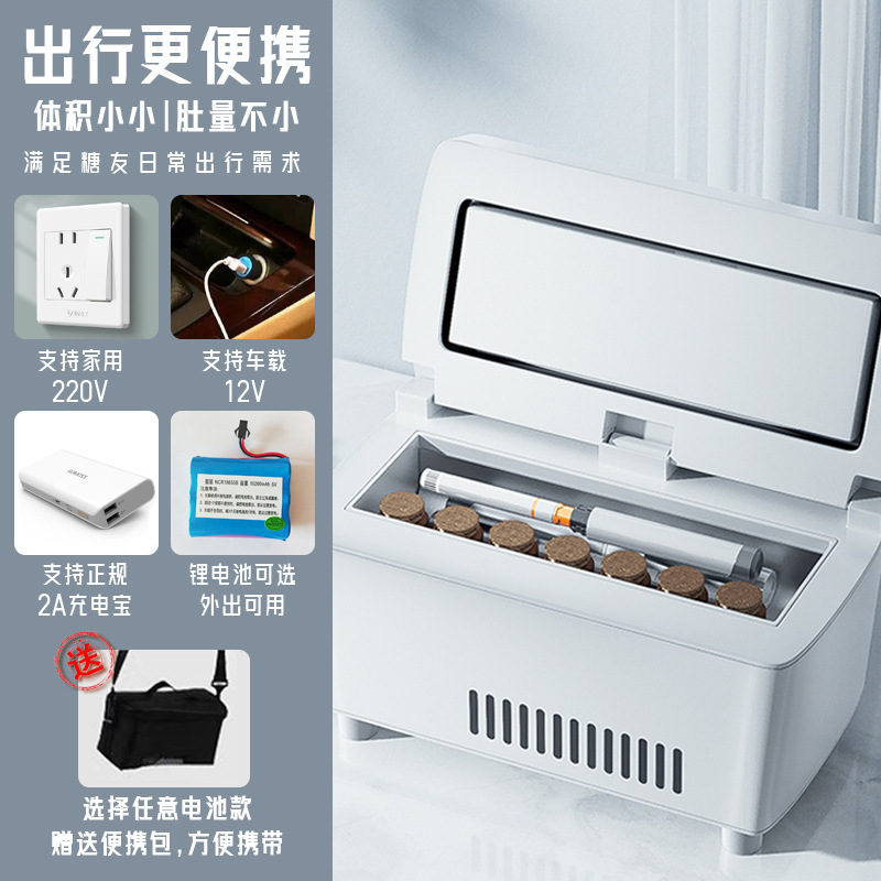 흑인과 백인 강화 휴대용 인슐린 냉장고 차 충전 냉동 미니 냉장고 약 냉장고