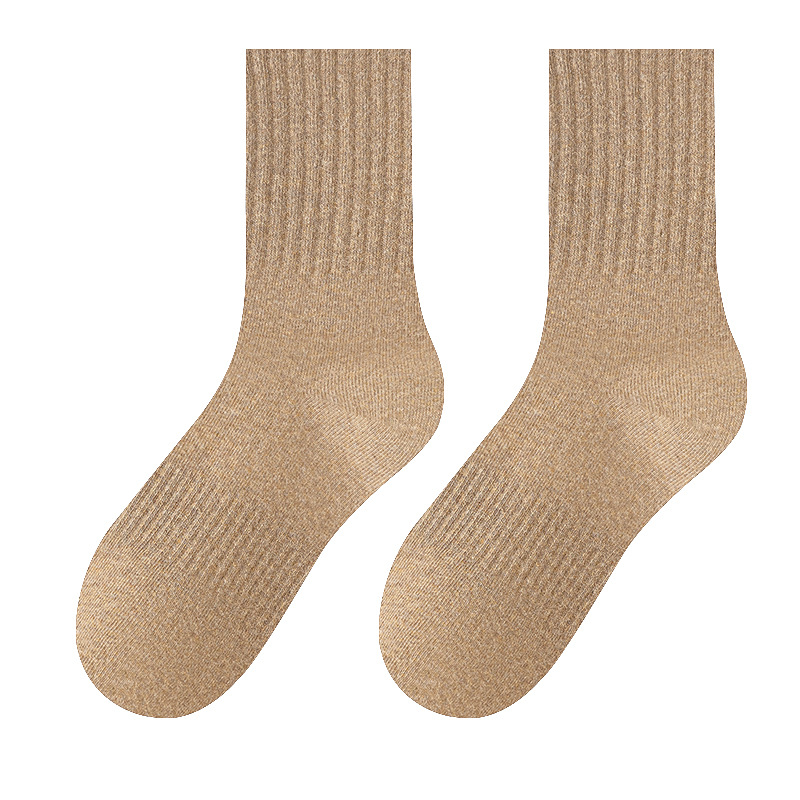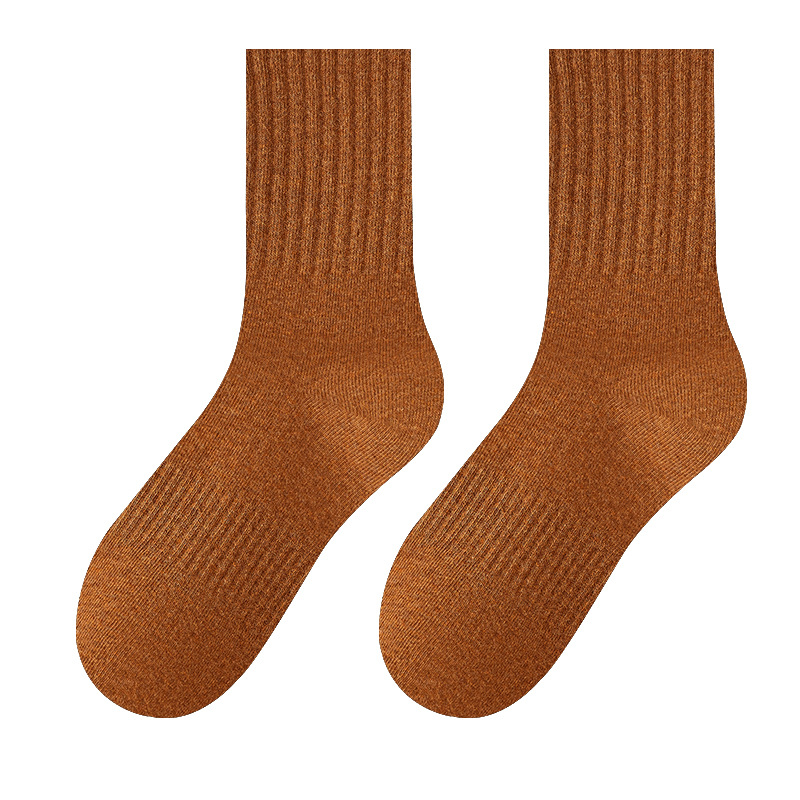 주지 양말 여성 미들 배럴 탈취제 땀 흡수 흑백 스타킹 소녀 솔리드 컬러 스포츠 양말 가을과 겨울 다크 브라운 양말