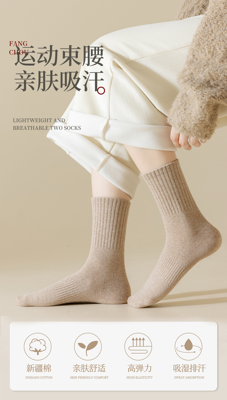 주지 양말 여성 미들 배럴 탈취제 땀 흡수 흑백 스타킹 소녀 솔리드 컬러 스포츠 양말 가을과 겨울 다크 브라운 양말스토어 가기