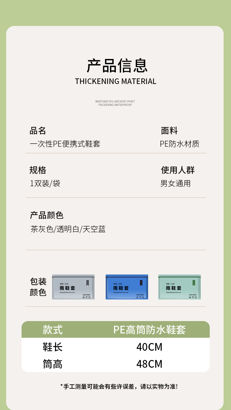 일회용 카드형 레인슈즈 커버, 방수, 비오는 날에도 미끄럼 방지, 성인 및 어린이용, 휴대용 압축 방수 신발 커버