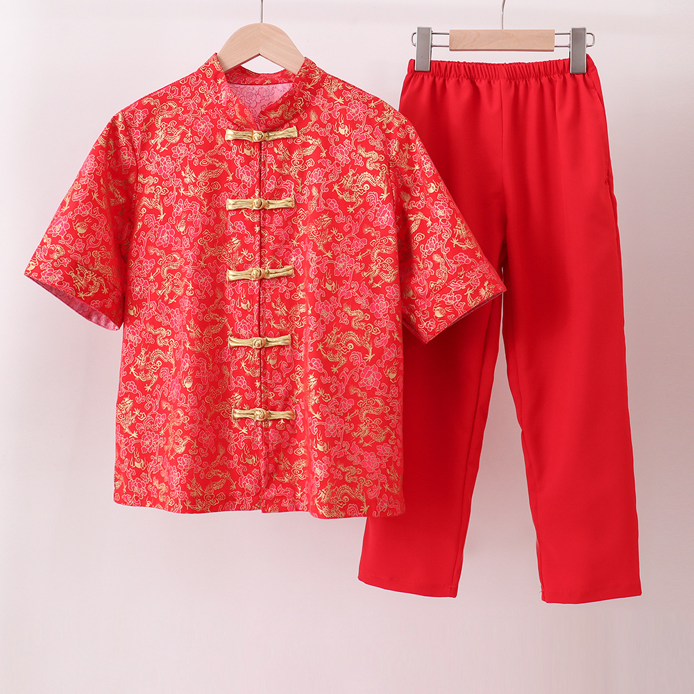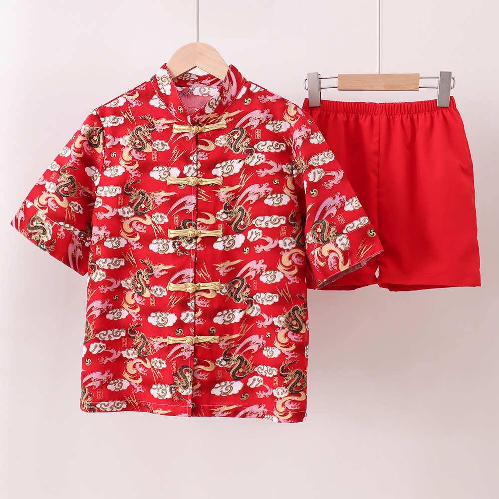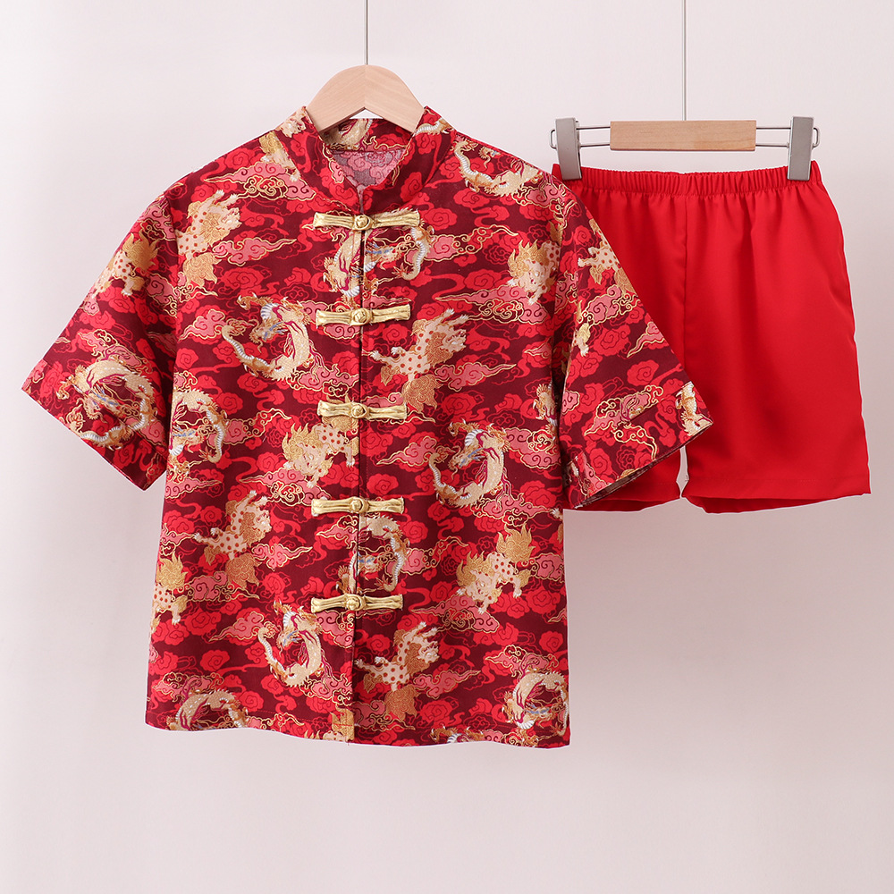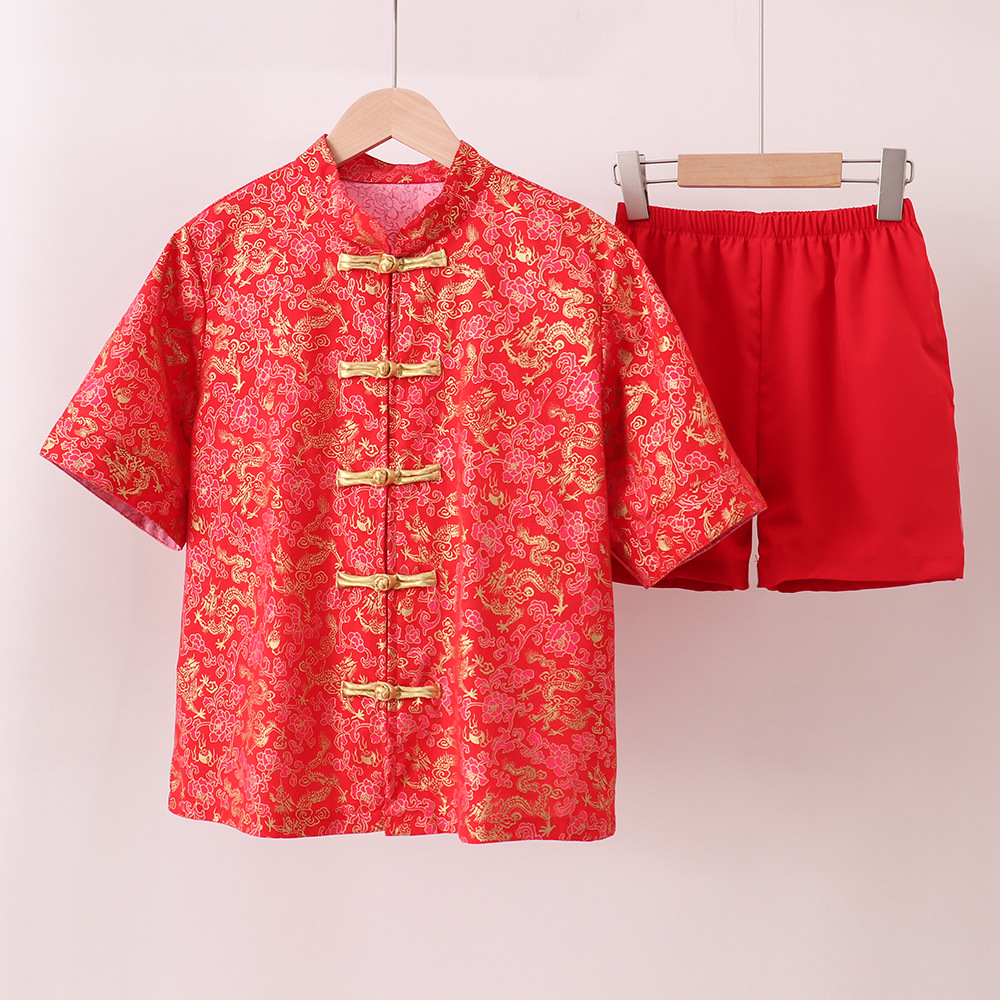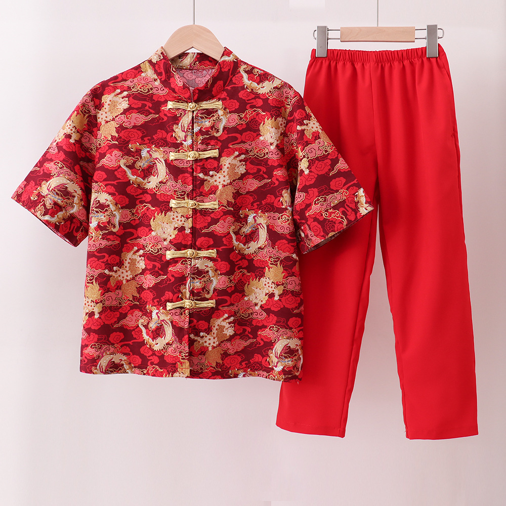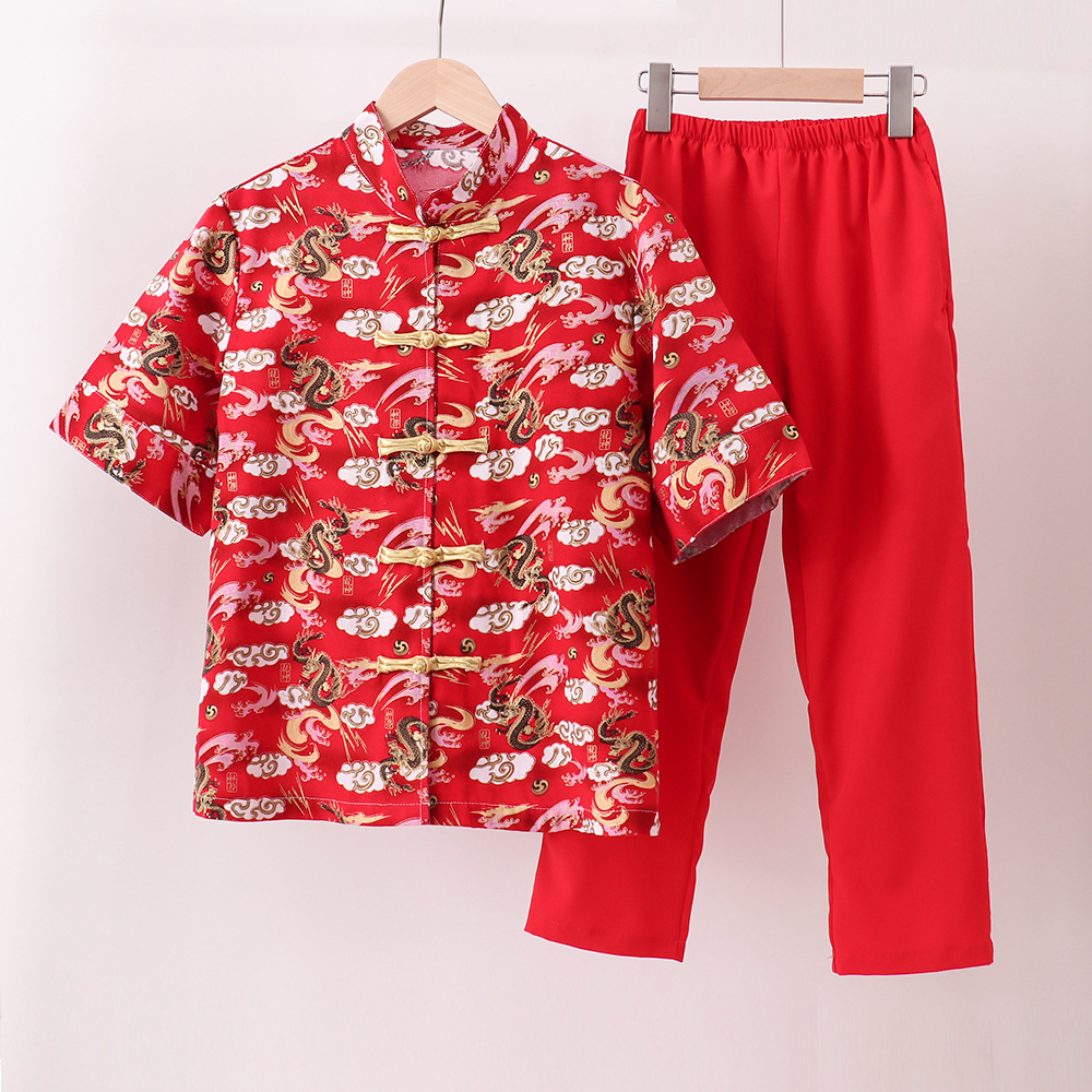 어린이 합창 공연 의류 중국 스타일 탕 세트 중국 민족 한푸 세트 소년 붉은 신년 의류
