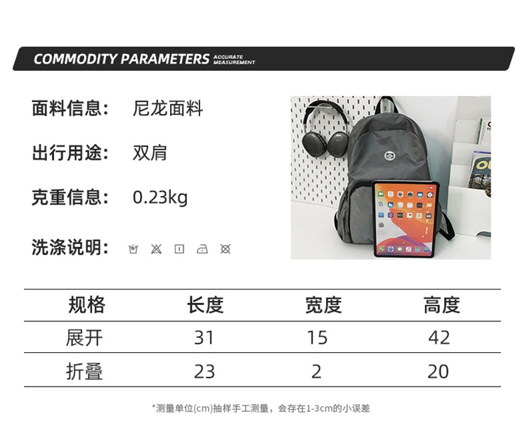 캐주얼 등산 배낭 새로운 접이식 배낭 유행 간단한 캐주얼 올 매치 유니섹스 체크 스쿨백스토어 가기