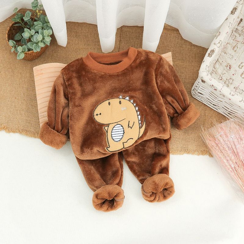 아기 잠옷 세트 2025 신상품 중소 어린이 가을 겨울 산호 벨벳 편안하고 따뜻한 남아 여아 홈웨어