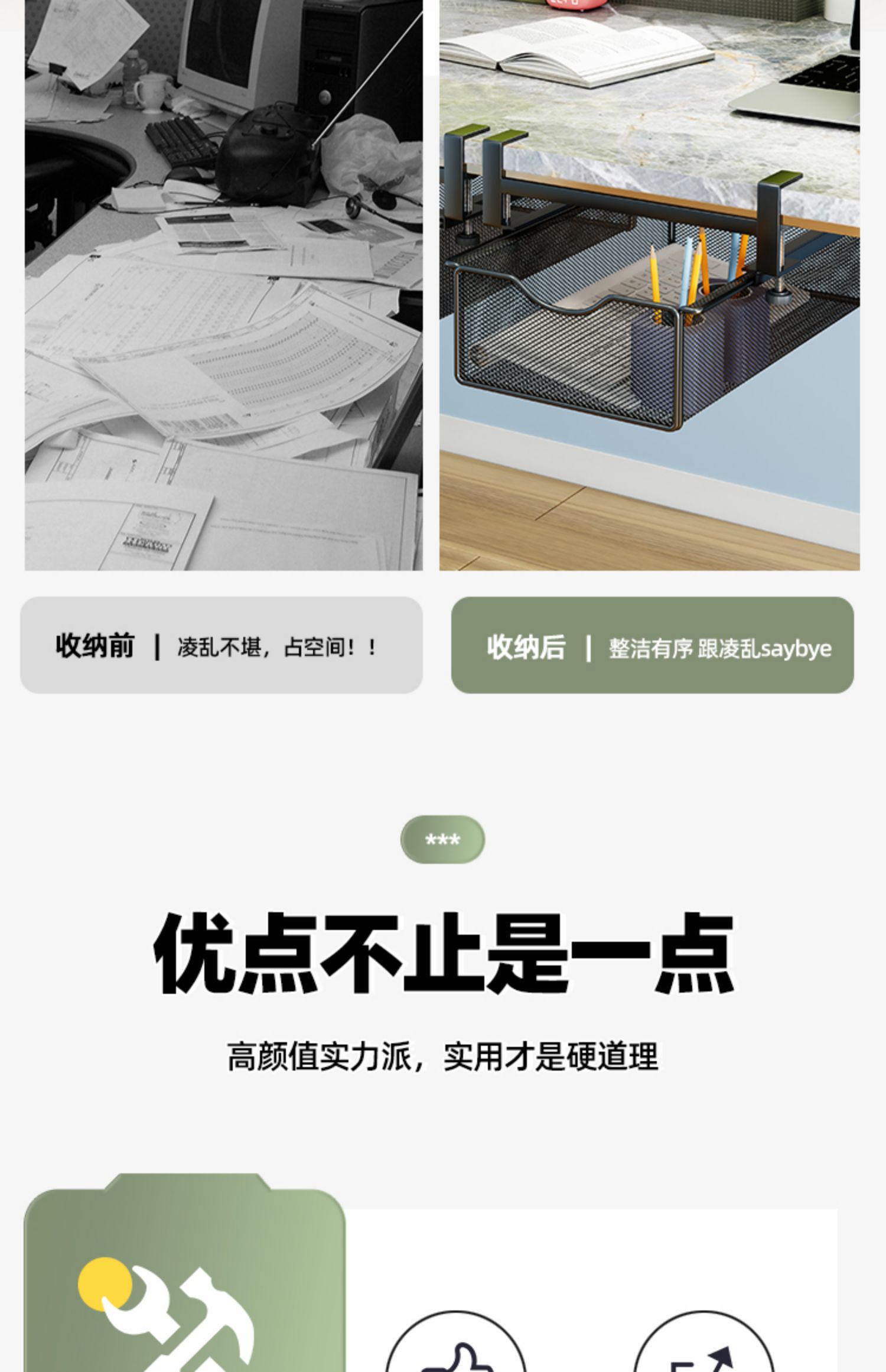 책상 서랍 보관 상자 책상 밑바닥 마무리 문구 책상 변형 교수형 바구니 보관 랙 데스크 쪽 좋은 것들 바구니스토어 가기