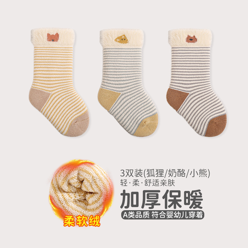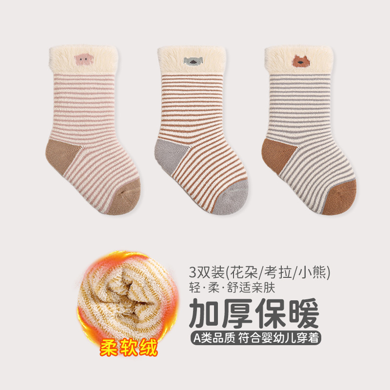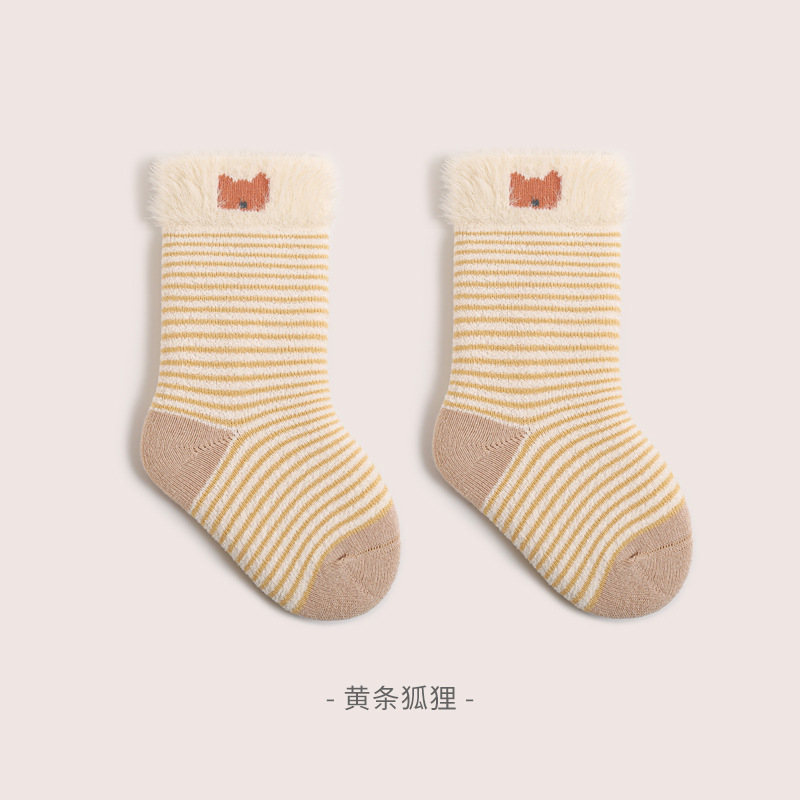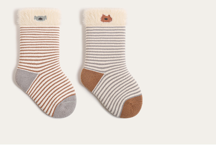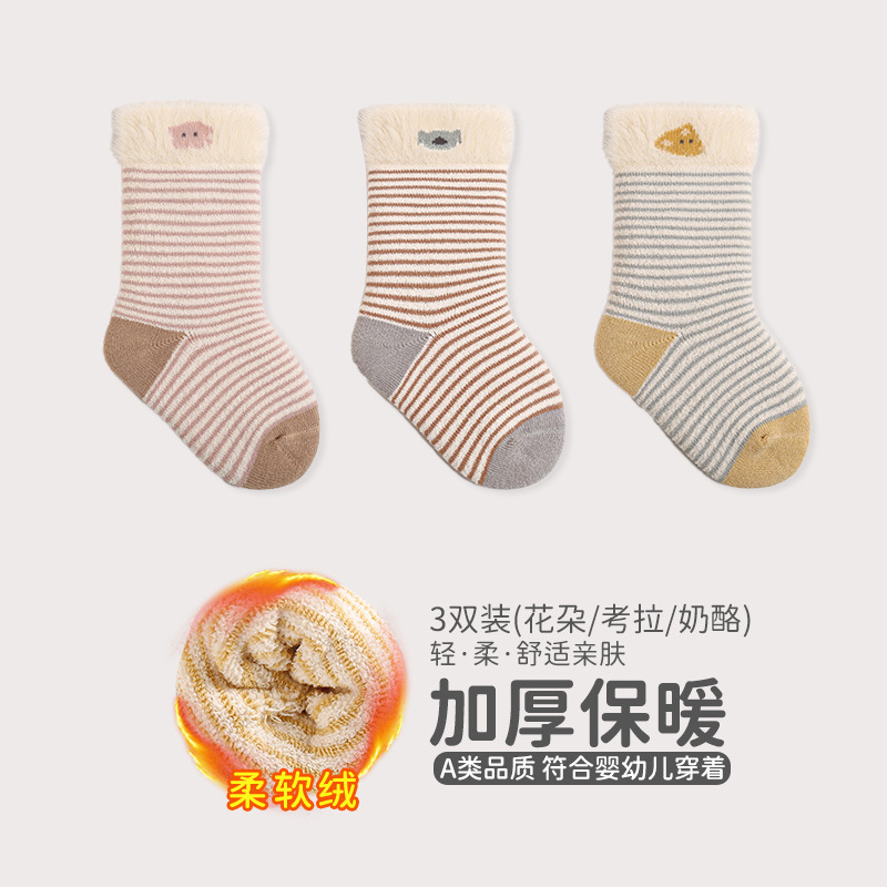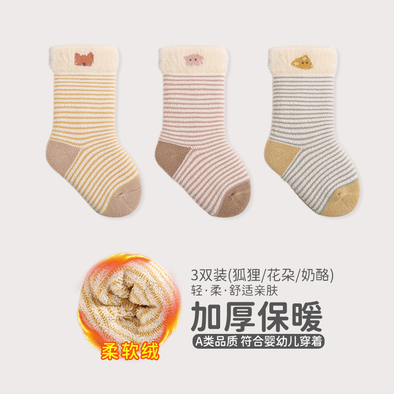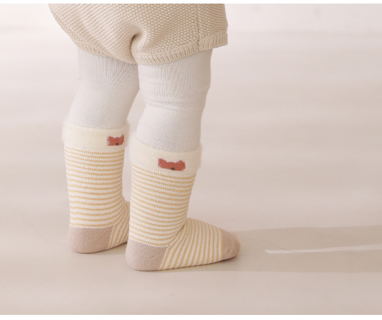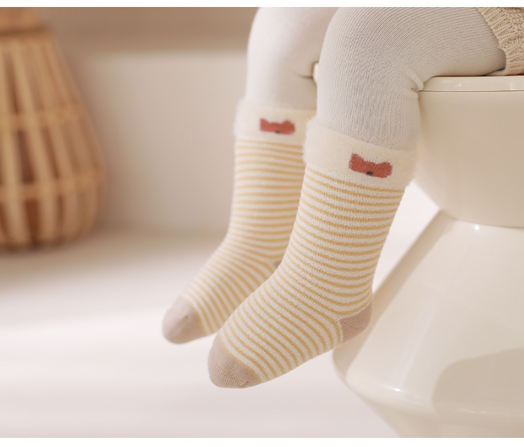 엄선된 아동용 테리 양말, 가을 겨울용 두꺼운 보온 아기 양말, 스트라이프 밍크 무봉제 신생아 양말 A급스토어 가기