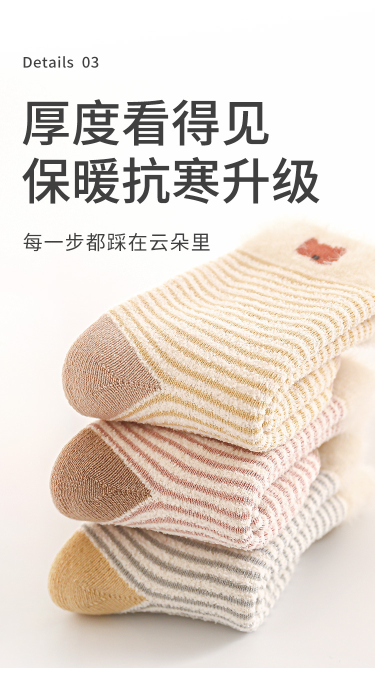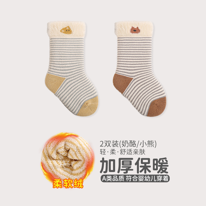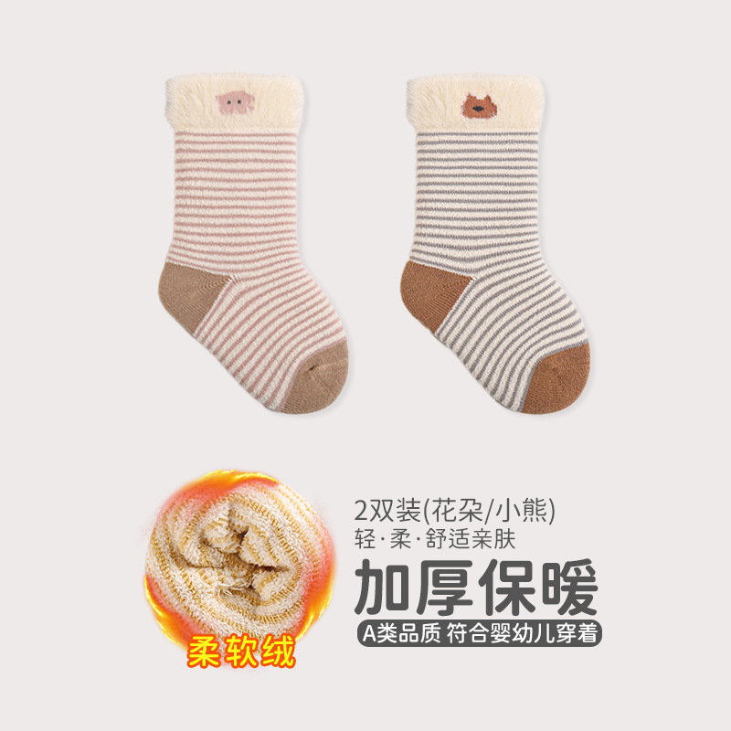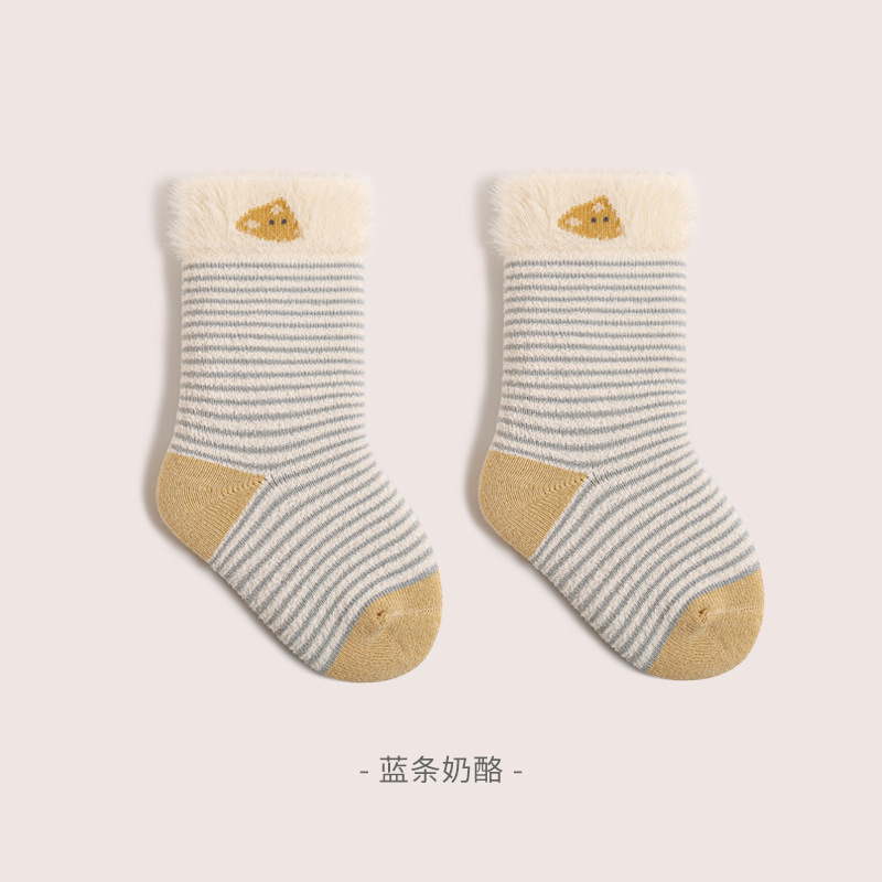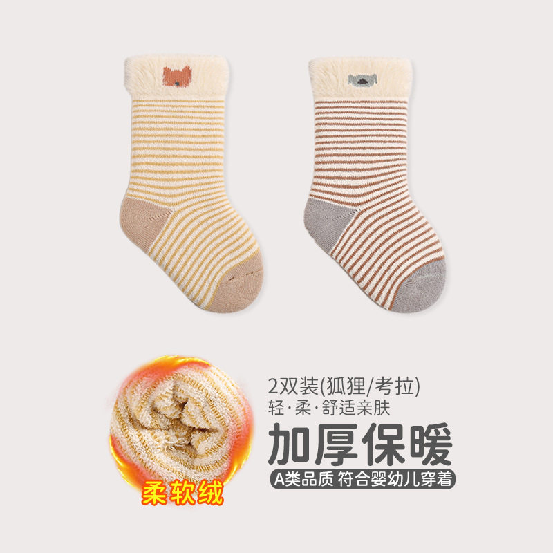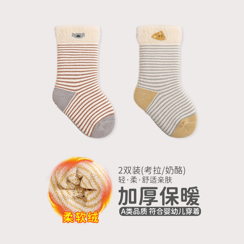 엄선된 아동용 테리 양말, 가을 겨울용 두꺼운 보온 아기 양말, 스트라이프 밍크 무봉제 신생아 양말 A급스토어 가기
