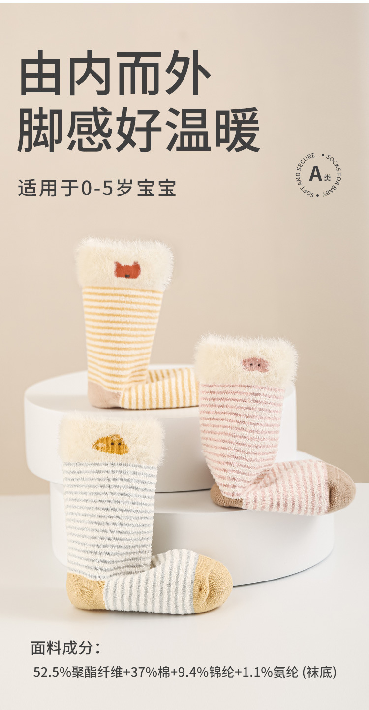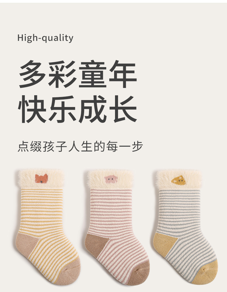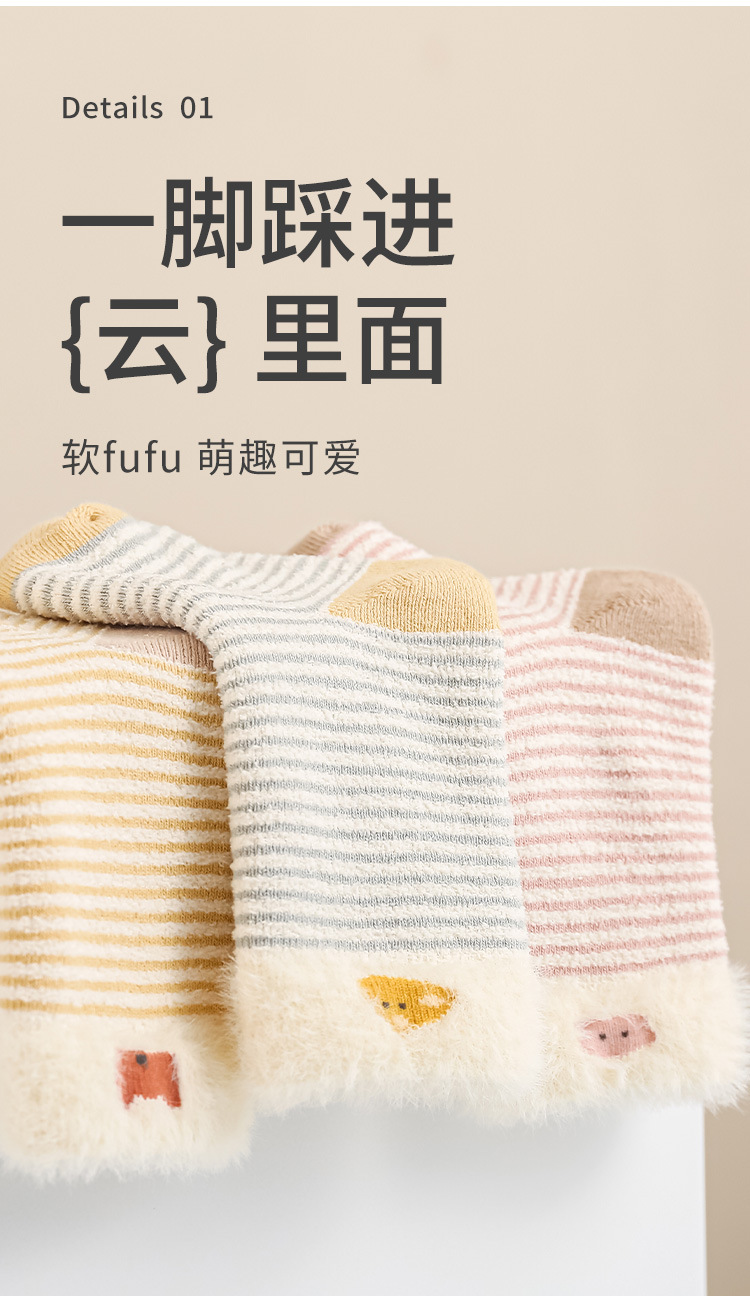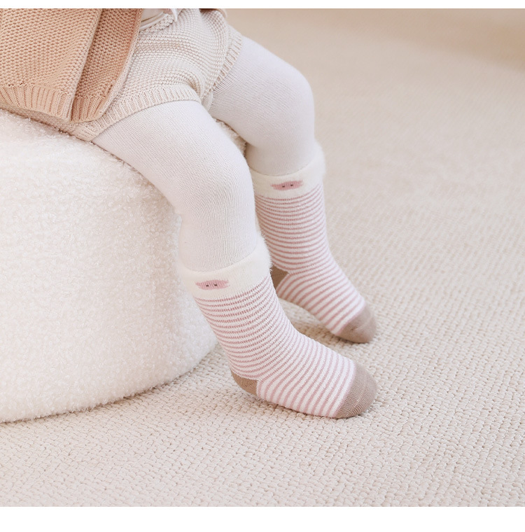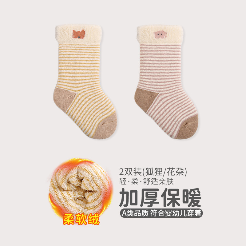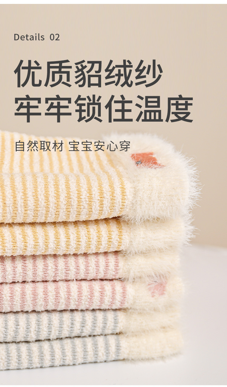 엄선된 아동용 테리 양말, 가을 겨울용 두꺼운 보온 아기 양말, 스트라이프 밍크 무봉제 신생아 양말 A급스토어 가기