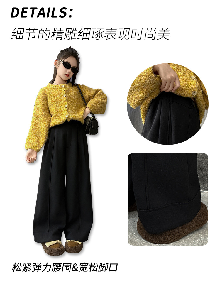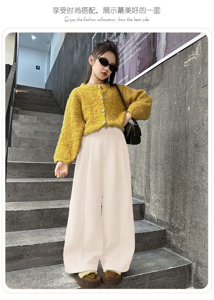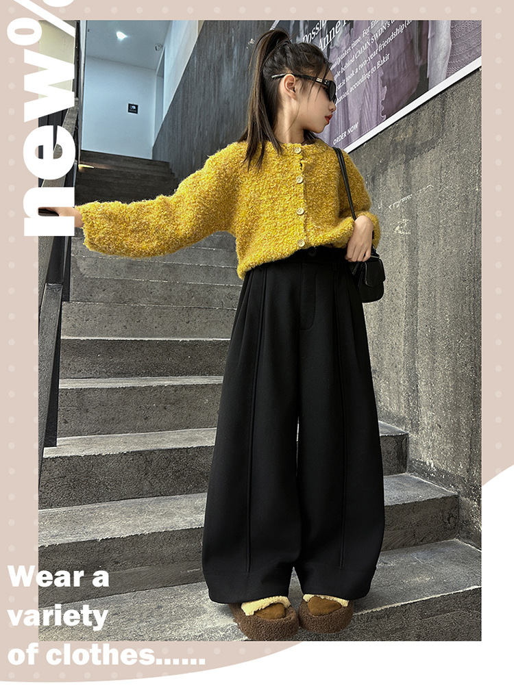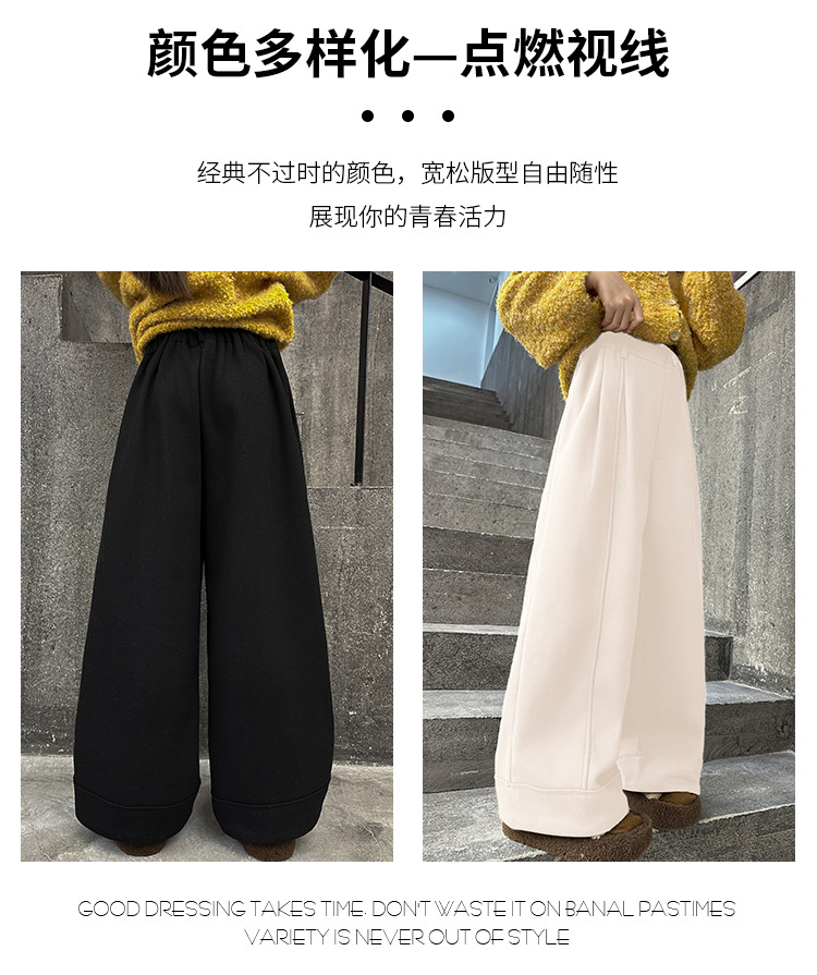 소녀 가을과 겨울 모직 바지 2024 새로운 스타일 유행 넓은 다리 바지 어린이 소녀 겨울 두꺼운 넓은 다리 바지스토어 가기