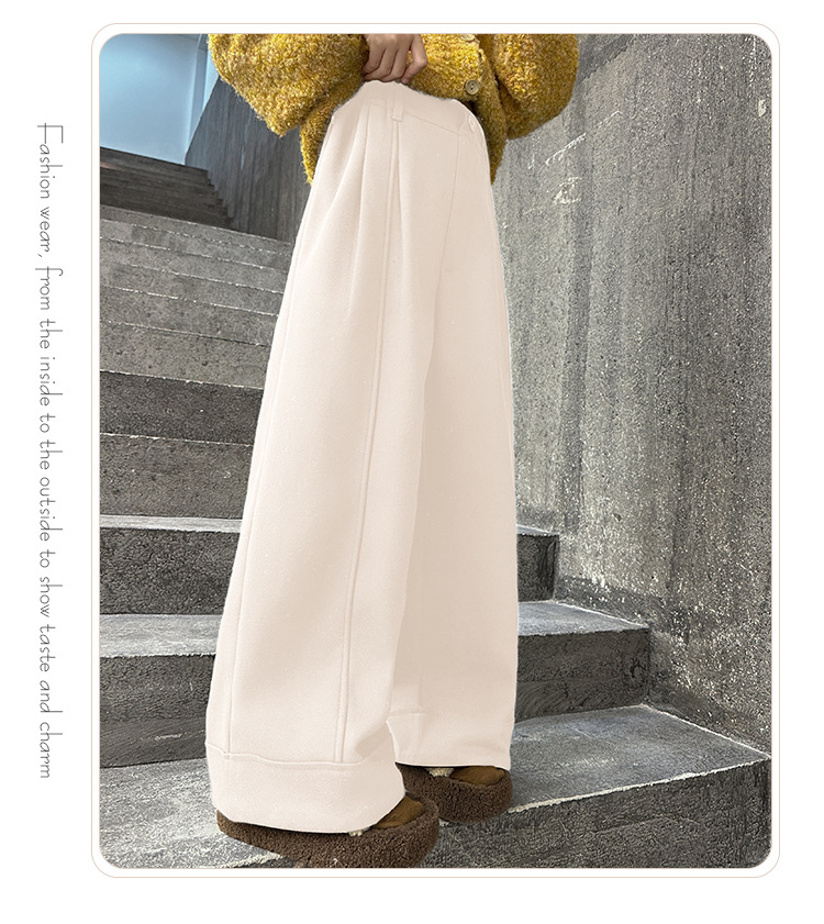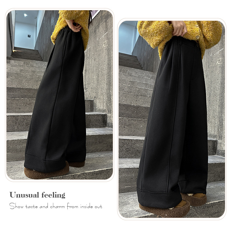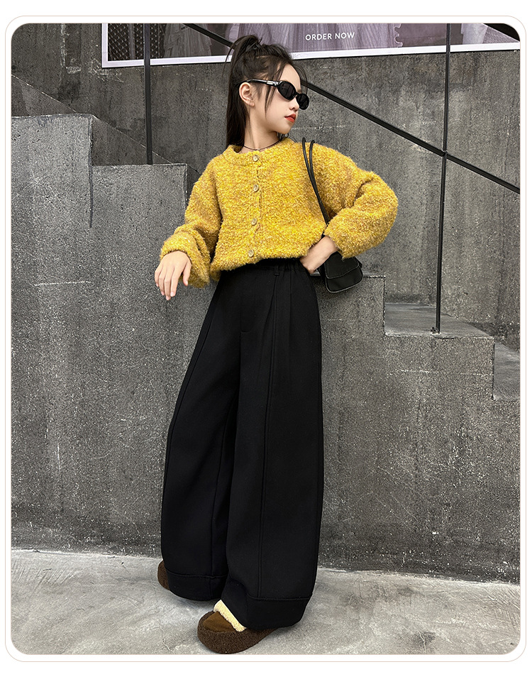소녀 가을과 겨울 모직 바지 2024 새로운 스타일 유행 넓은 다리 바지 어린이 소녀 겨울 두꺼운 넓은 다리 바지