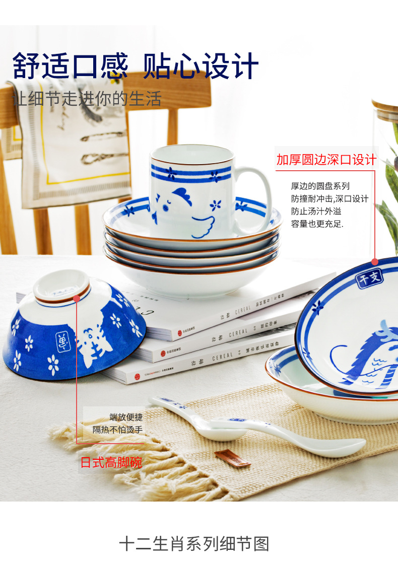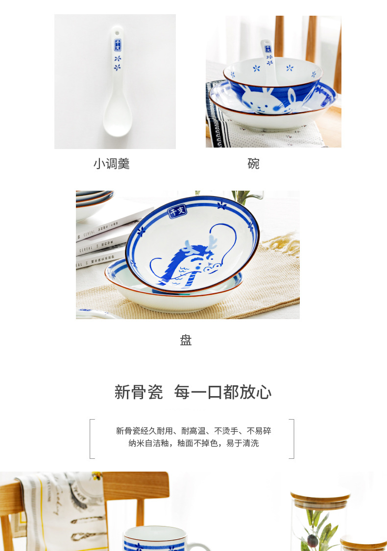 조디악 그릇 Jingdezhen 세라믹 그릇 만화 귀여운 창조적 인 밥 그릇 가정용 야채 그릇 식기스토어 가기