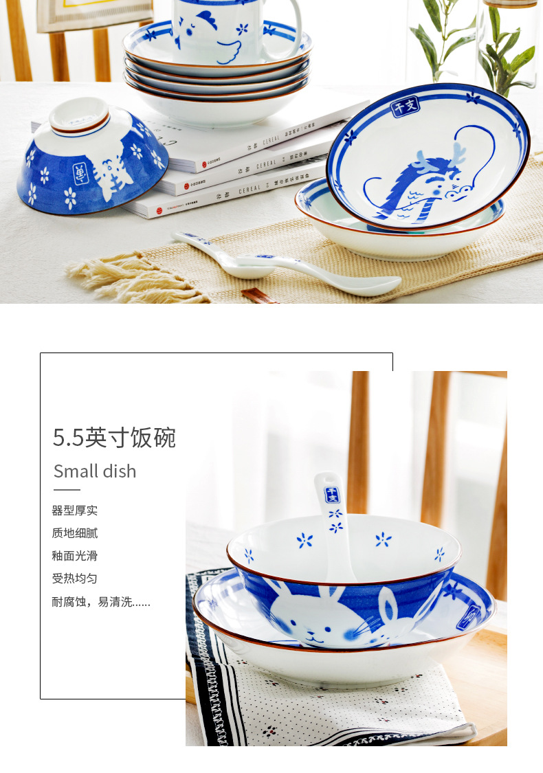 조디악 그릇 Jingdezhen 세라믹 그릇 만화 귀여운 창조적 인 밥 그릇 가정용 야채 그릇 식기