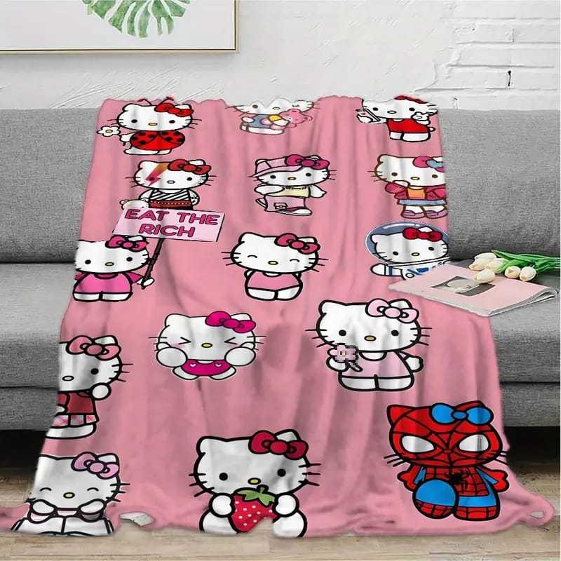 소스 제조업체 맞춤형 헬로 키티 담요 Kuromi 단면 인쇄 180*220cm 롤 엣지 담요 국경 간 특별