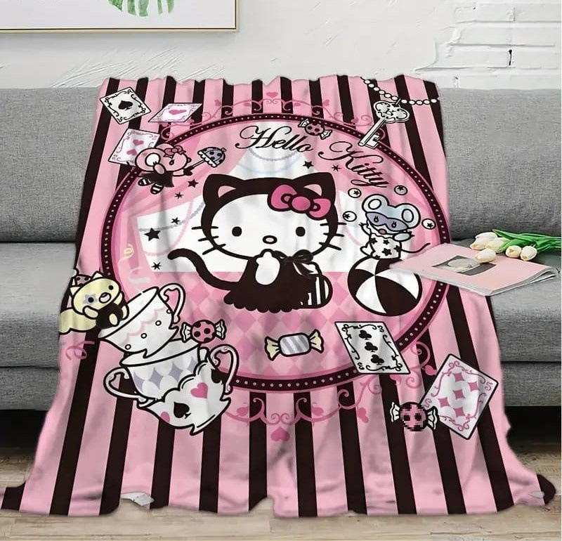 소스 제조업체 맞춤형 헬로 키티 담요 Kuromi 단면 인쇄 180*220cm 롤 엣지 담요 국경 간 특별스토어 가기
