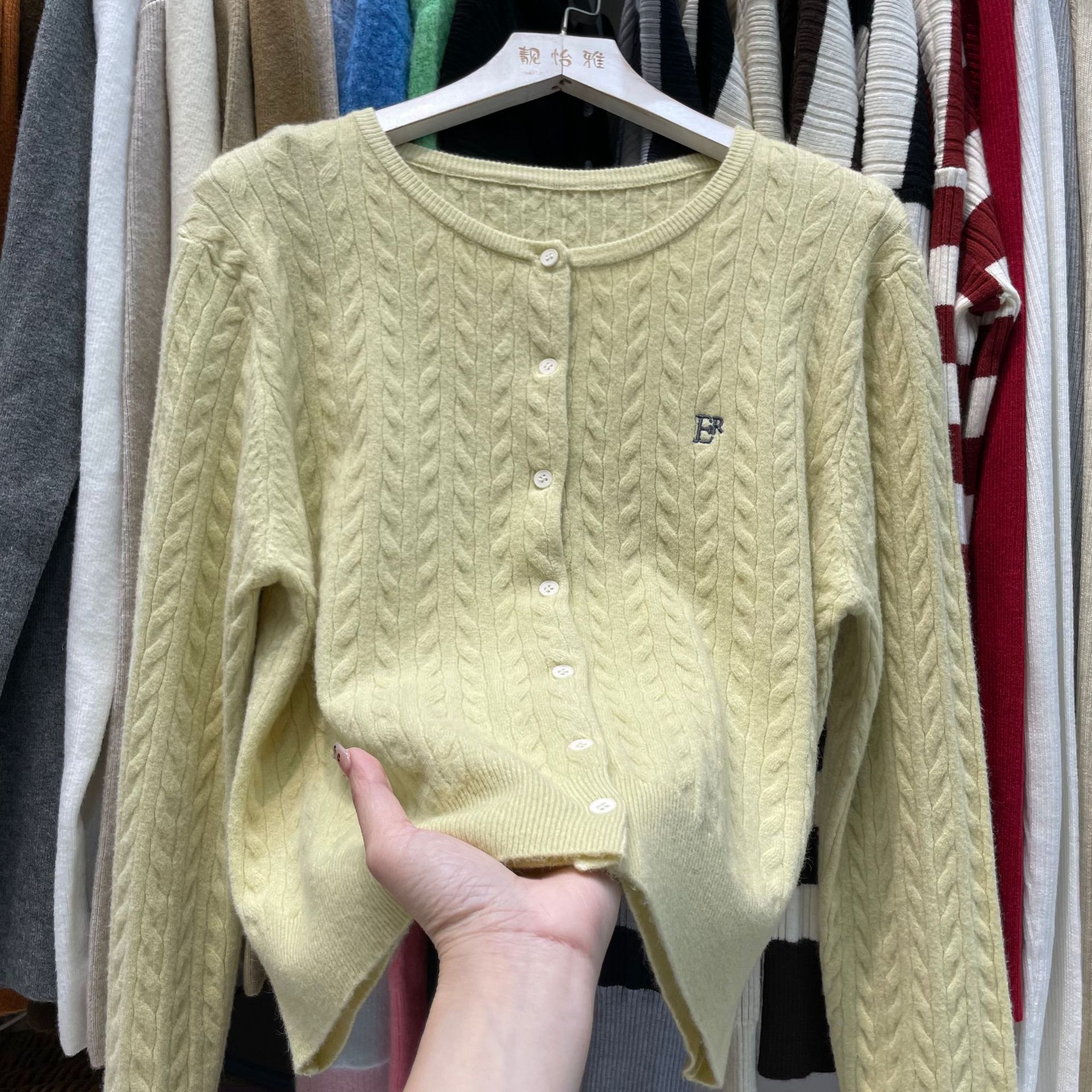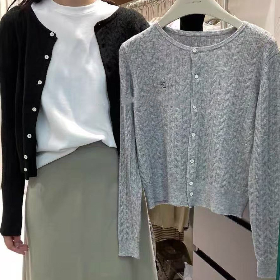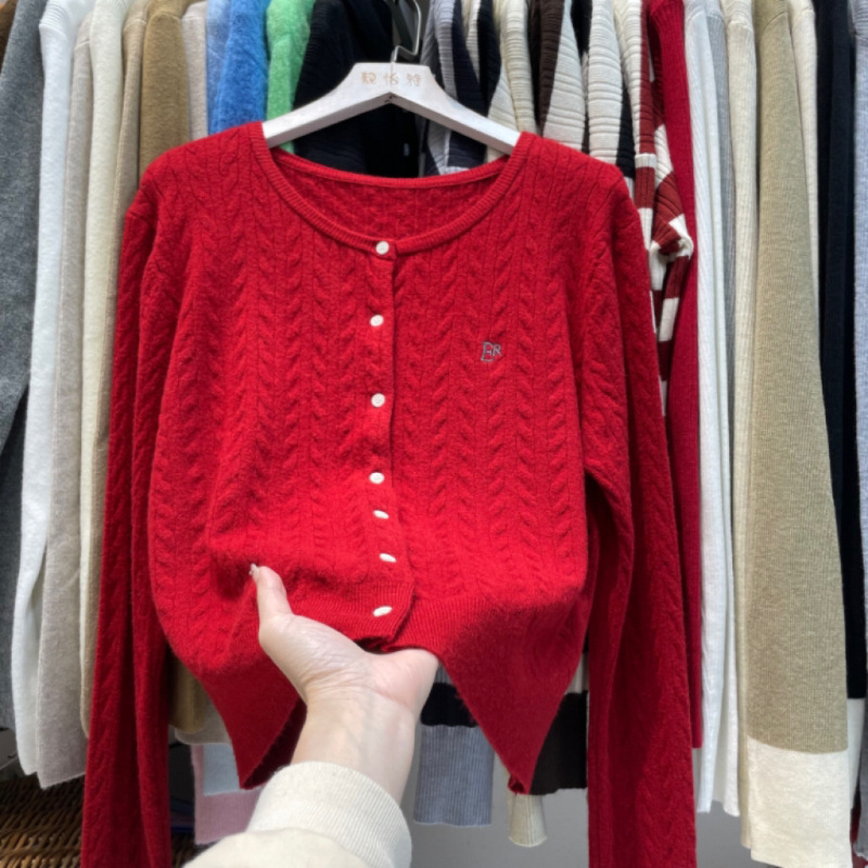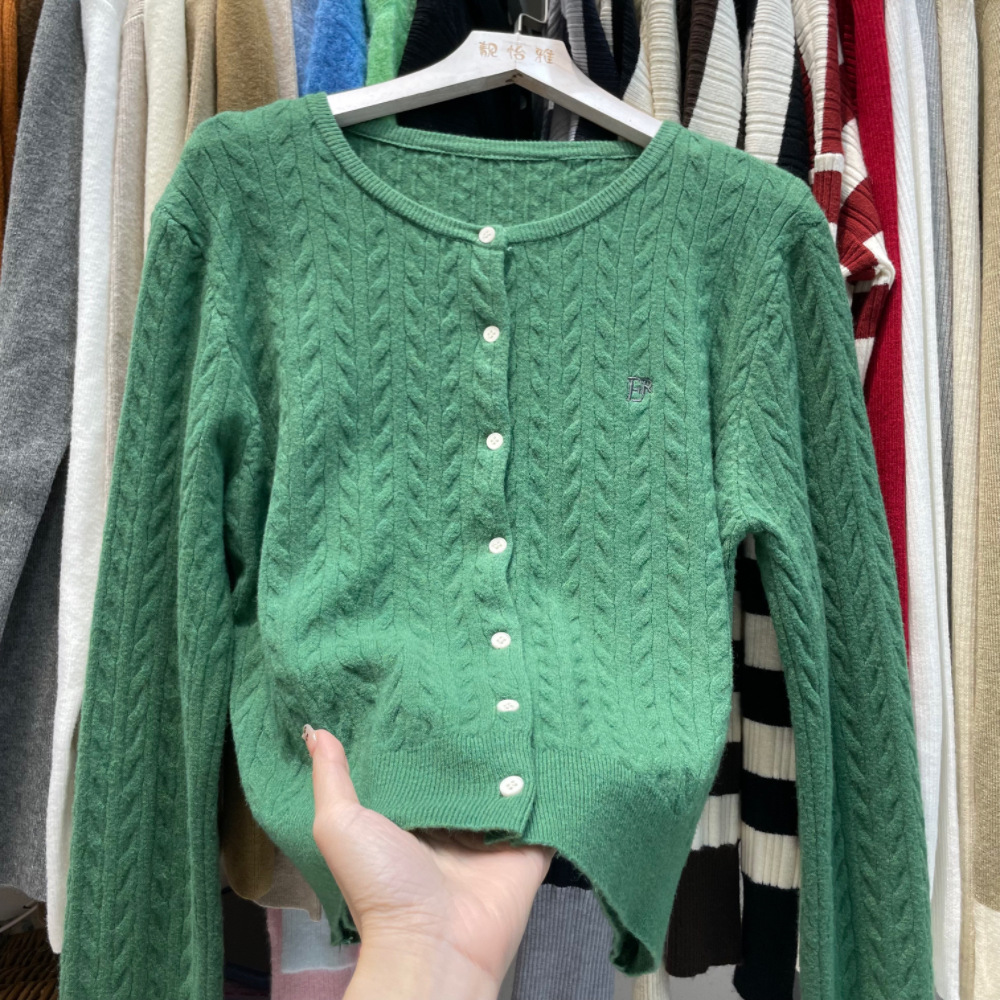 작은 꼬임 니트 가디건, 짧은 스타일, 여성용, 작은 키에도 잘 어울리는, 정형 어깨, 레터 자수, 컬리지 스타일 스웨터, 한국 스타일의 베이스 레이어스토어 가기