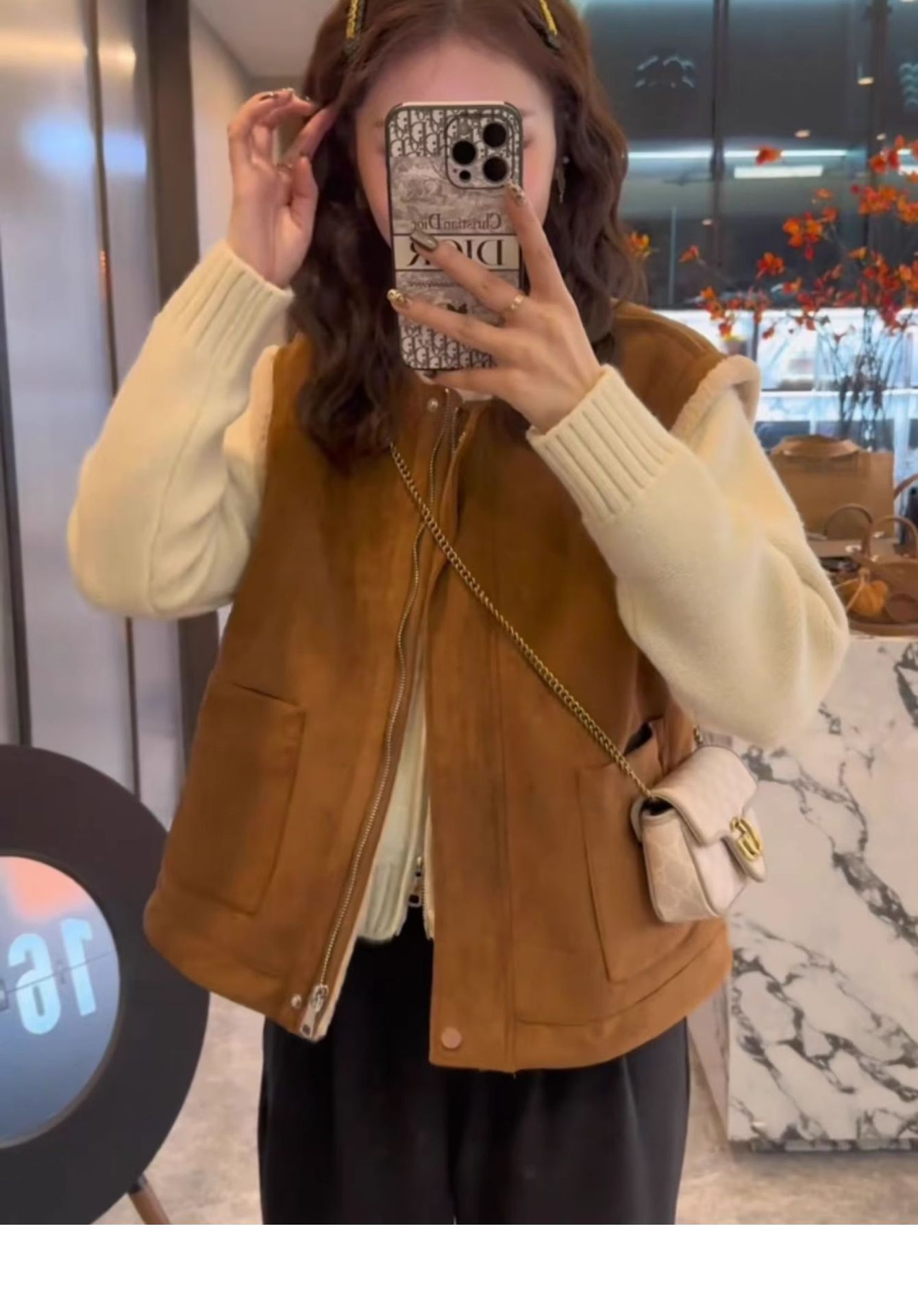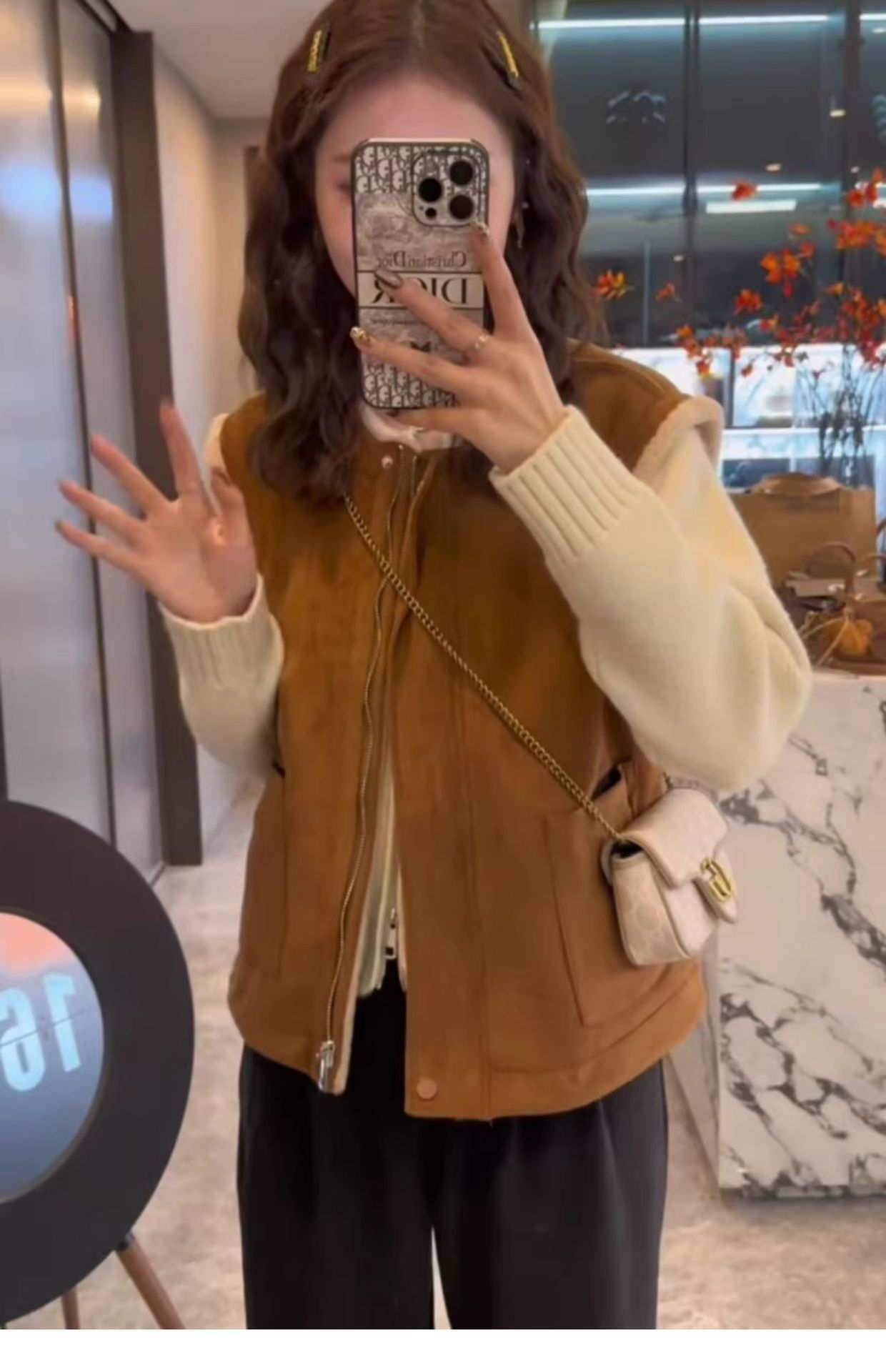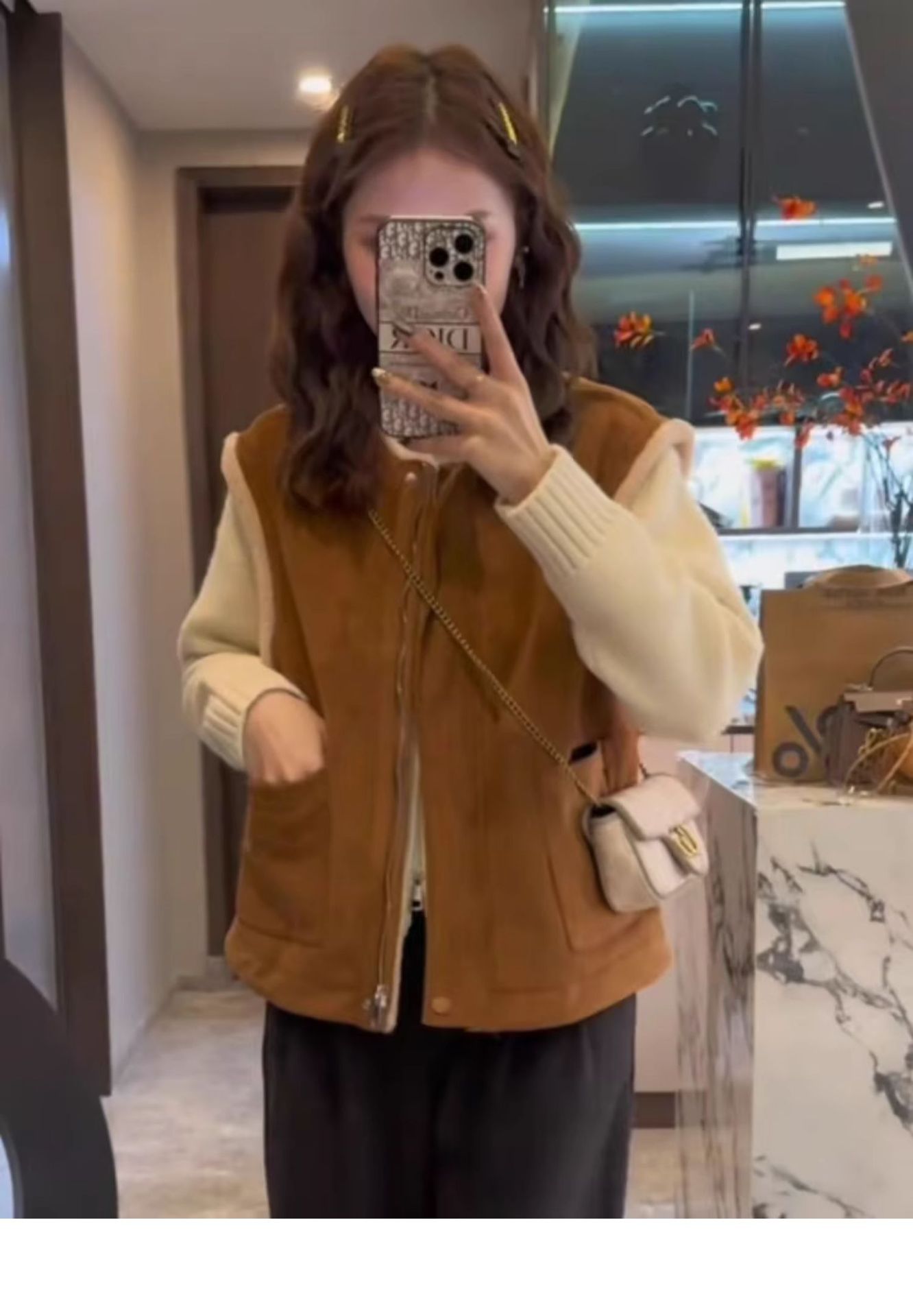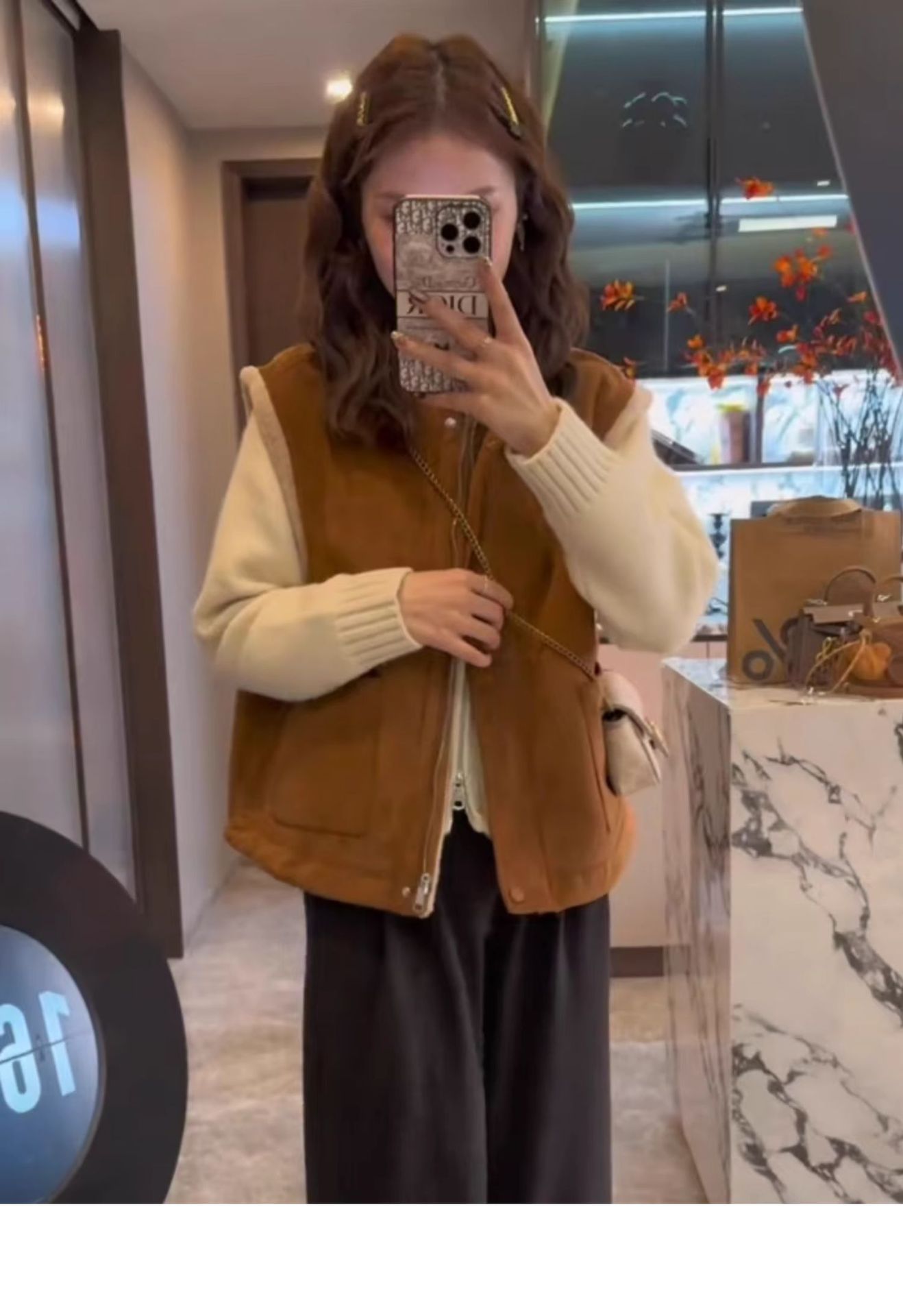 유럽산 양면 양모 조끼 여성 2024 년 가을과 겨울 느슨한 모피 원피스 조끼 웨이스트코트 디어스킨 벨벳 조끼스토어 가기