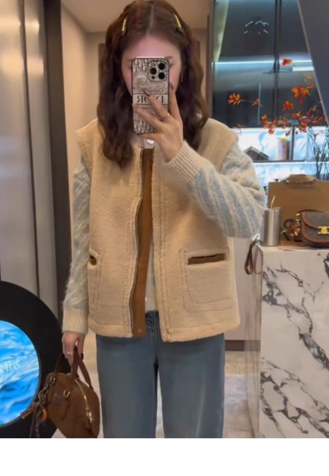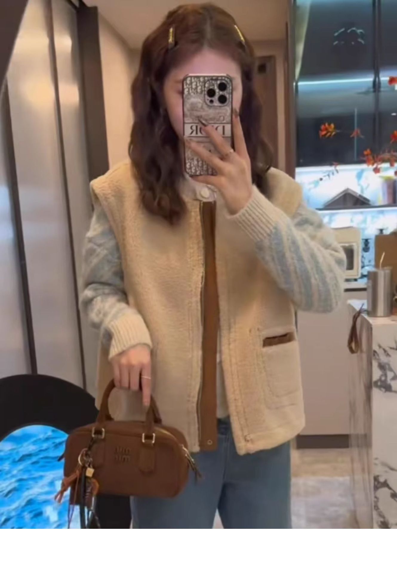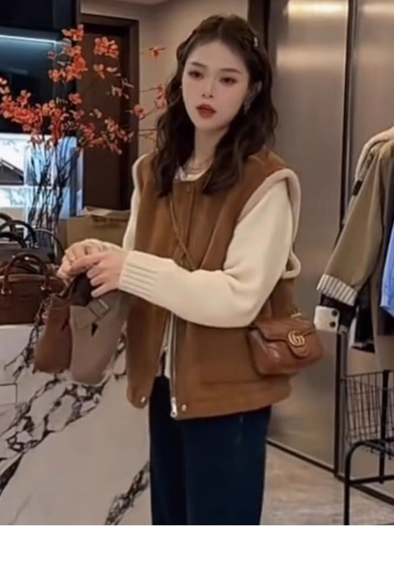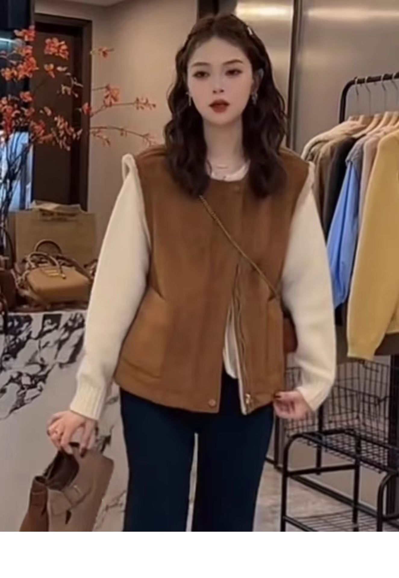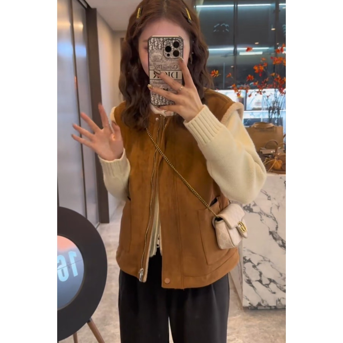 유럽산 양면 양모 조끼 여성 2024 년 가을과 겨울 느슨한 모피 원피스 조끼 웨이스트코트 디어스킨 벨벳 조끼스토어 가기