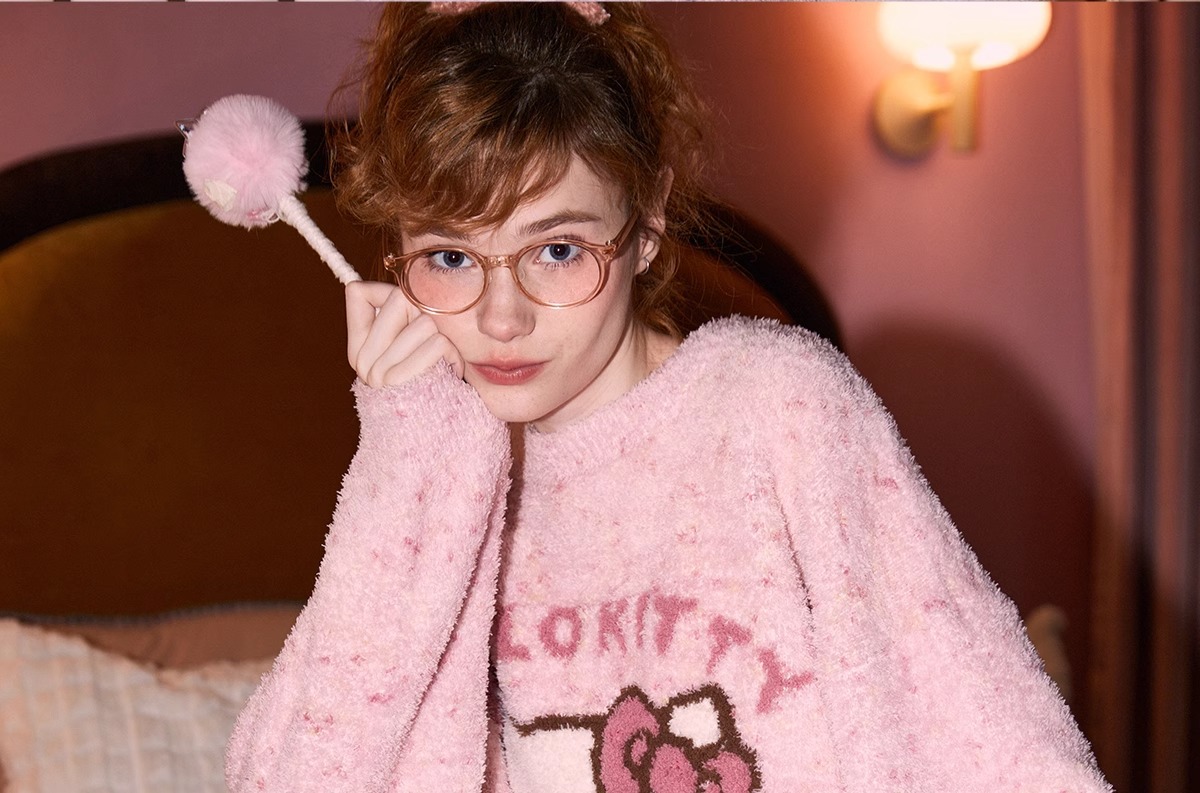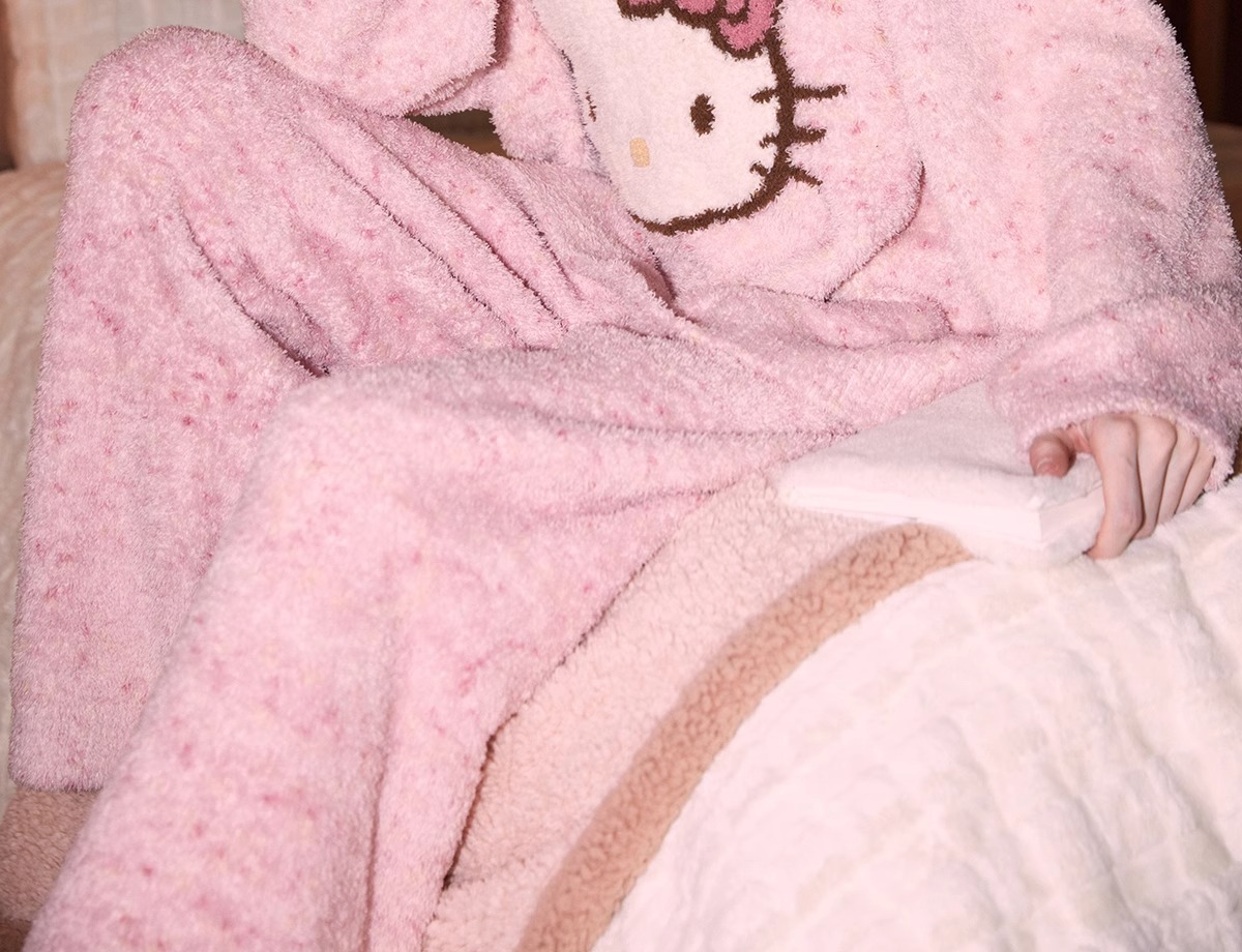 헬로 키티 하프 벨벳 잠옷 여성 2024 가을과 겨울 새로운 달콤한 헬로 키티 산호 벨벳 홈 의류 세트스토어 가기