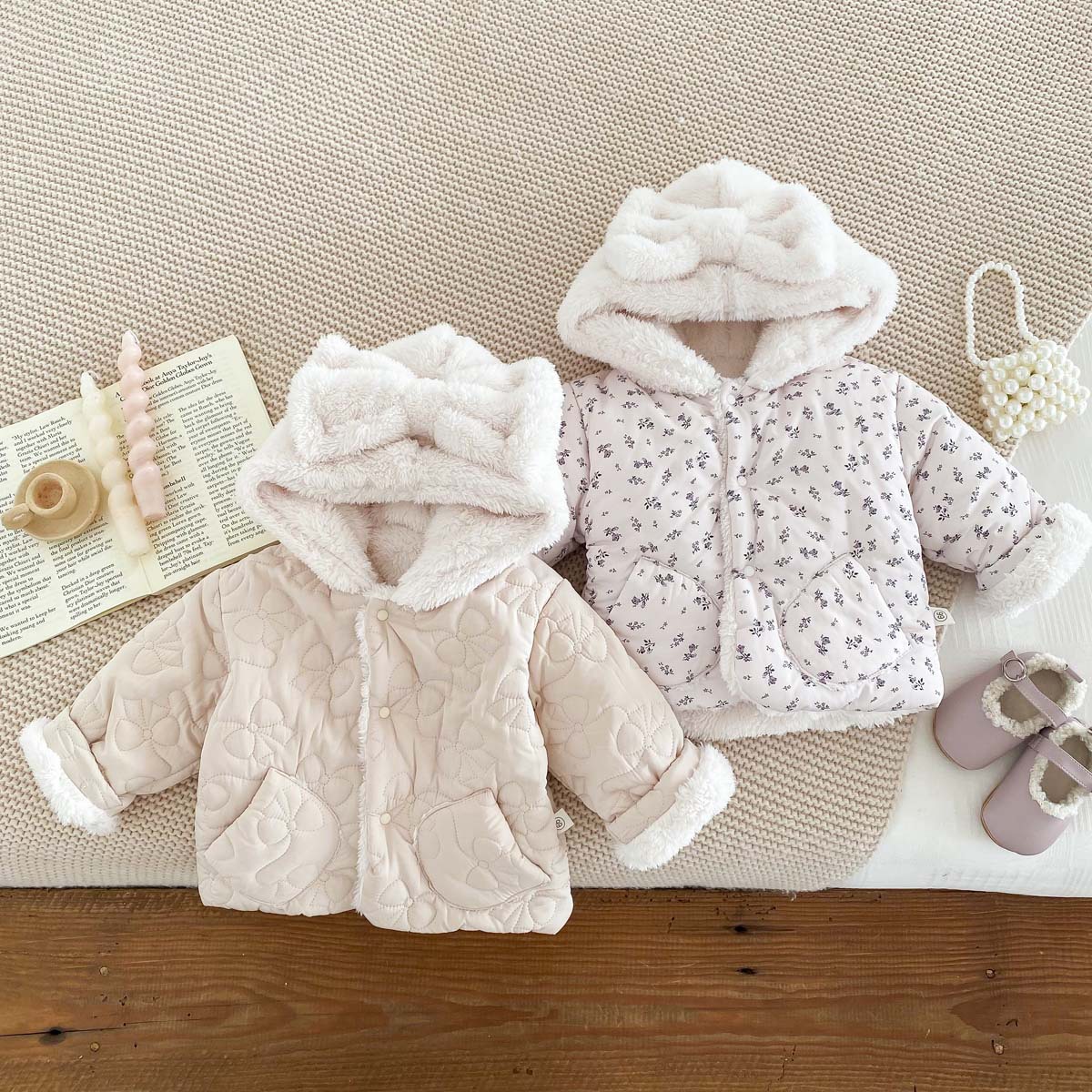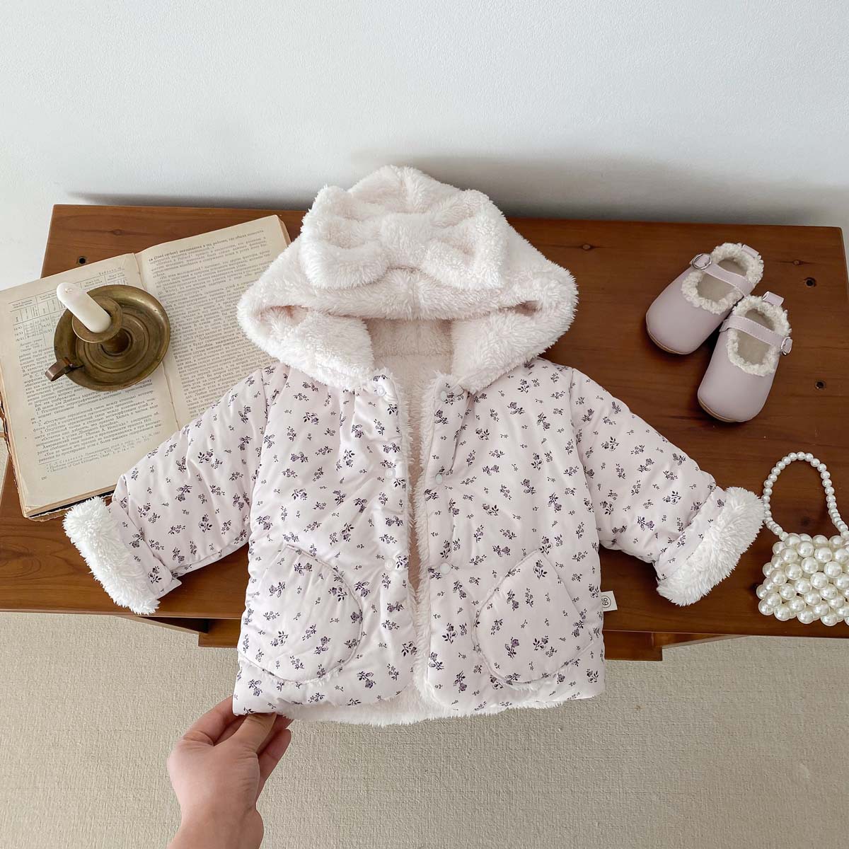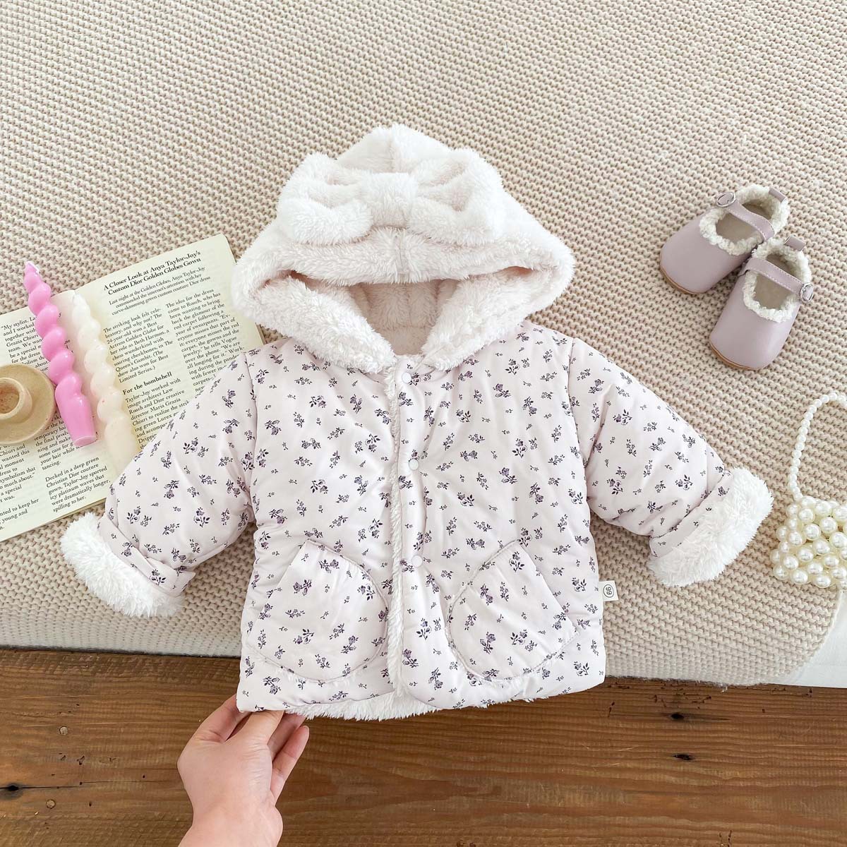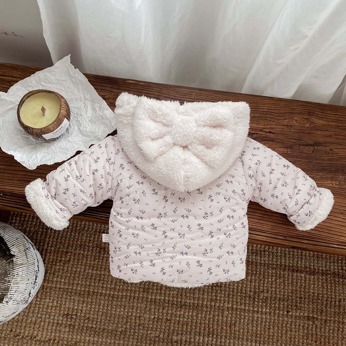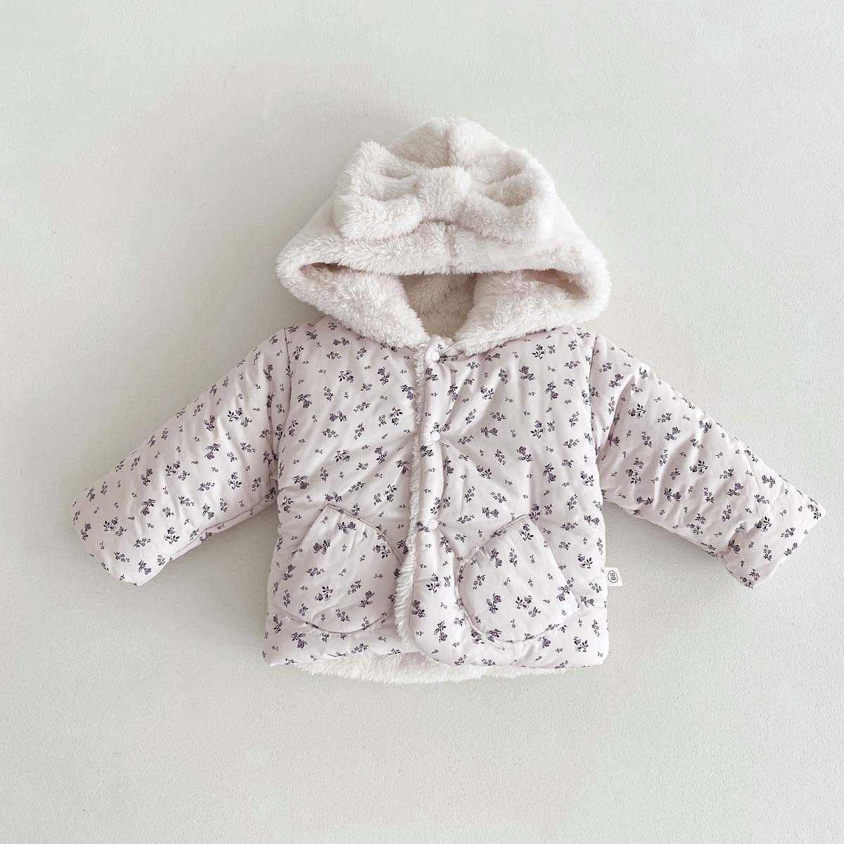 한국 스타일 겨울 소녀의 두꺼운 코트 새로운 아기 소녀의 따뜻한 활 후드 귀여운 코트 면화 패딩 재킷