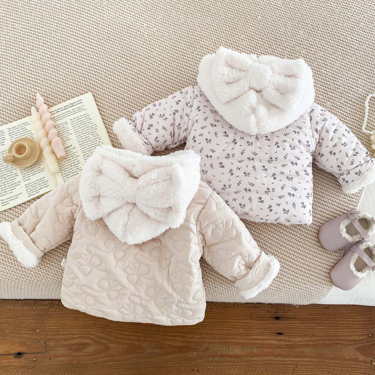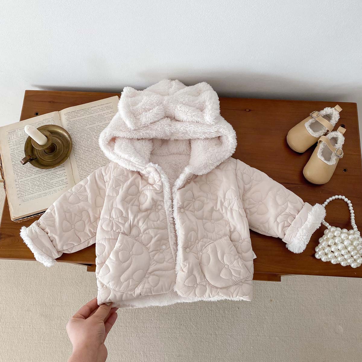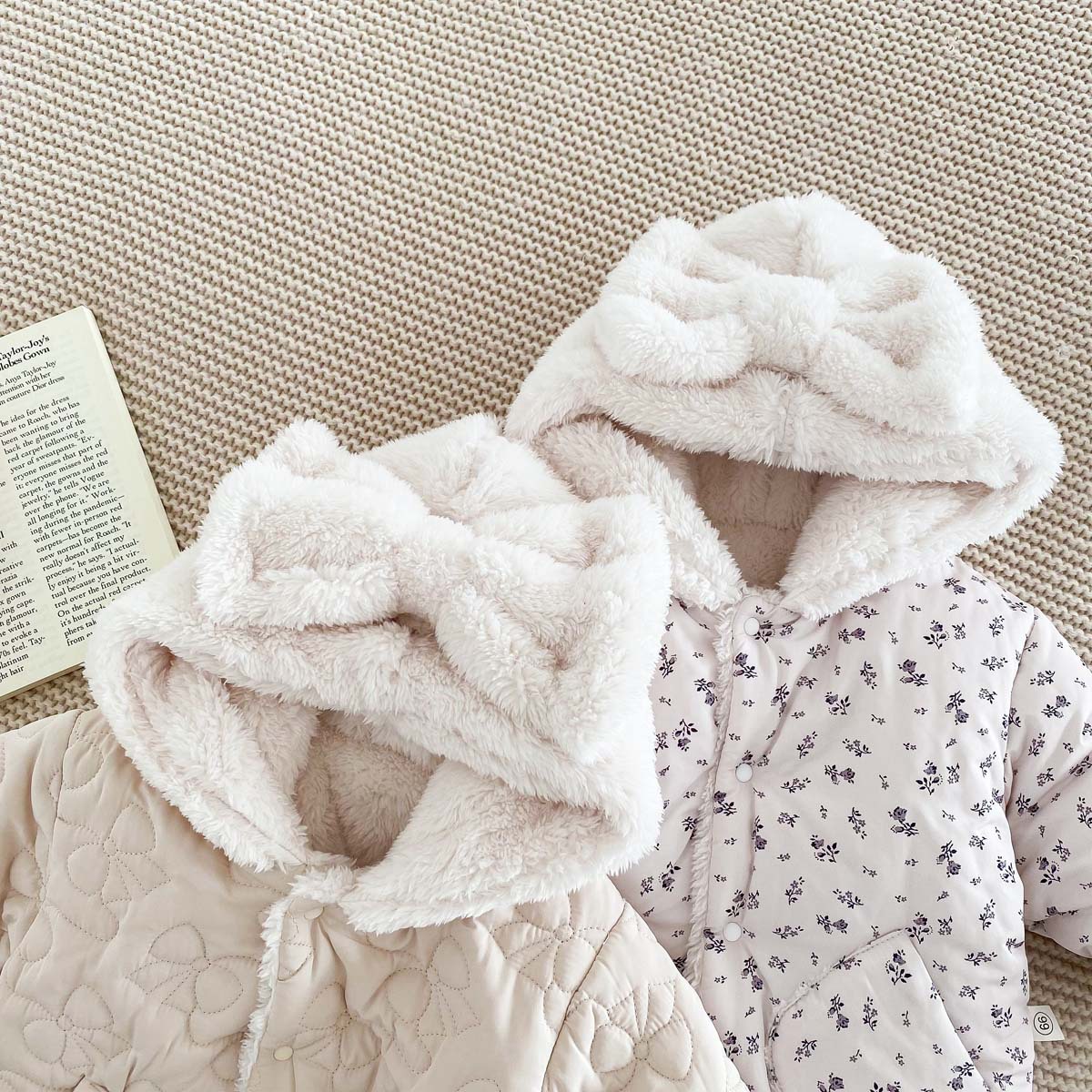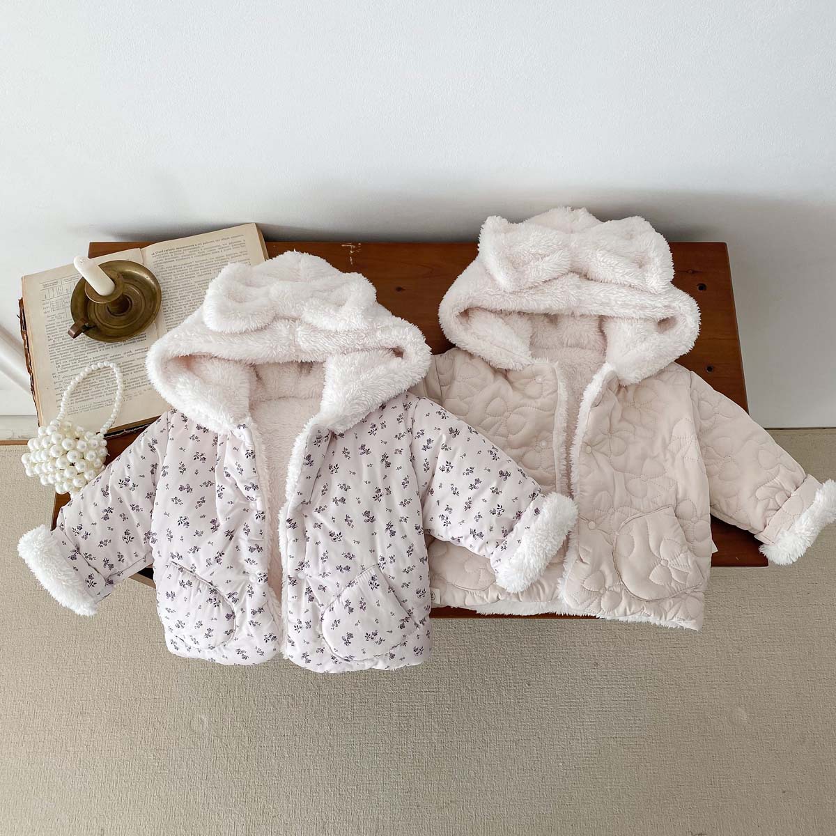 한국 스타일 겨울 소녀의 두꺼운 코트 새로운 아기 소녀의 따뜻한 활 후드 귀여운 코트 면화 패딩 재킷