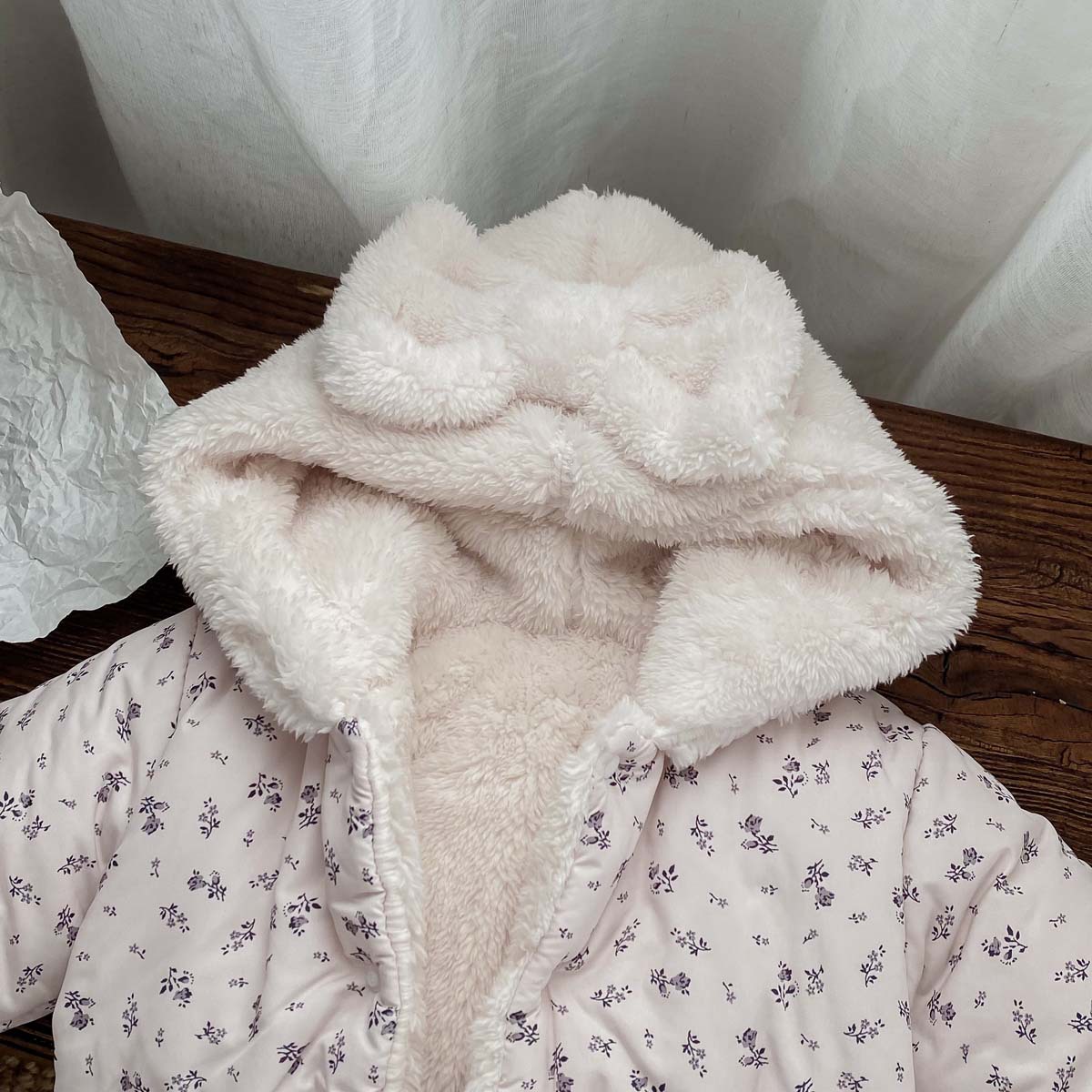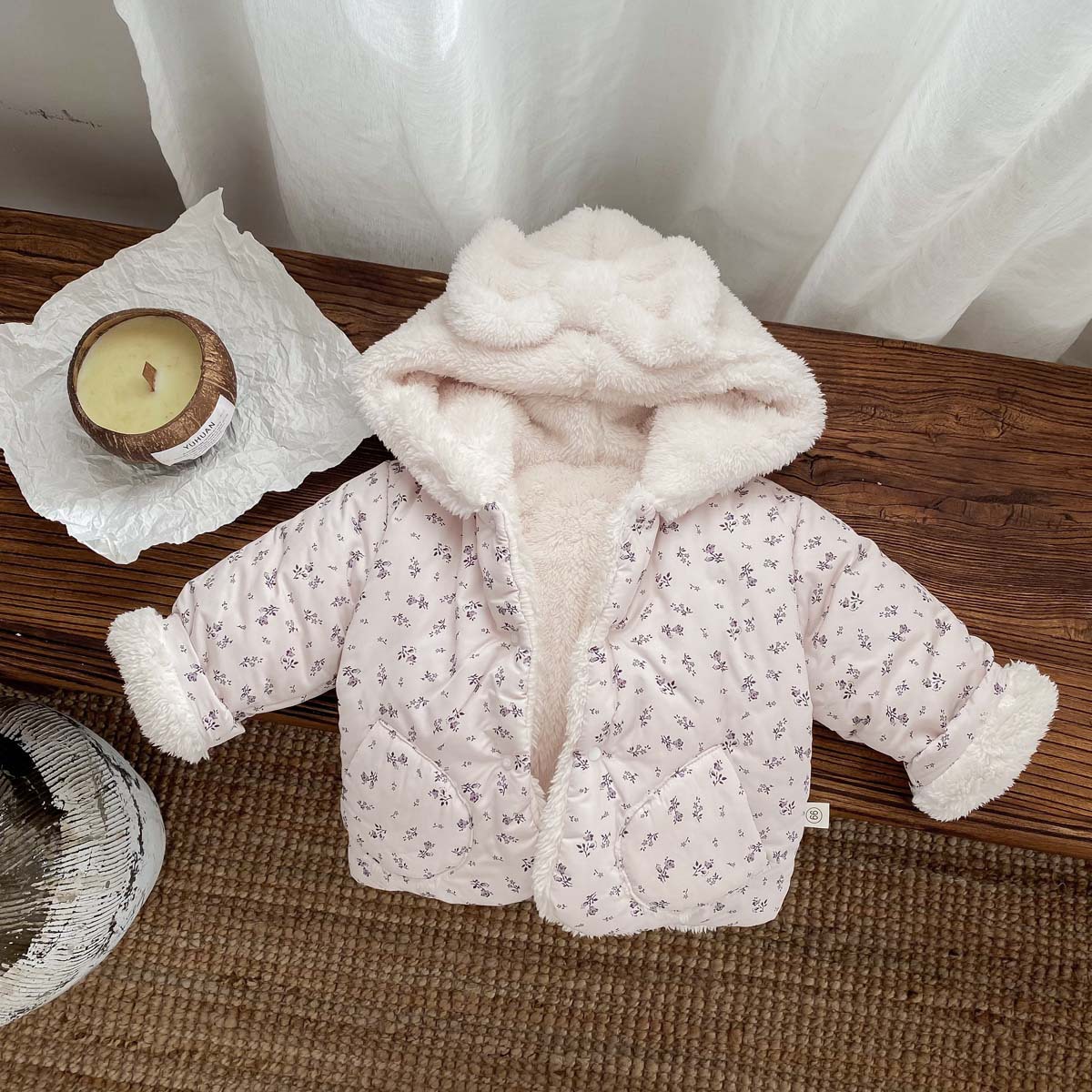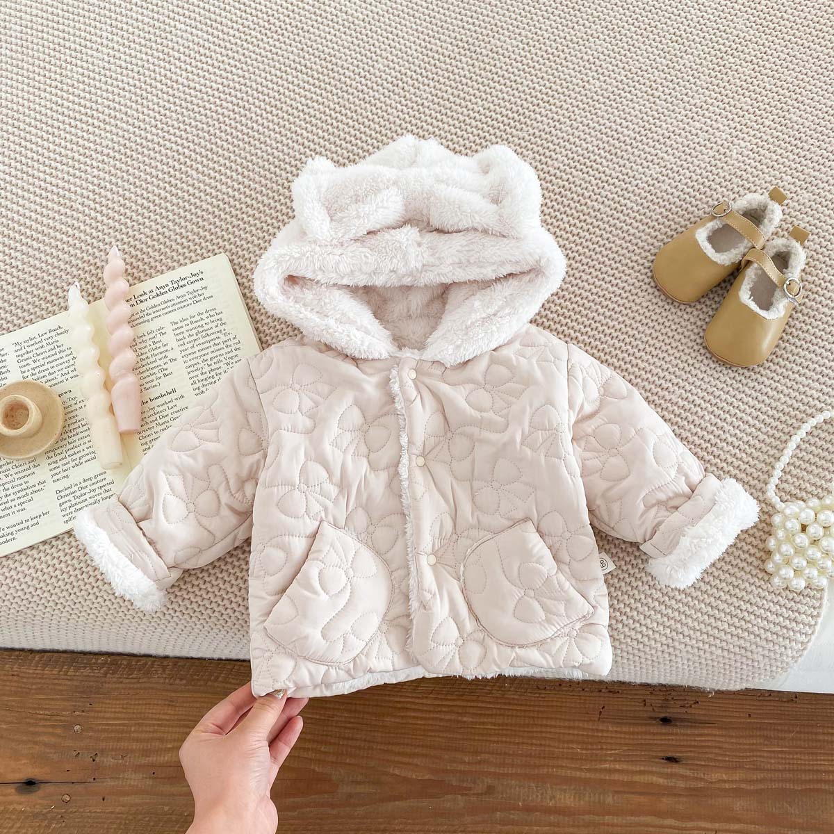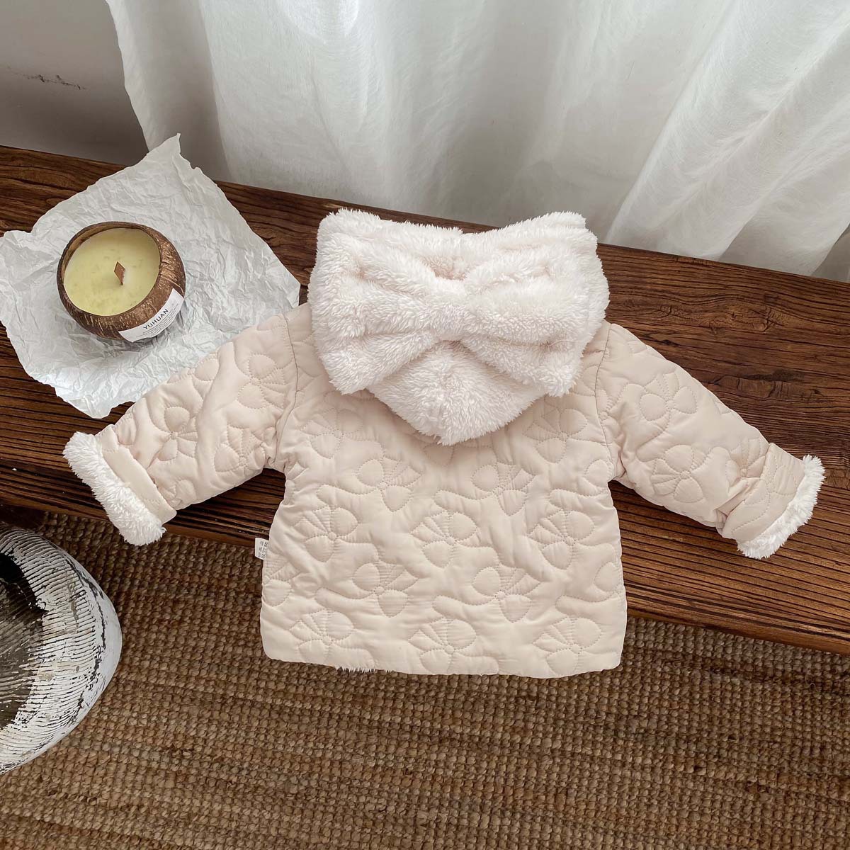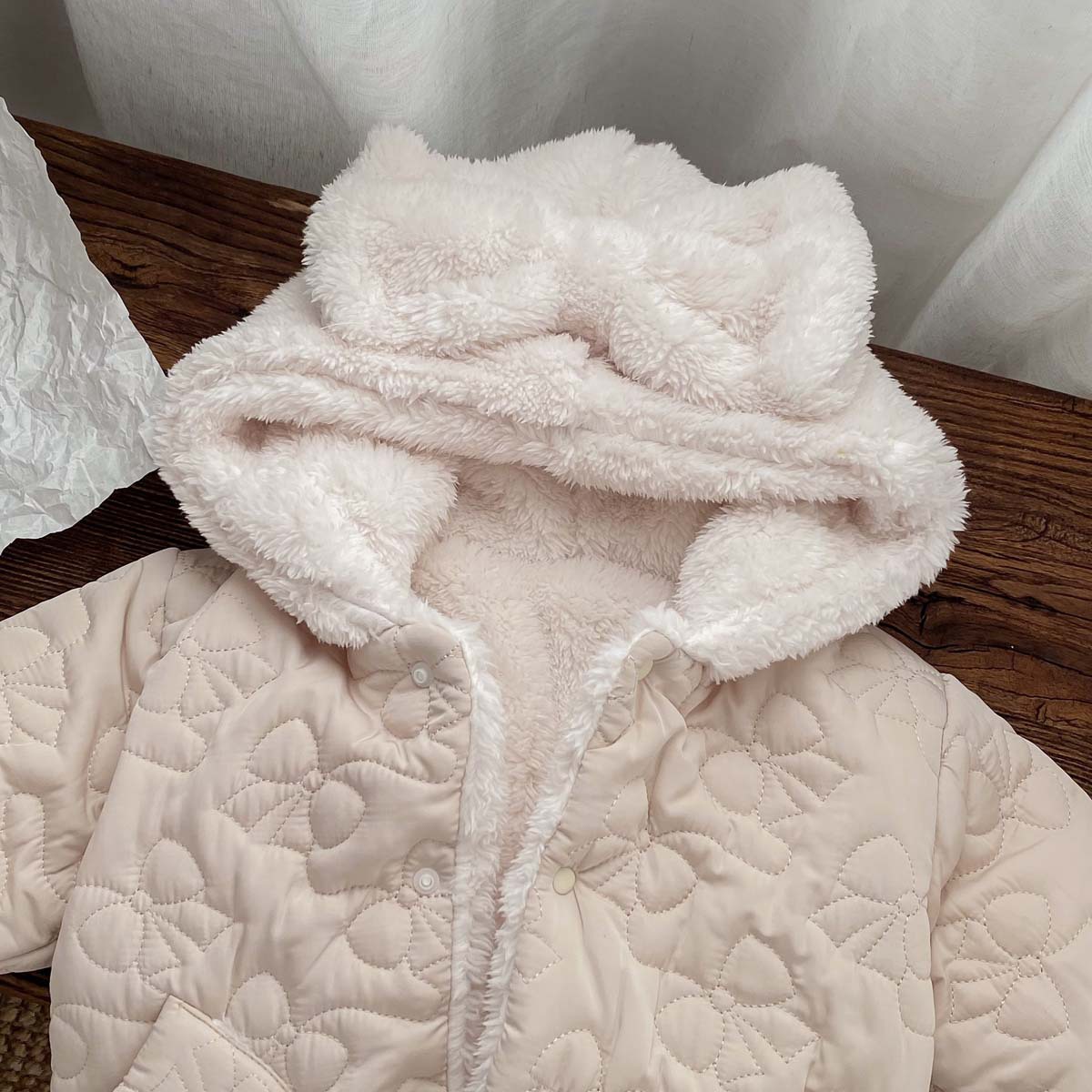 한국 스타일 겨울 소녀의 두꺼운 코트 새로운 아기 소녀의 따뜻한 활 후드 귀여운 코트 면화 패딩 재킷