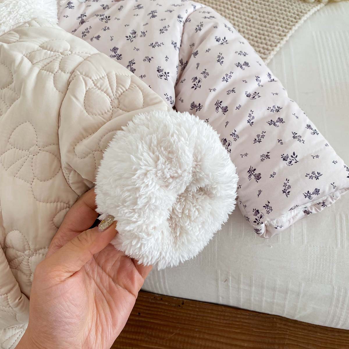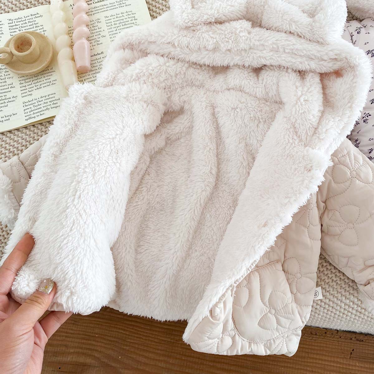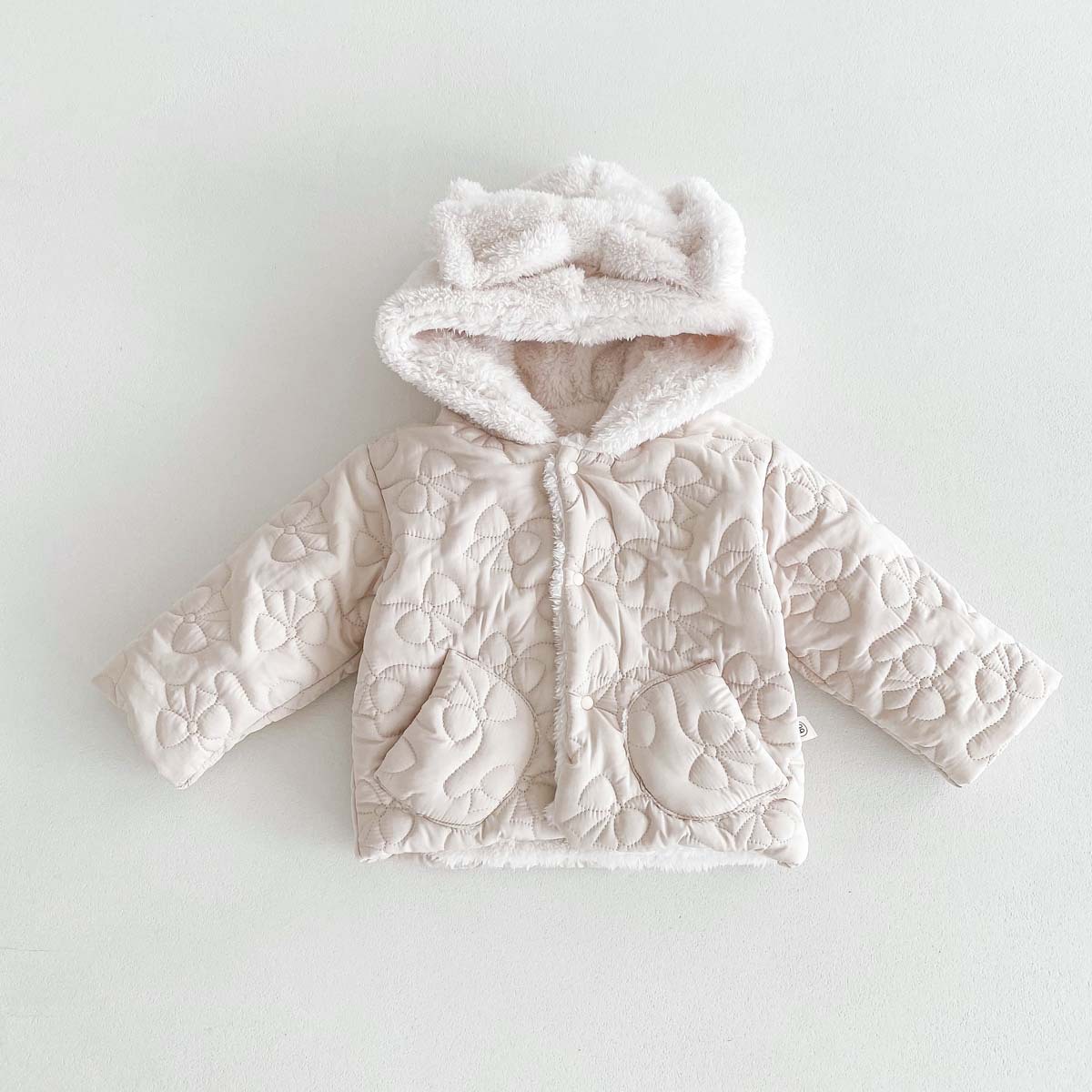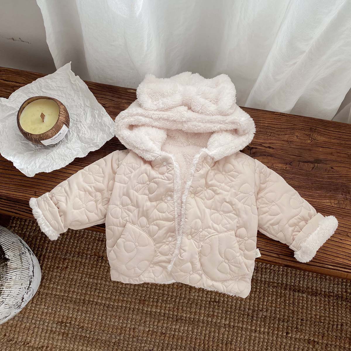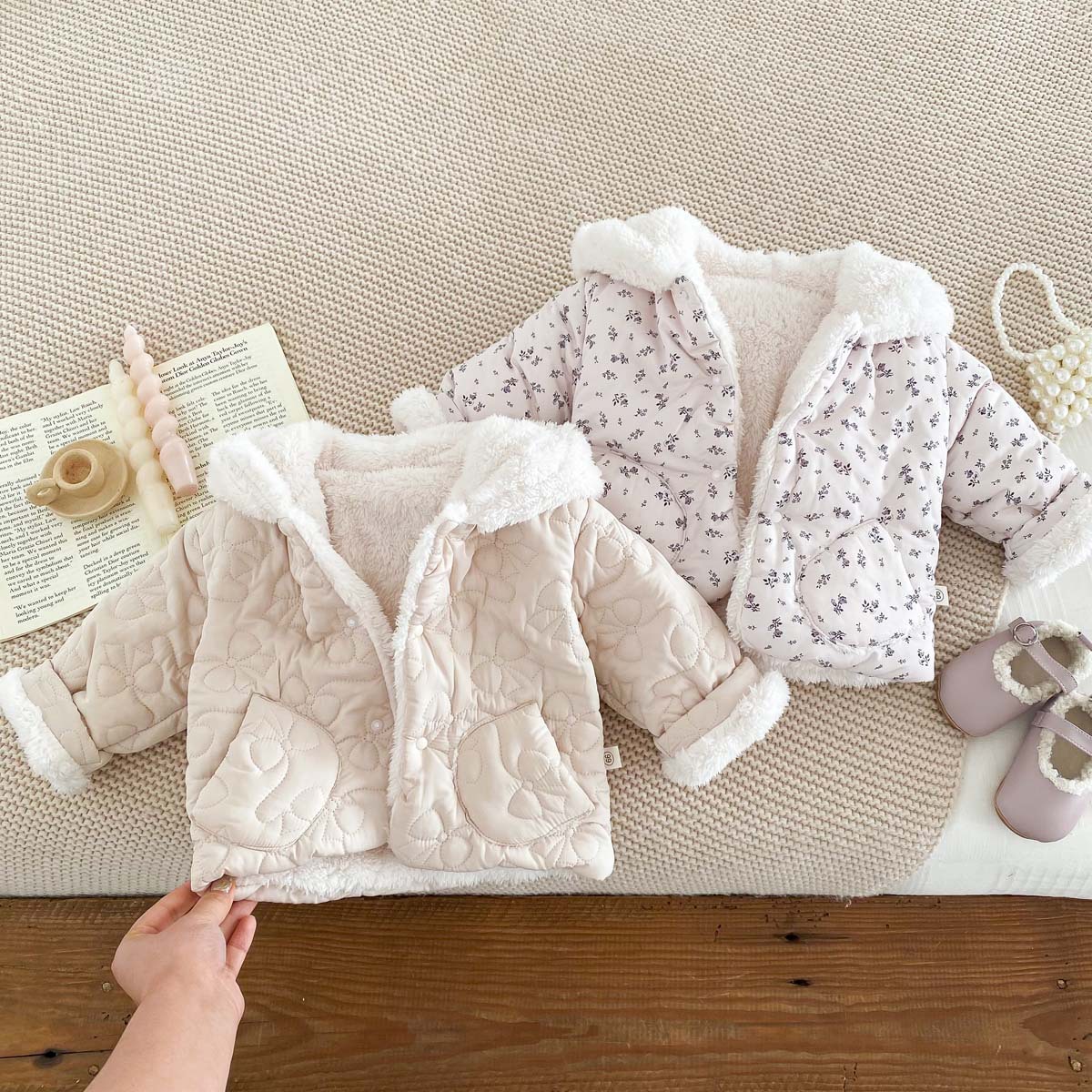 한국 스타일 겨울 소녀의 두꺼운 코트 새로운 아기 소녀의 따뜻한 활 후드 귀여운 코트 면화 패딩 재킷