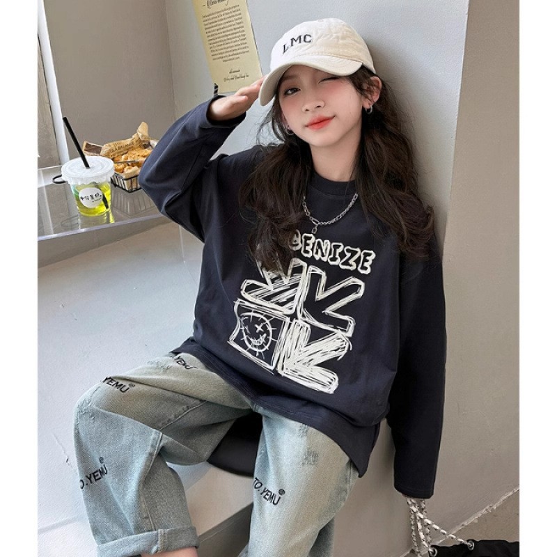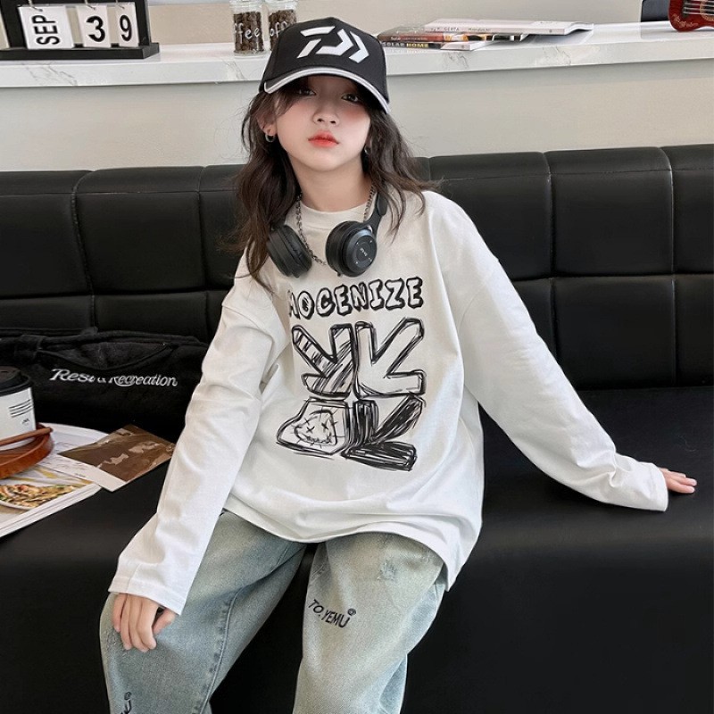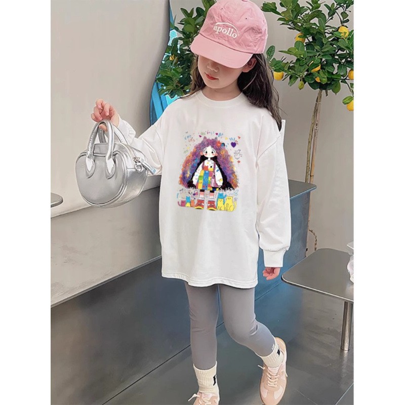 소녀상 초가을 보토밍 셔츠 2024 새 아동면 올매치 긴소매 티셔츠 소녀상 초가을 롱탑스토어 가기