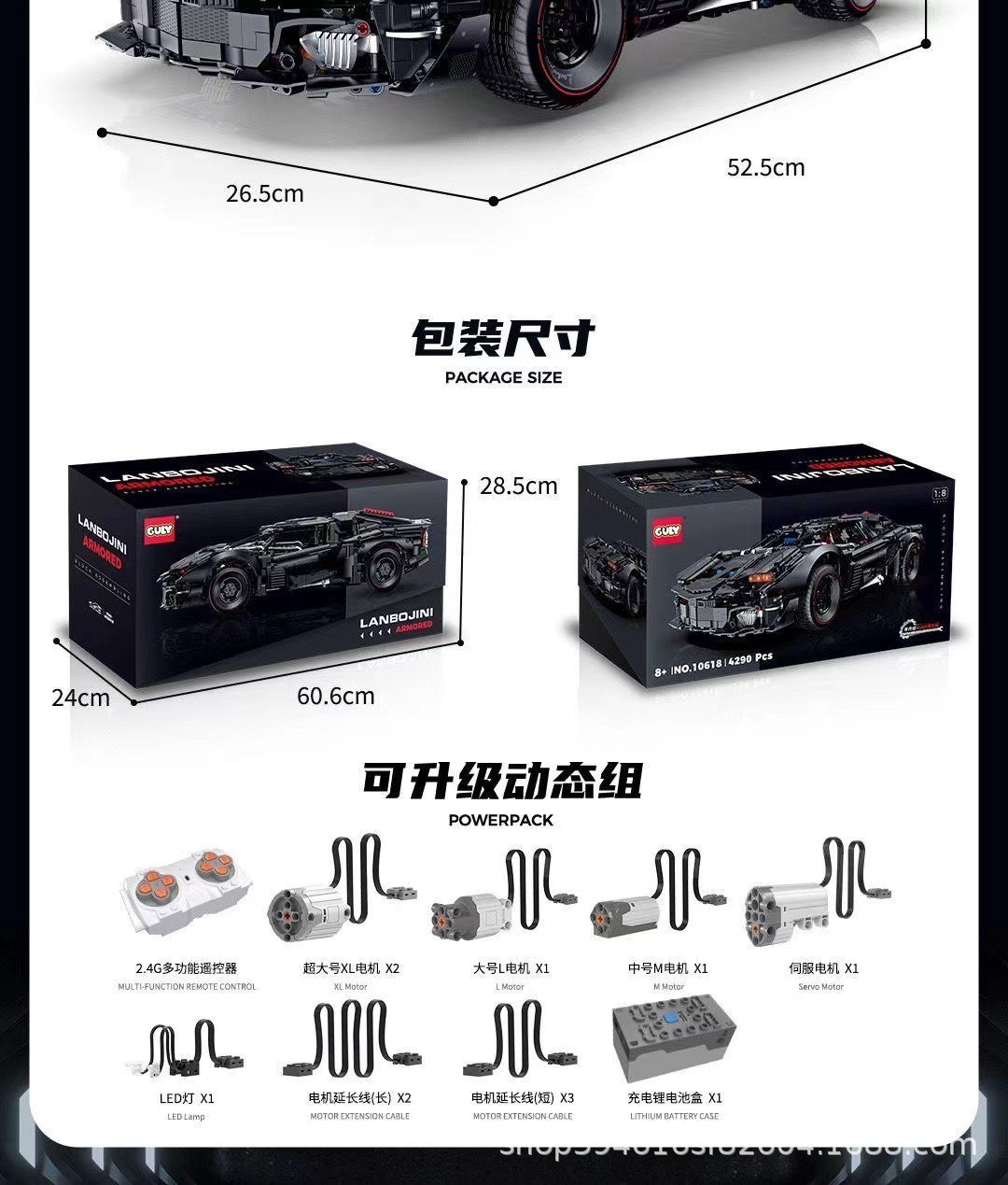 Guli 10618 기갑 람보 1:8 어려운 모델 조립 4290 과립 럭셔리카 로고 건물 블록 장난감 도매스토어 가기