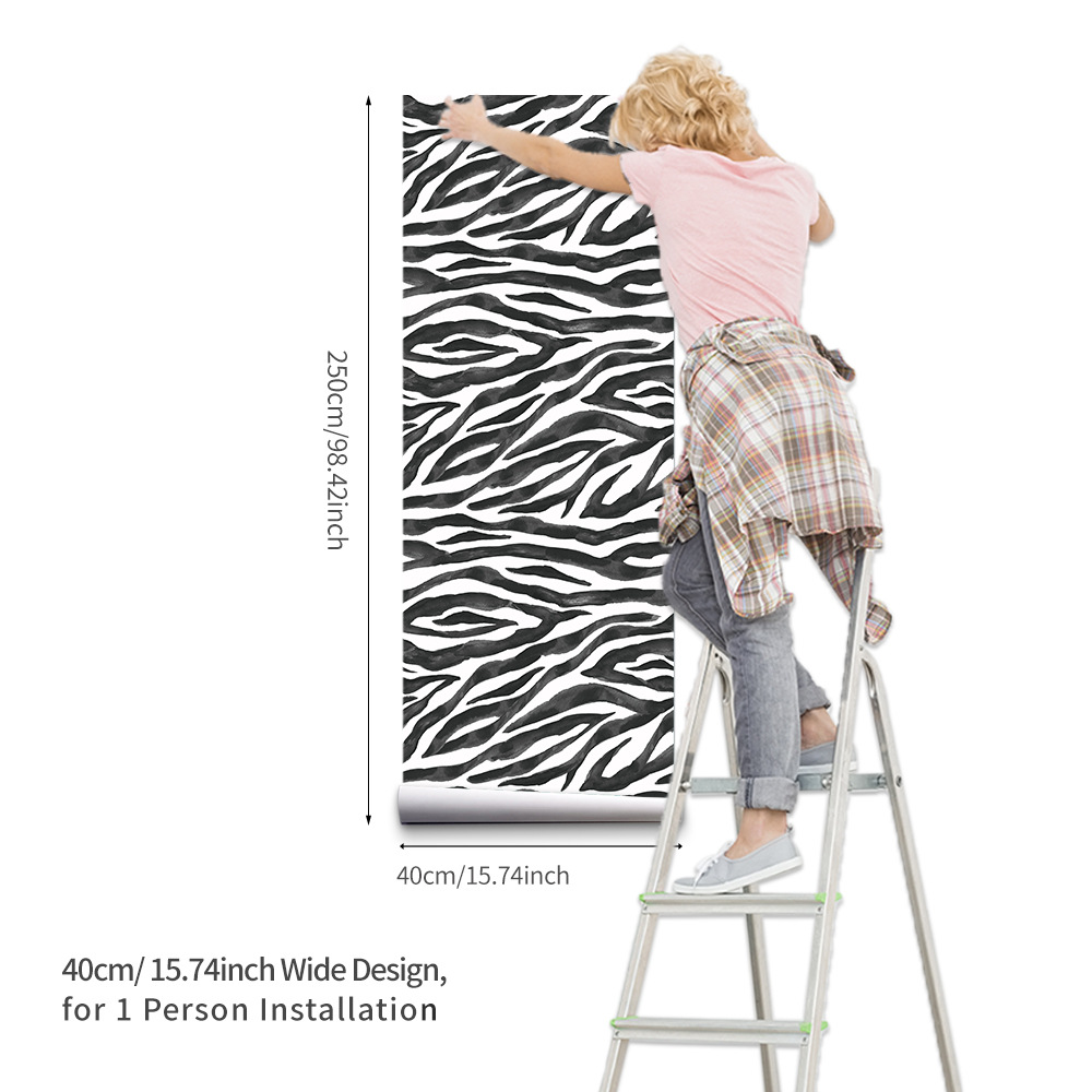 재미 야생 아름다움 어두운 흑백 얼룩말 패턴 벽 스티커 방수 PVC 소재 양각 벽지 SWP146
