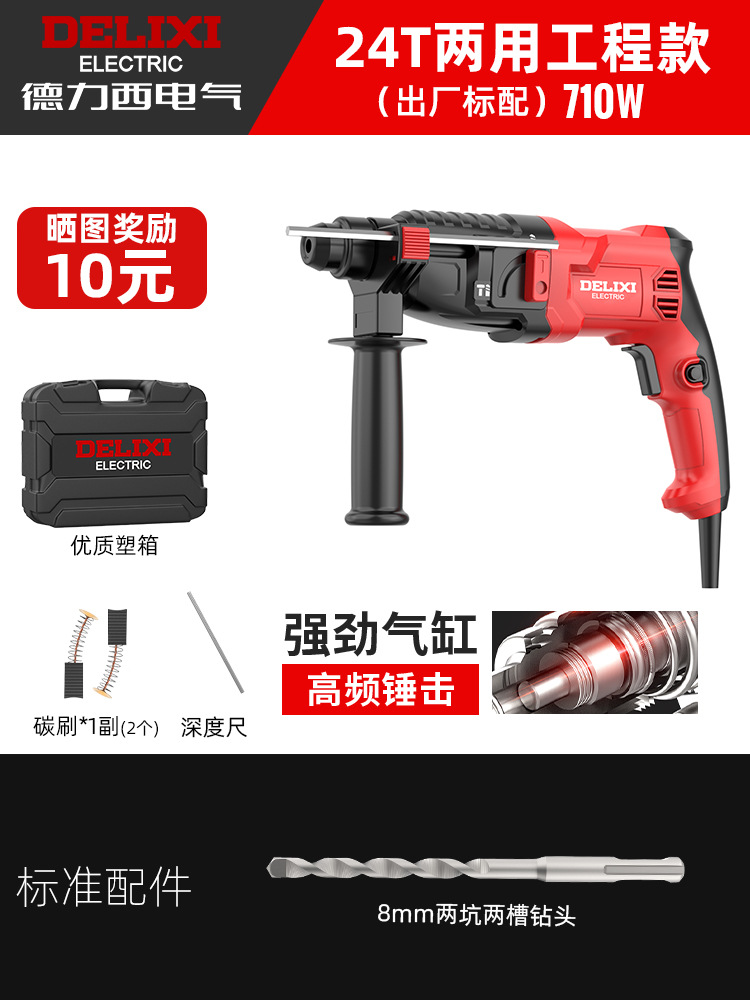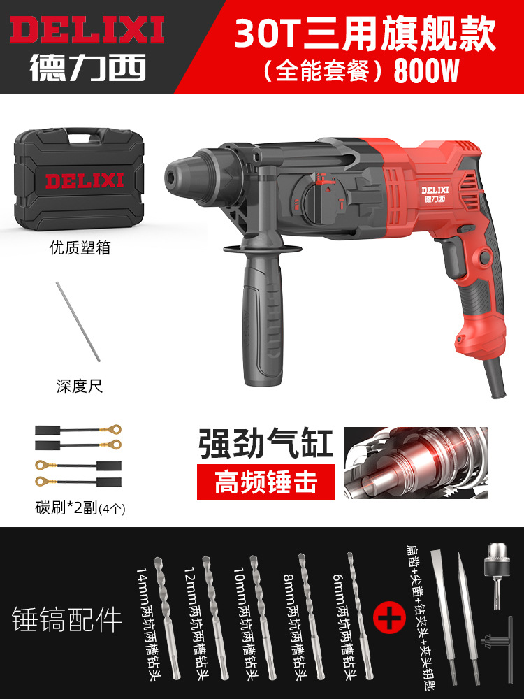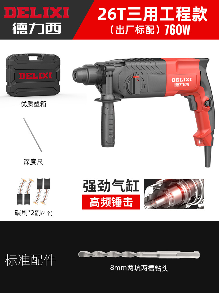 Delixi 가벼운 전기 해머 전기 픽 전기 드릴 3 사용 다기능 고성능 충격 드릴 가정용 전기 중주스토어 가기