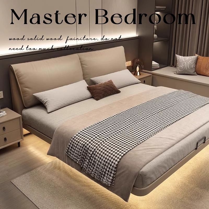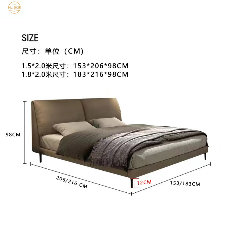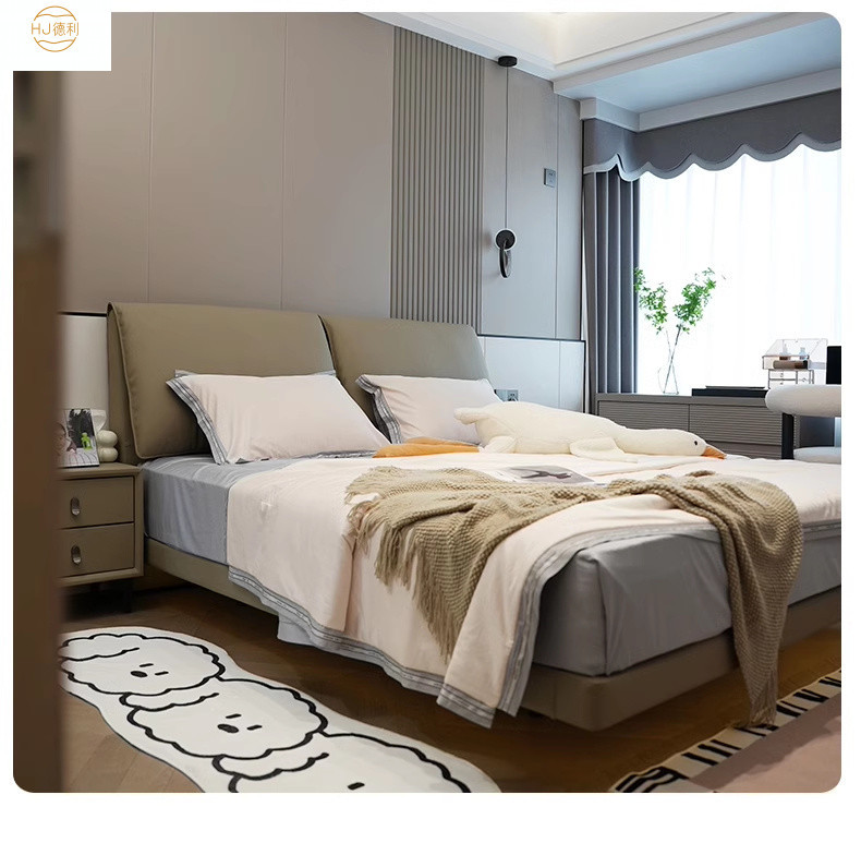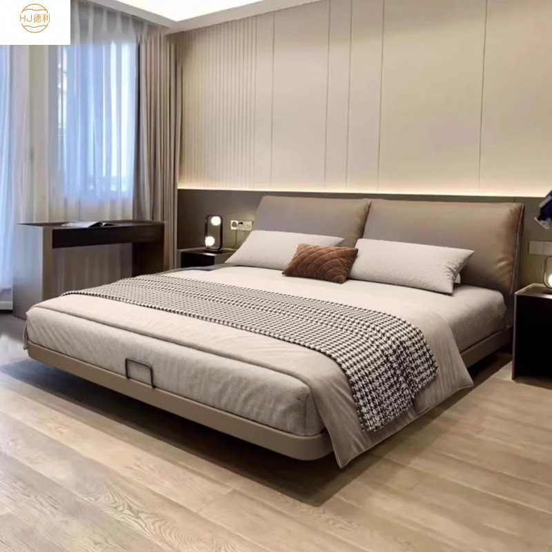현대 간단한 서스펜션 코끼리 귀 가죽 침대 1.8M 마스터 침실 퀸 침대 이탈리아 미니멀리스트 가장자리 가죽 더블 침대