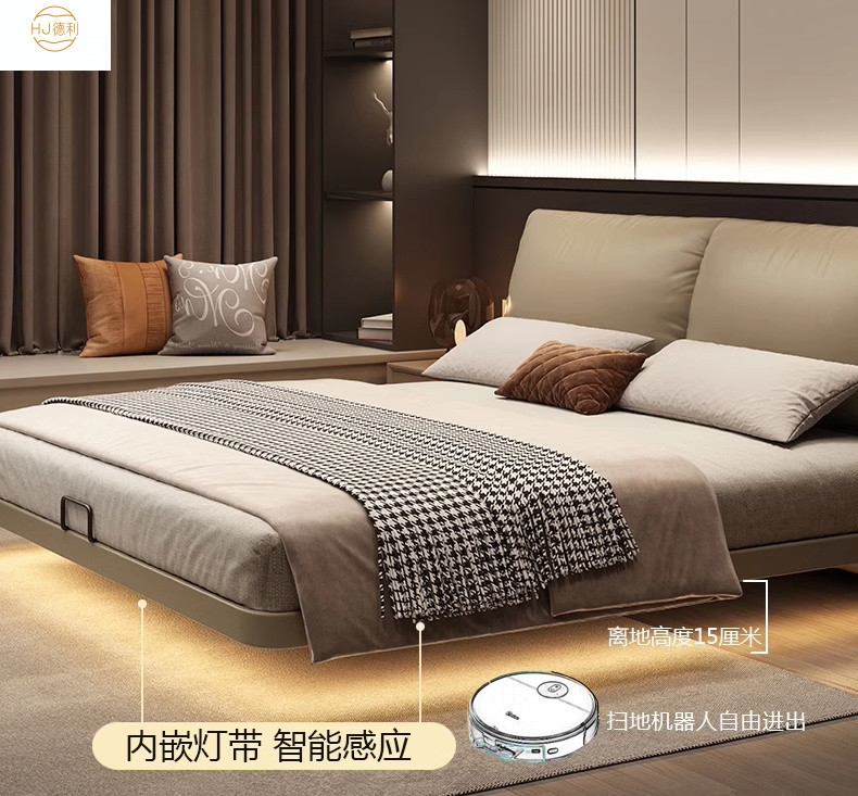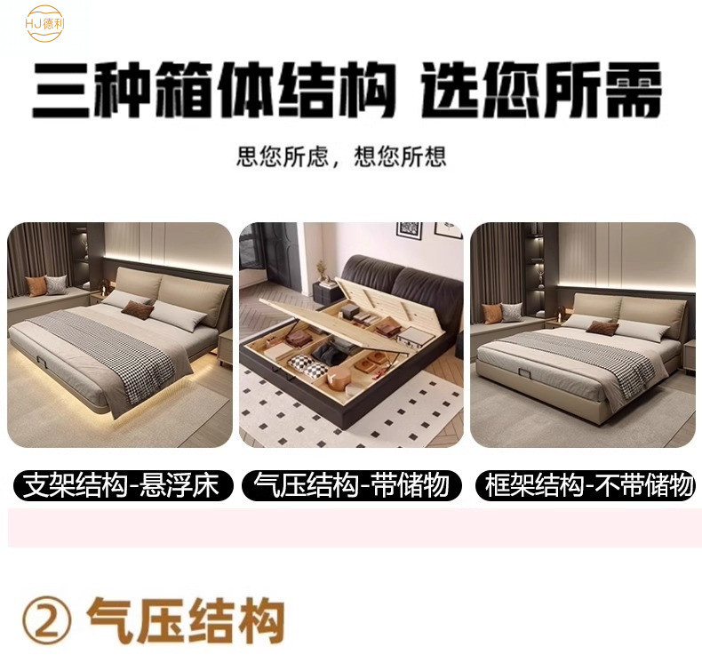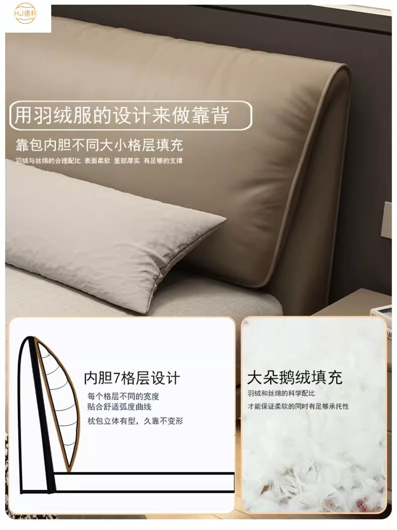 현대 간단한 서스펜션 코끼리 귀 가죽 침대 1.8M 마스터 침실 퀸 침대 이탈리아 미니멀리스트 가장자리 가죽 더블 침대스토어 가기