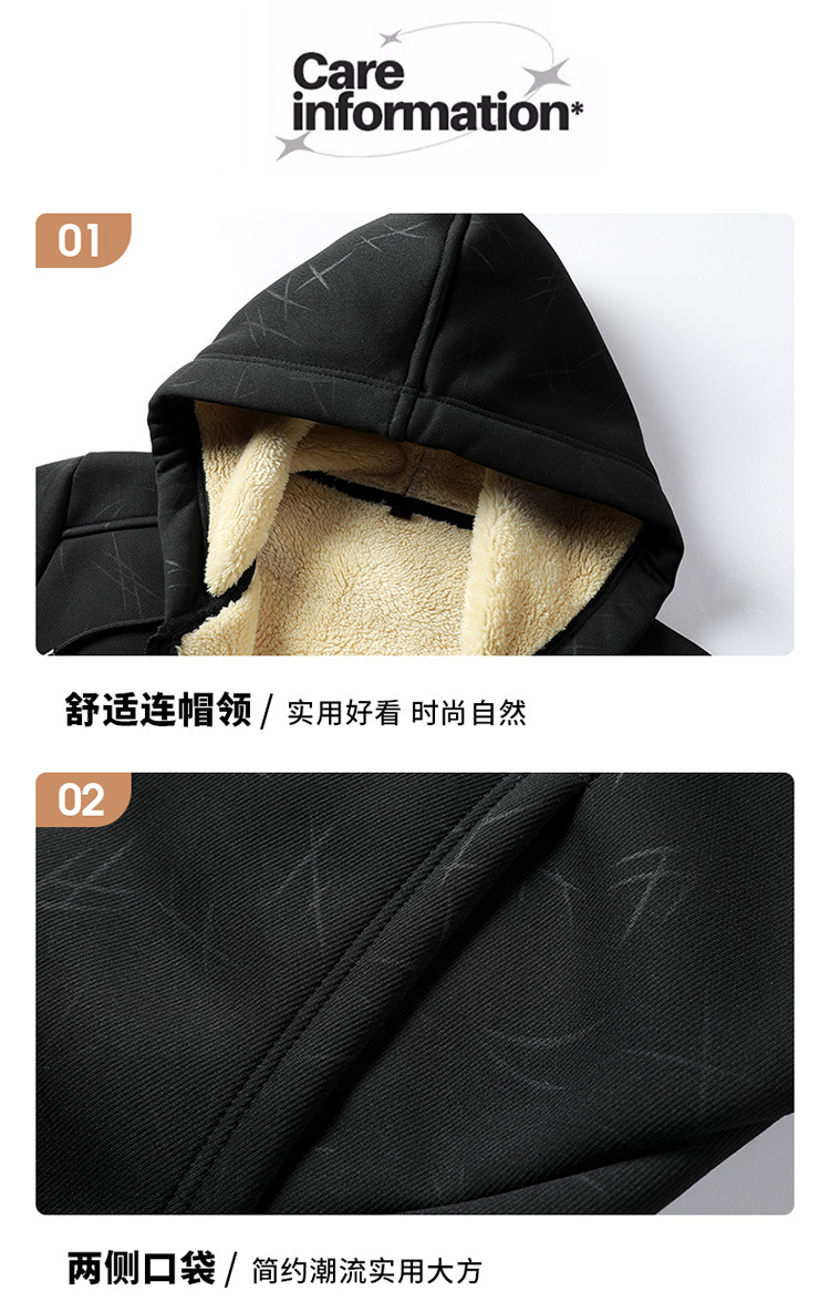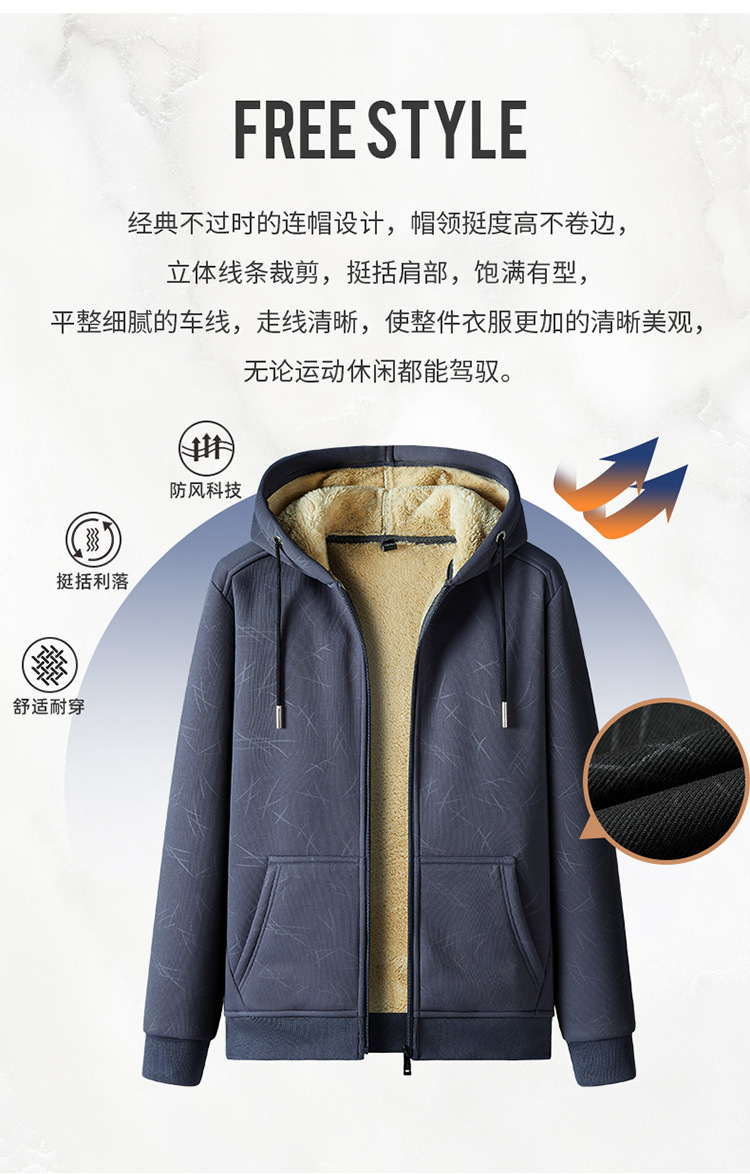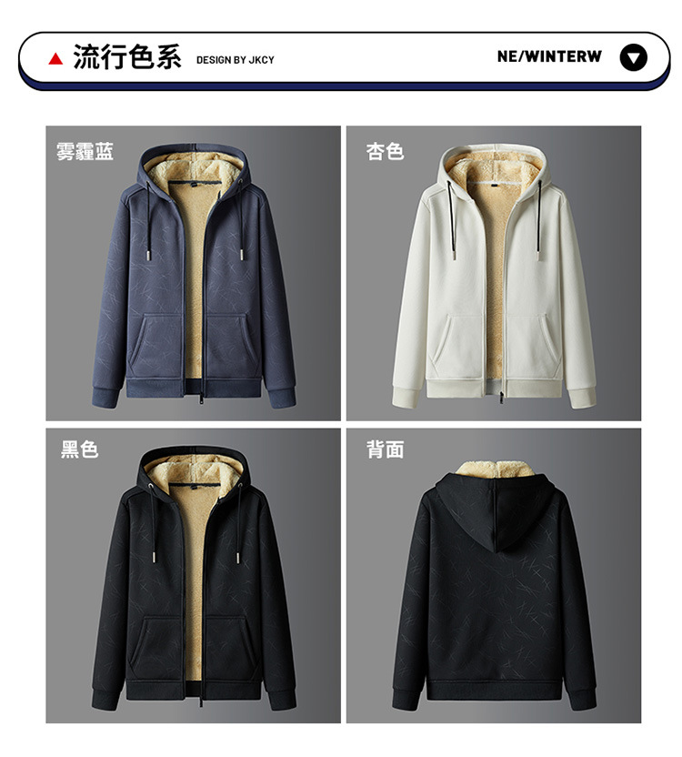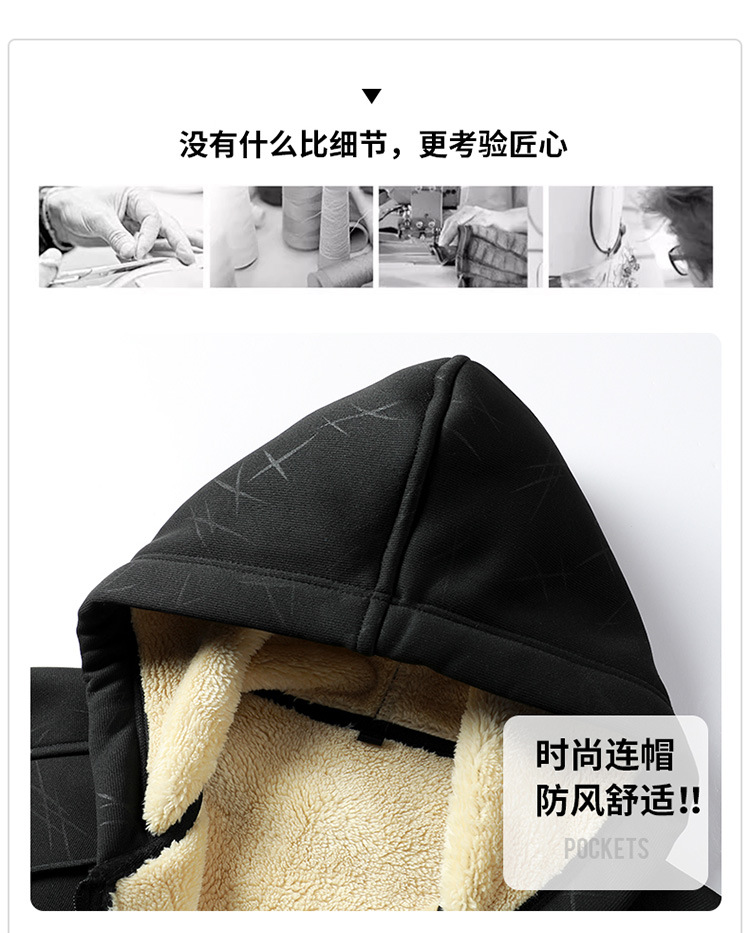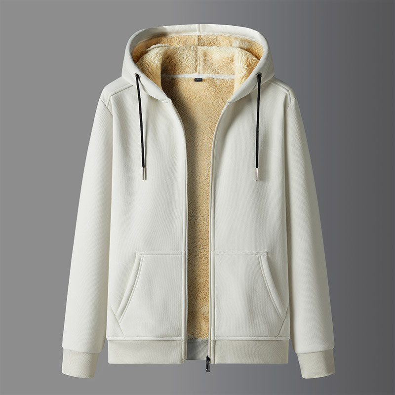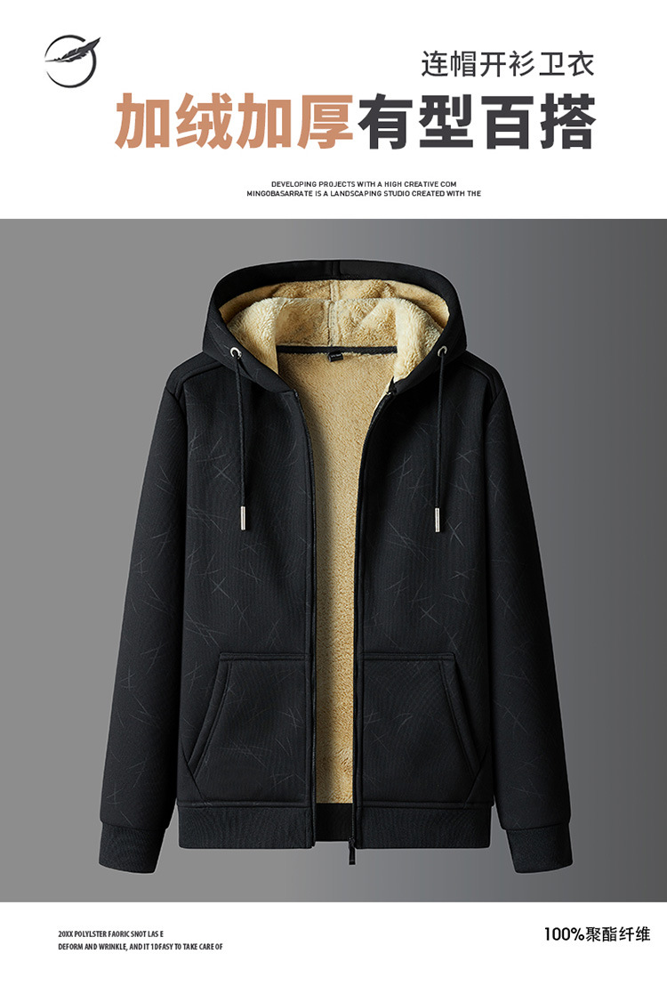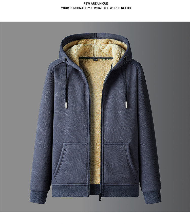 국경 간 캐시미어 남성 스웨터 가을과 겨울 기모 두꺼운 후드 스포츠웨어 캐주얼 카디건 따뜻한 재킷