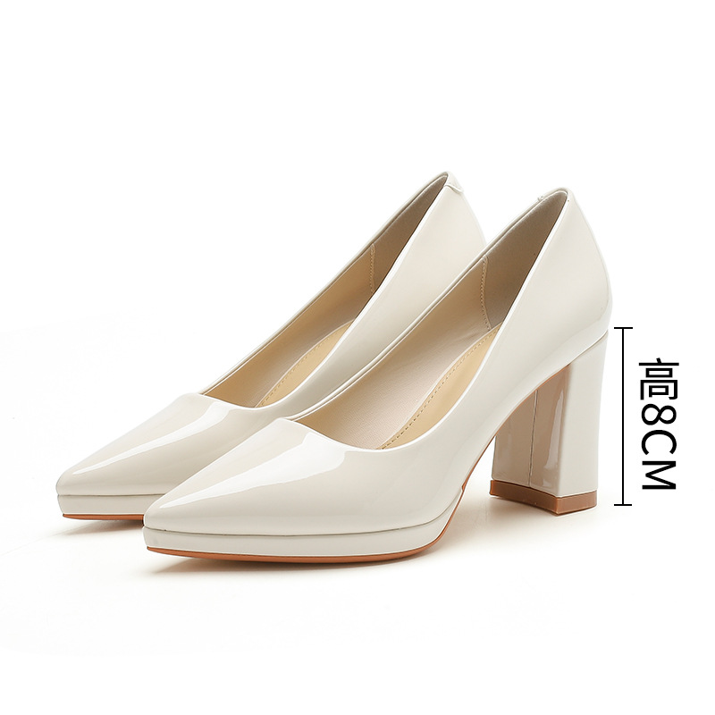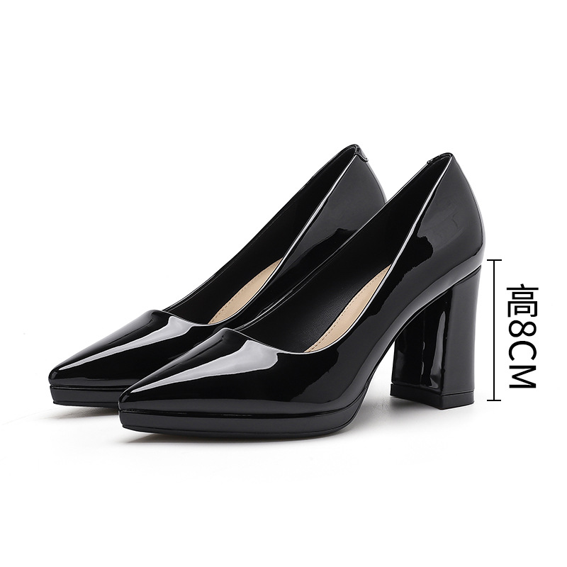 8099-1 솔리드 컬러 포인팅 두꺼운 힐 하이힐 슈즈 피곤하지 않음