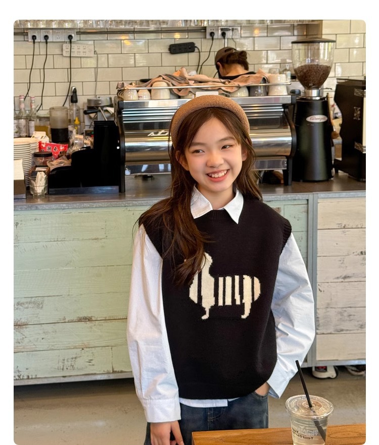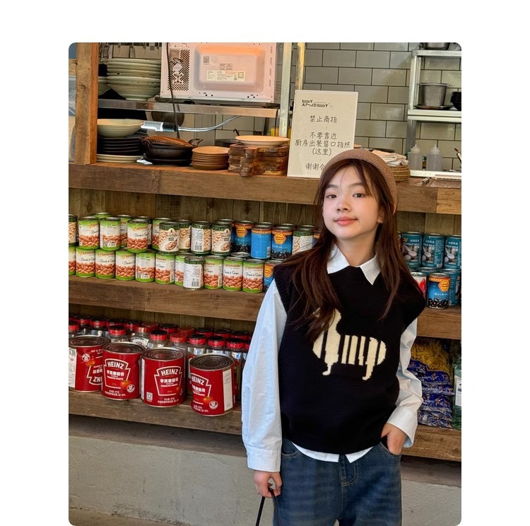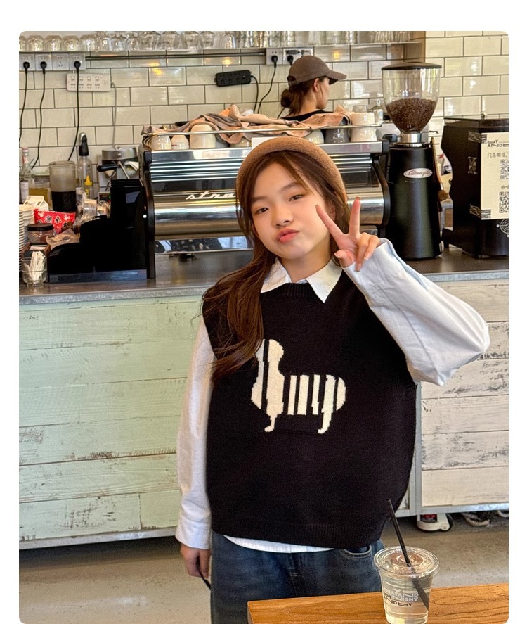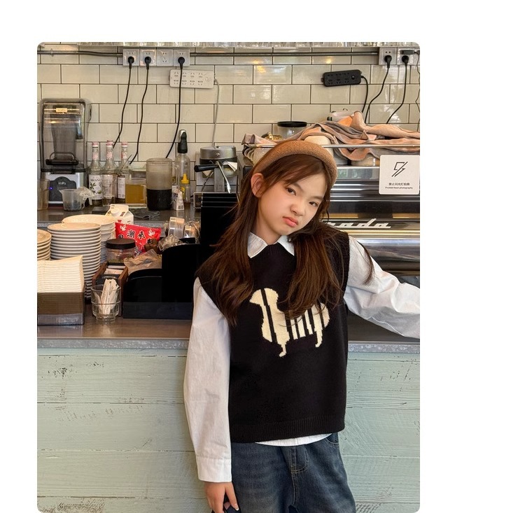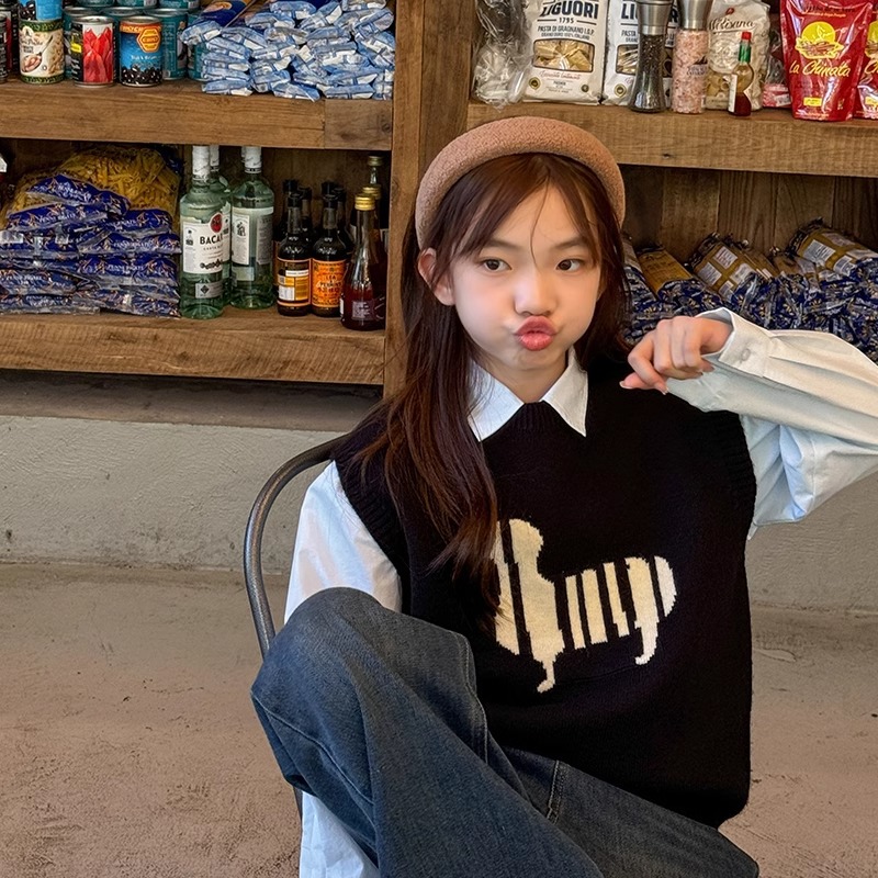 소녀 니트 조끼 가을 만화 2024 새로운 어린이 소프트 왁스 캐시미어 니트 스택 어린이 조끼 트렌디스토어 가기