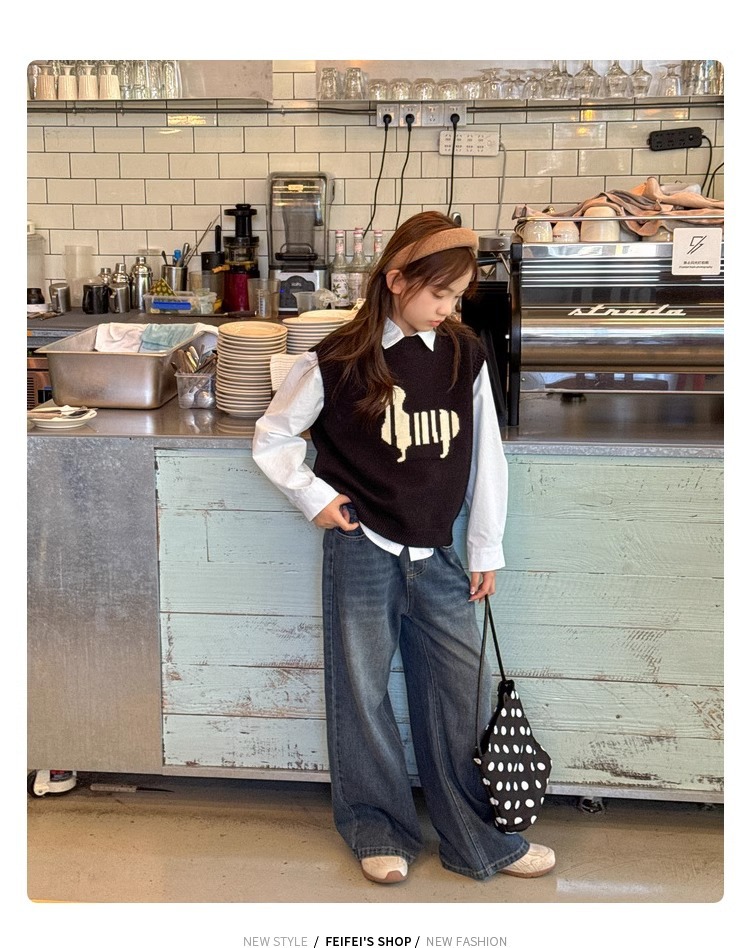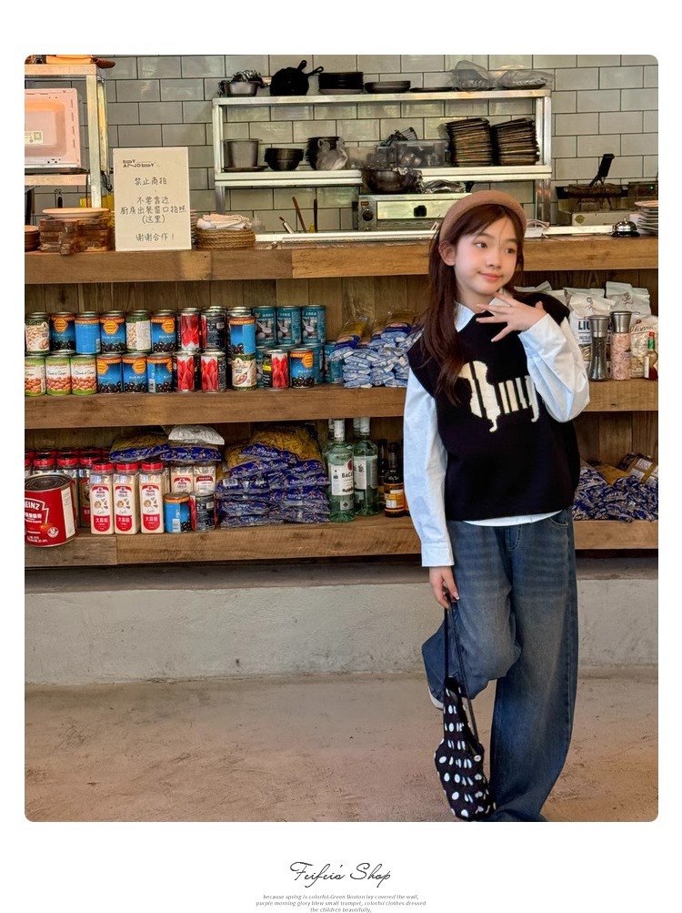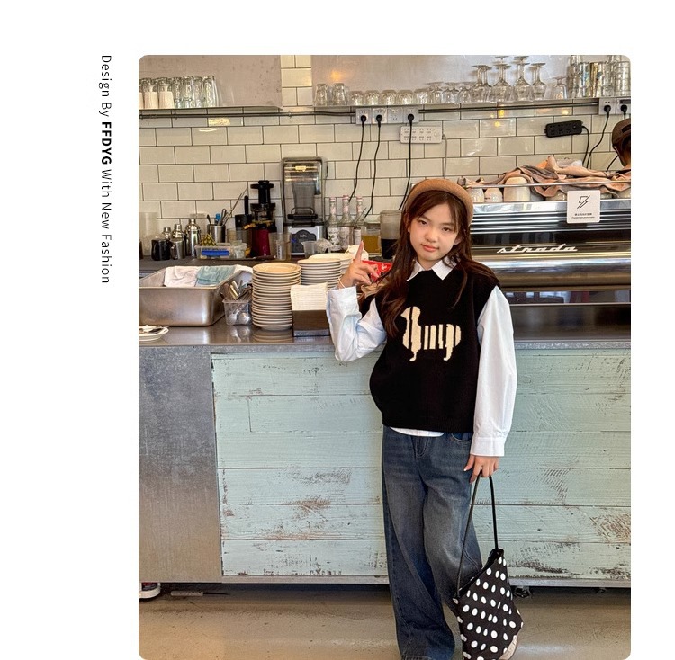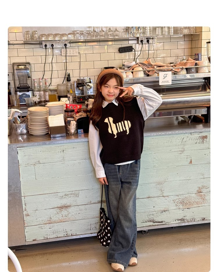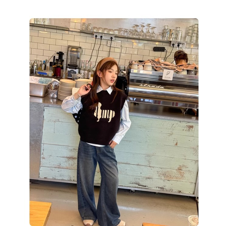 소녀 니트 조끼 가을 만화 2024 새로운 어린이 소프트 왁스 캐시미어 니트 스택 어린이 조끼 트렌디스토어 가기