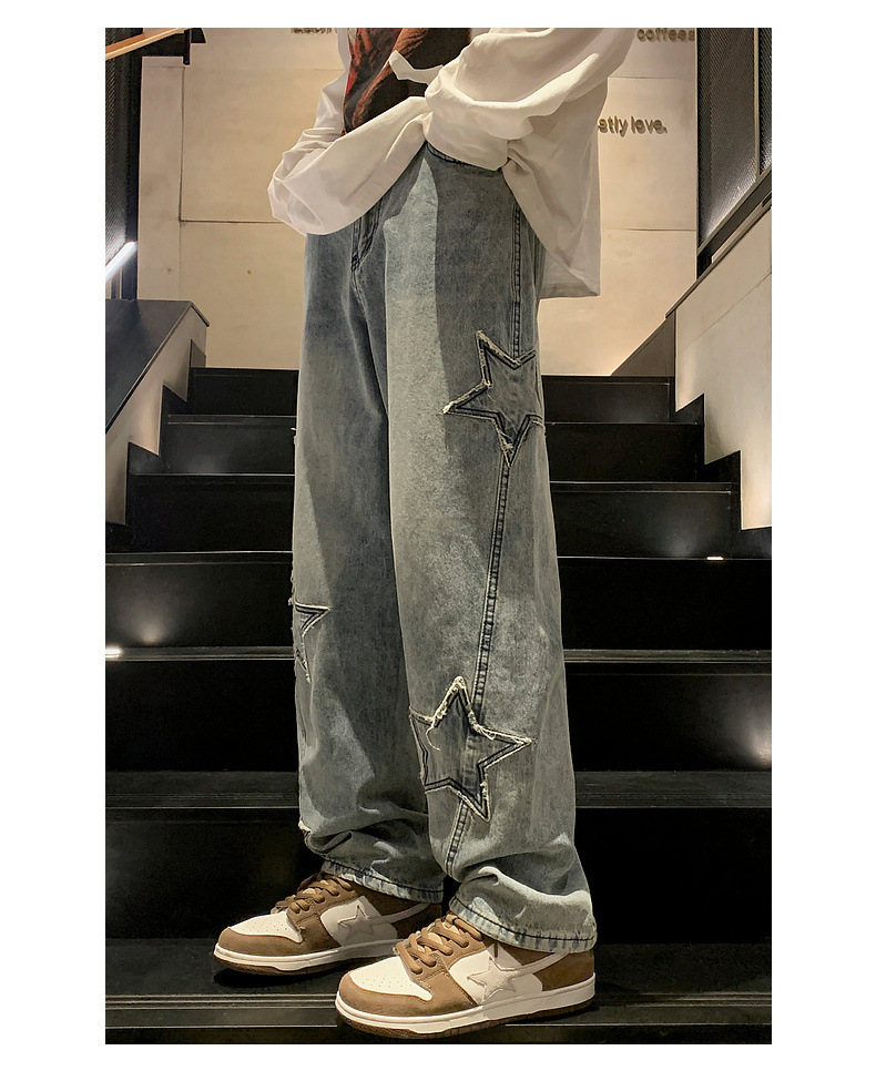 스트레이트 데님 바지 남성 하이 엔드 봄 패션 브랜드 와이드 다리 바지 봄과 가을 느슨한 미국 스타일 하이 스트리트 바이브 바지스토어 가기