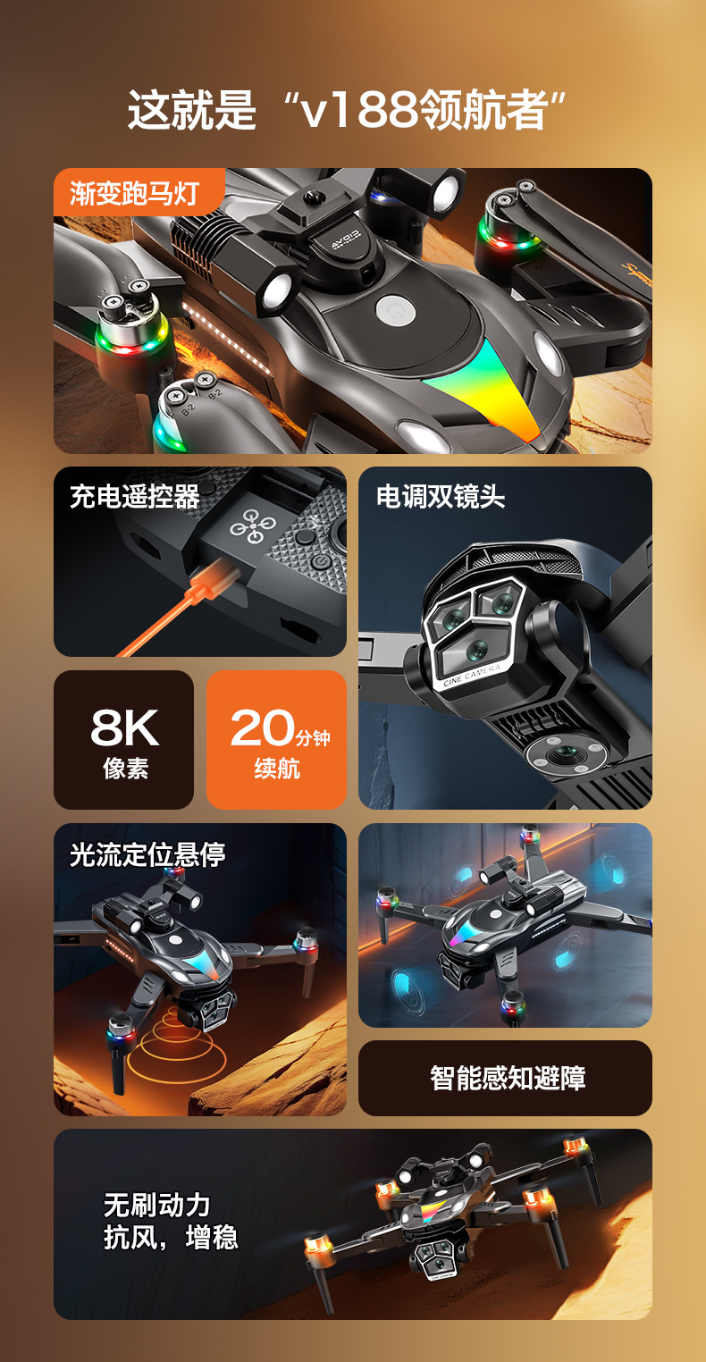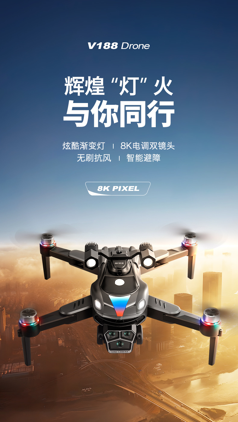 국경 간 신제품 V188 드론 8K 듀얼 카메라 항공 사진 브러시리스 광학 흐름 위치 장애물 회피 대외 무역 원격 제어 항공기스토어 가기