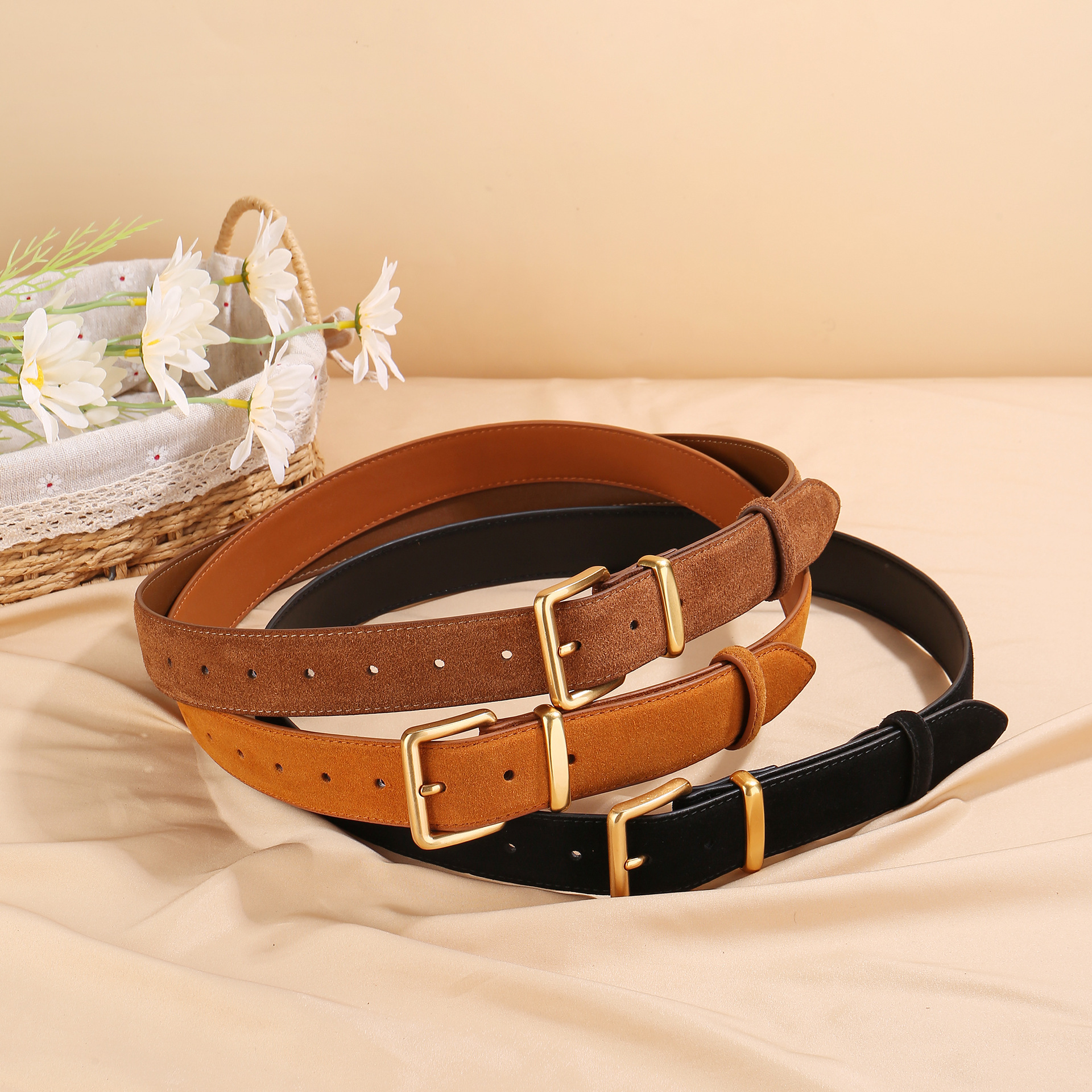 프로스트 벨벳 벨트 여성용 핀 버클 올 매치 청바지 원피스 장식 패션 정품 가죽 트렌디 벨트 여성용스토어 가기