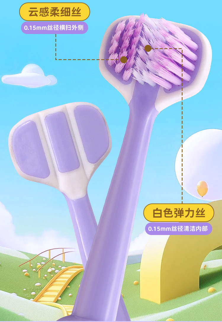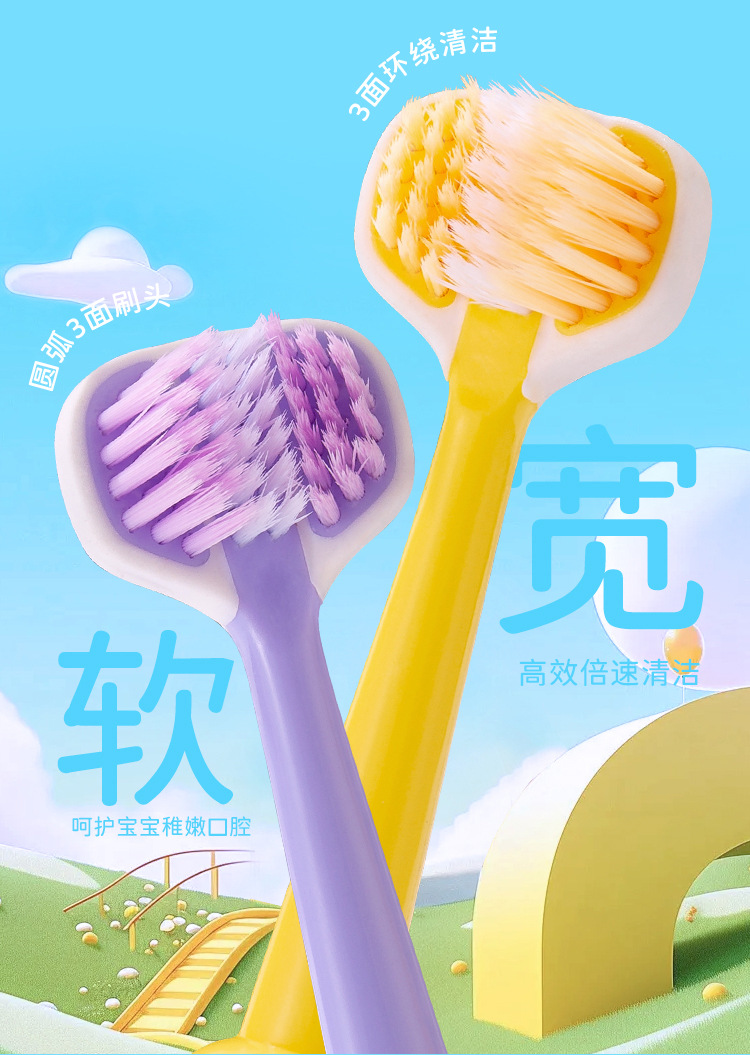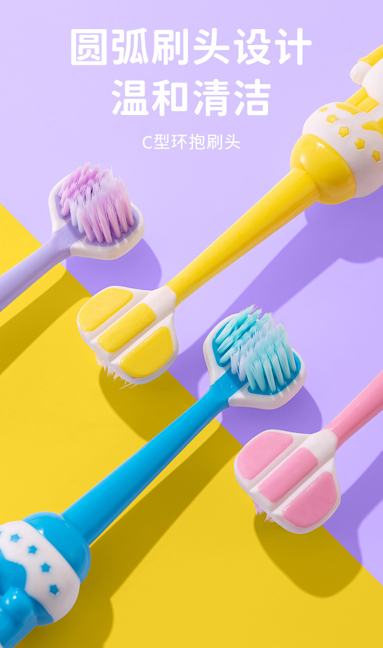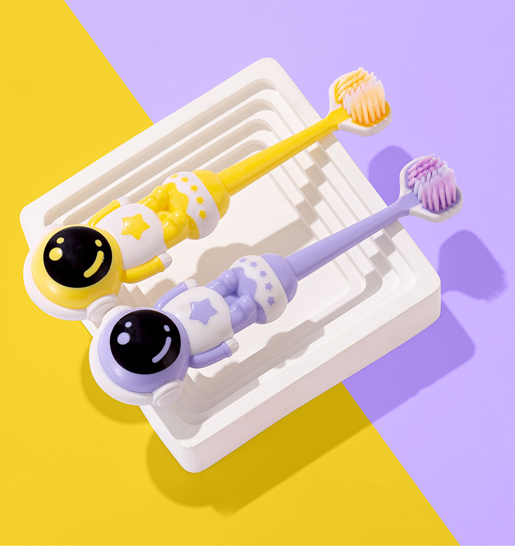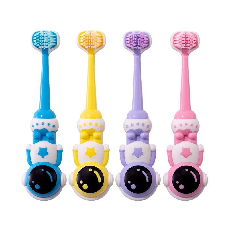 새 어린이 3 면 칫솔 만화 우주 비행사 3-6-12 세 세 어린이 부드러운 강모 칫솔 도매