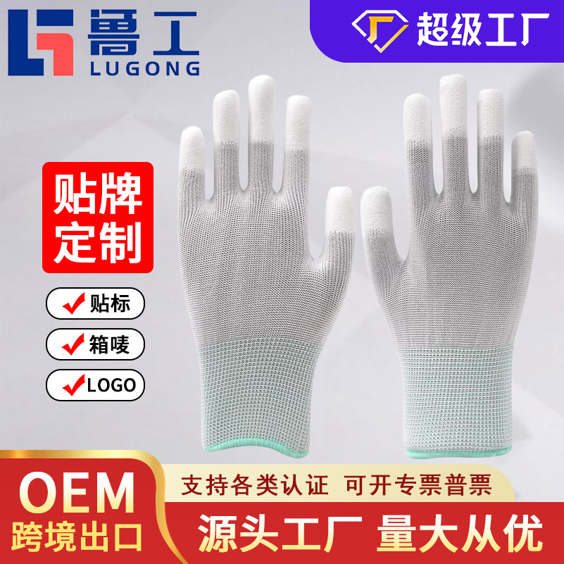 Lugong 정품 얇은 PU 통기성 나일론 장갑 고무 처리 된 손바닥 전자 먼지가없는 정전기 방지 노동 보호 장갑