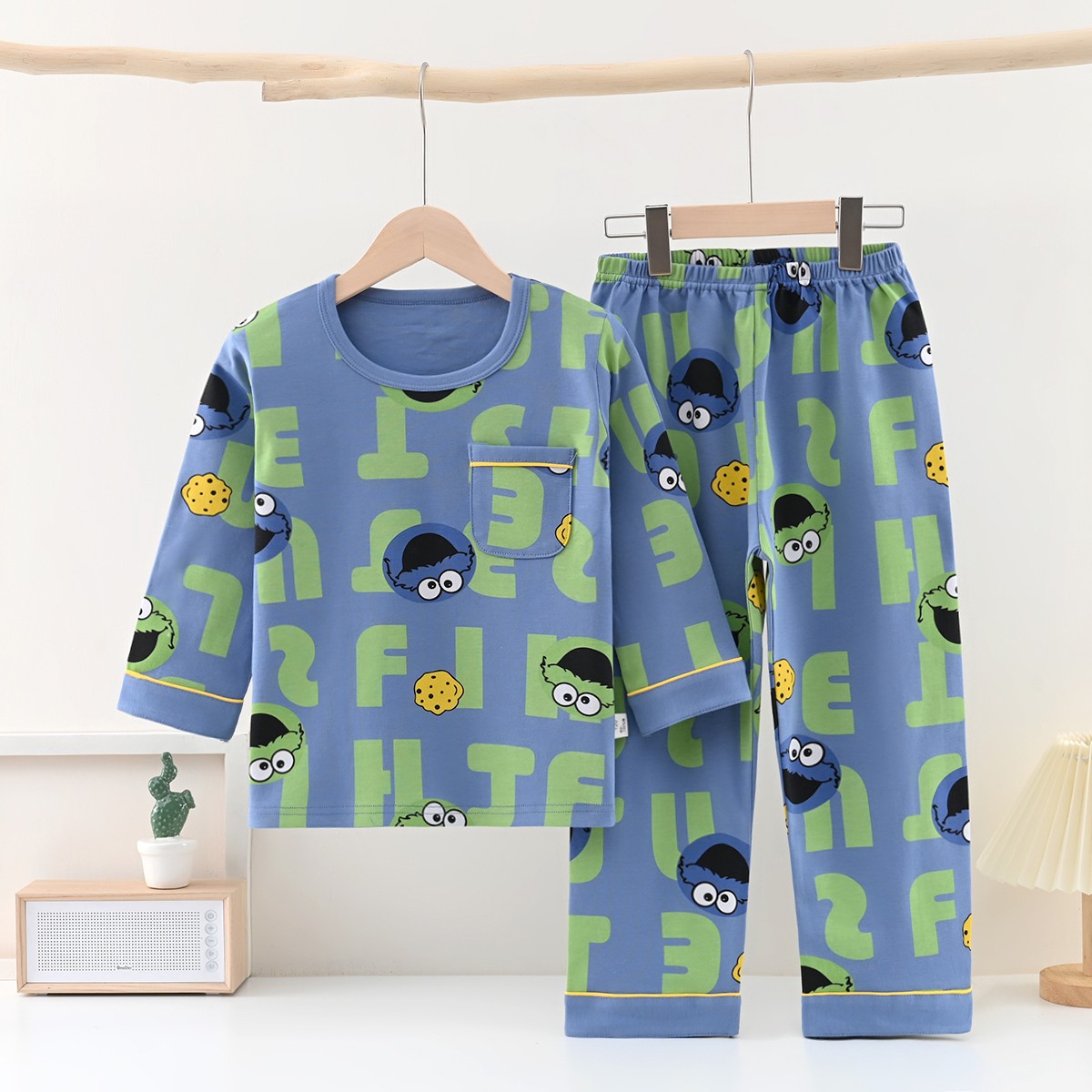 어린이 순면 잠옷, 중대형 아동용 긴팔 홈웨어, 남아 여아 속옷, 아기 가을옷, 가을바지, 만화 무늬스토어 가기