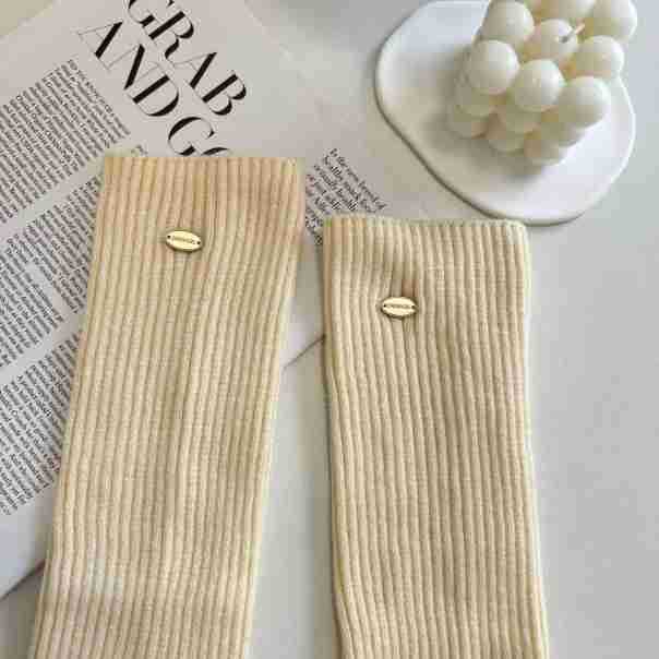 가을과 겨울 느슨한 다리 커버 일본 소녀의 올매치 스택 양말 금속 스탬프 양말 따뜻한 니트 솔리드 컬러 팔 커버
