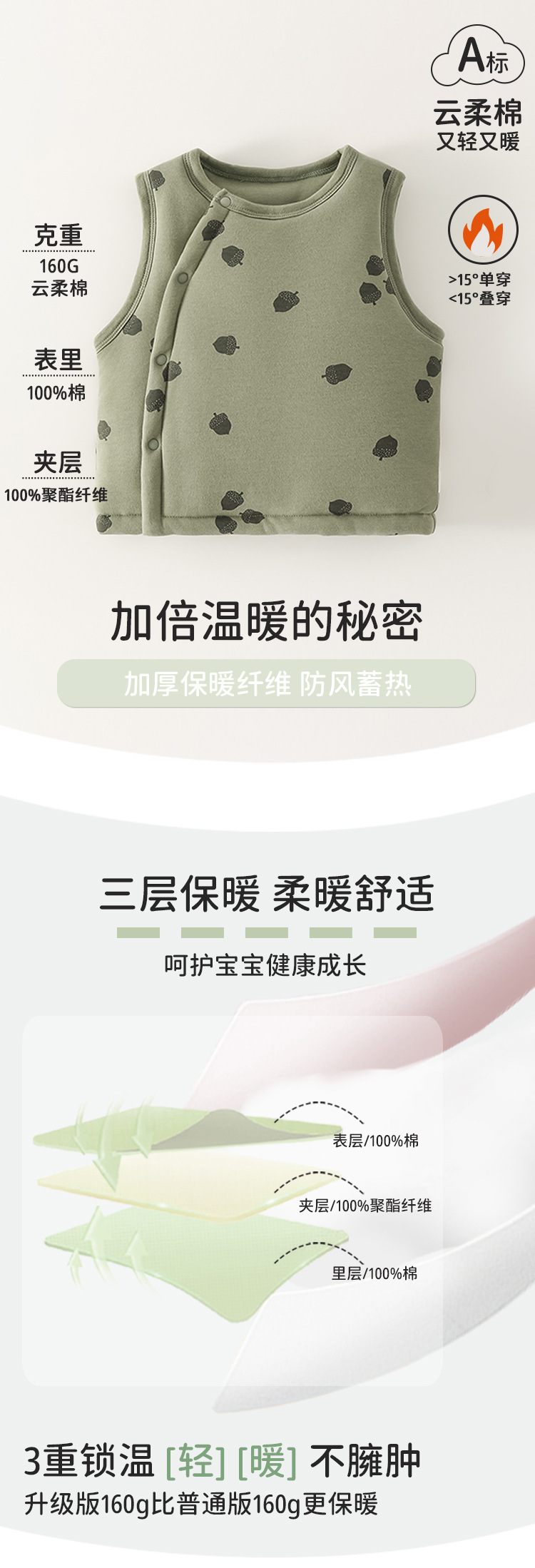 • 조끼 | 면 160g | 녹색 솔방울