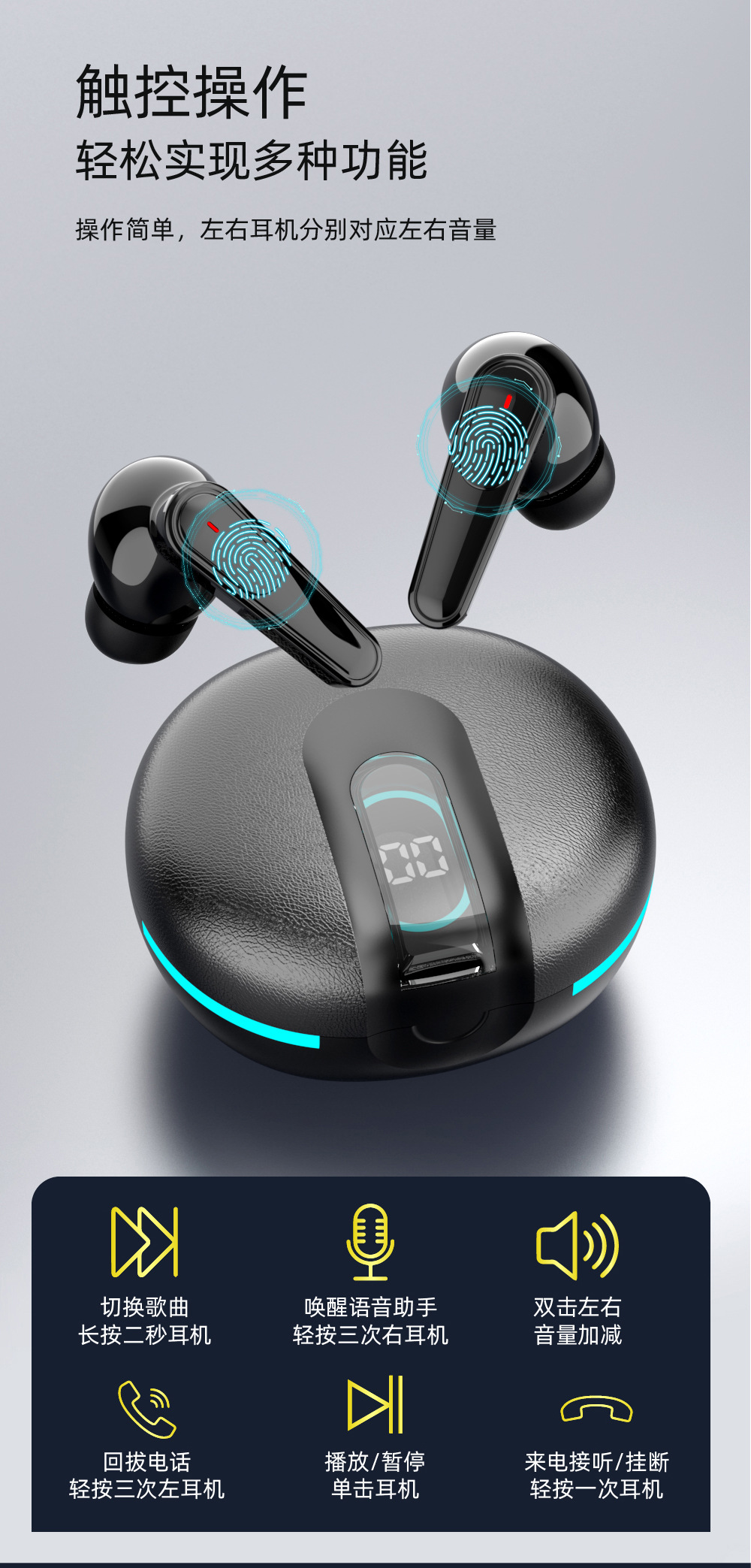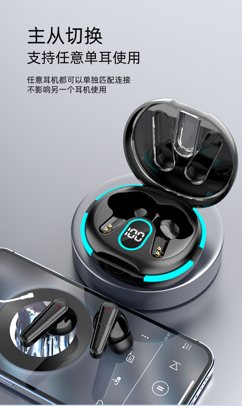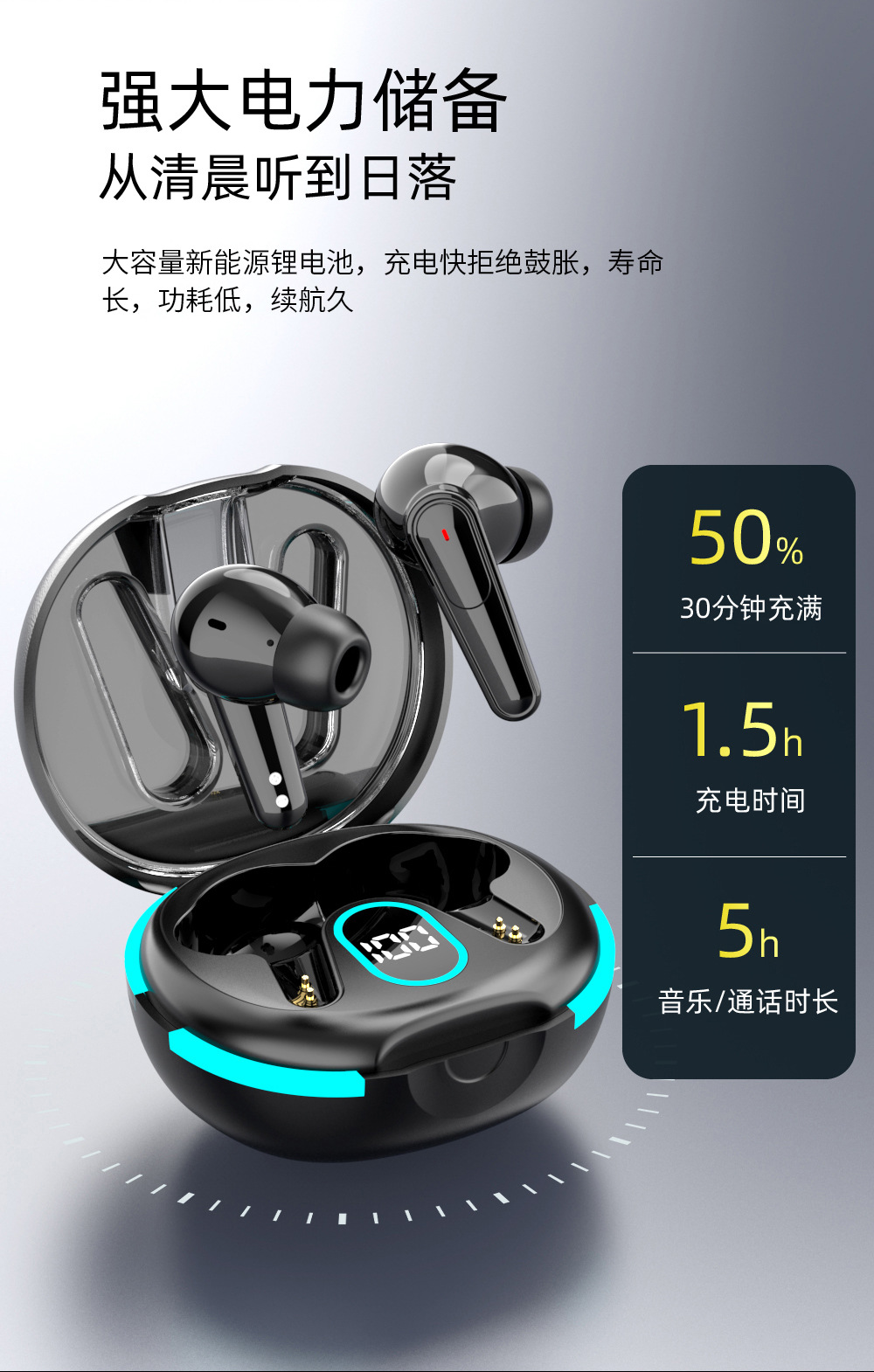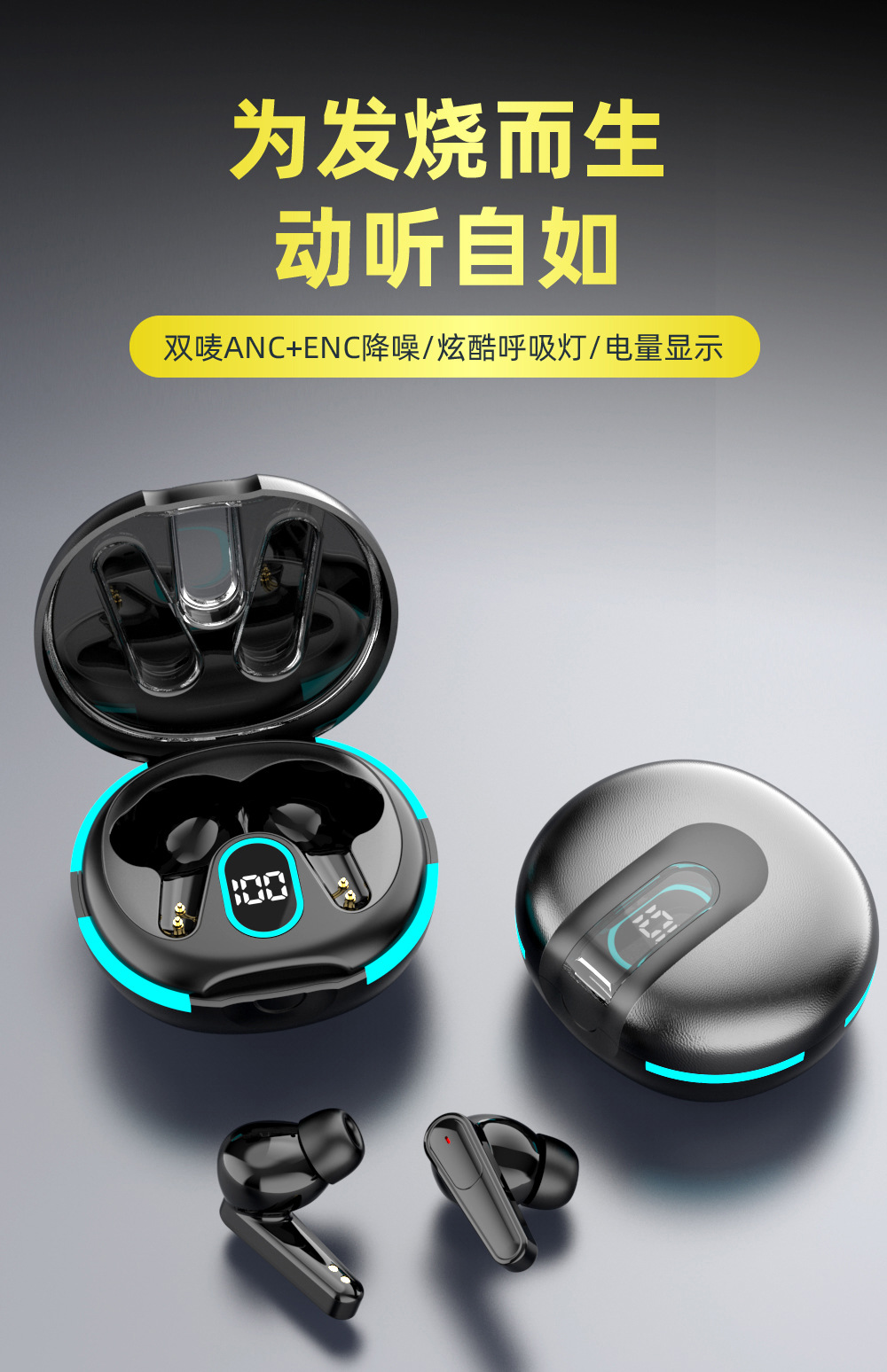 더블 마크 ANC ENC 소음 감소 귀 전력 디지털 디스플레이 헤드셋 PLUS60 블루투스 r 헤드셋 무선 모션 노이즈 감소