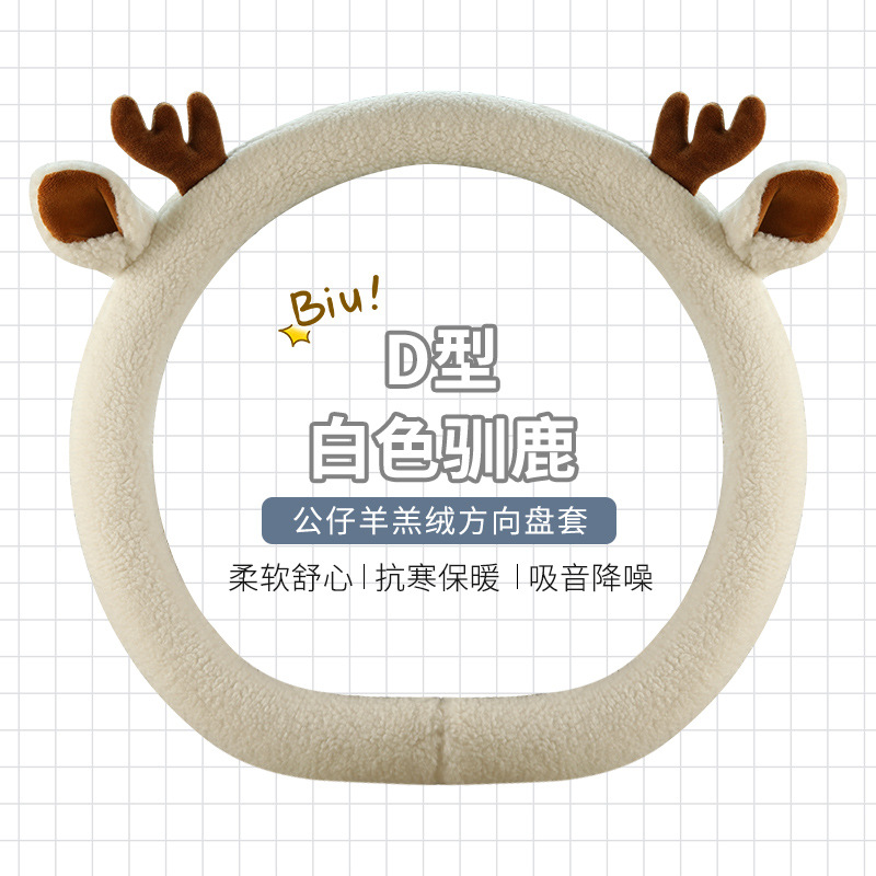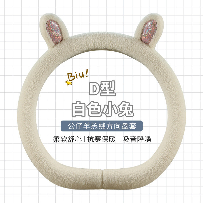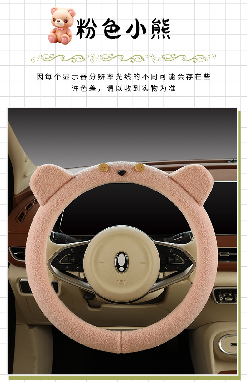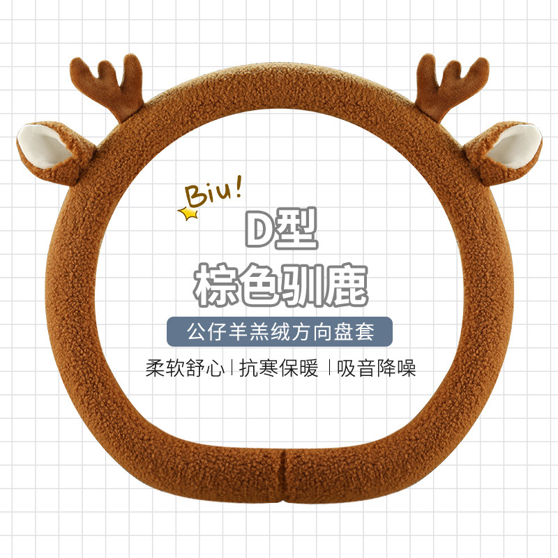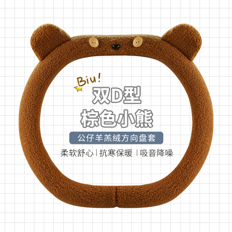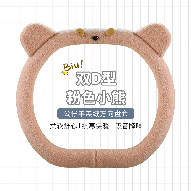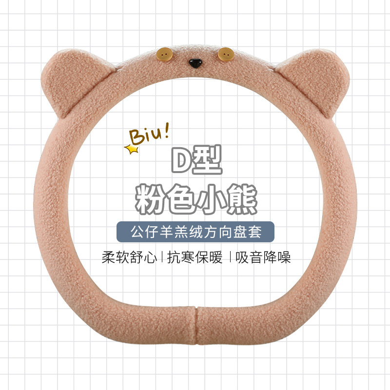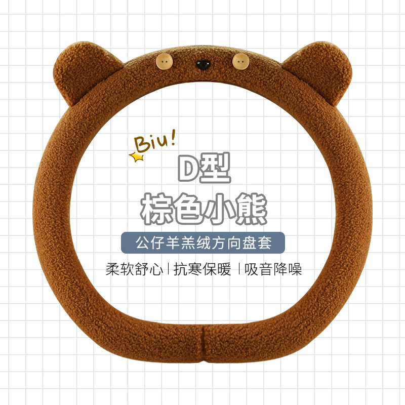 봉제 스티어링 휠 커버 겨울 테디 벨벳 D 형 귀여운 만화 자동차 인테리어 장식 소녀 보호 커버 따뜻한 핸들 커버스토어 가기