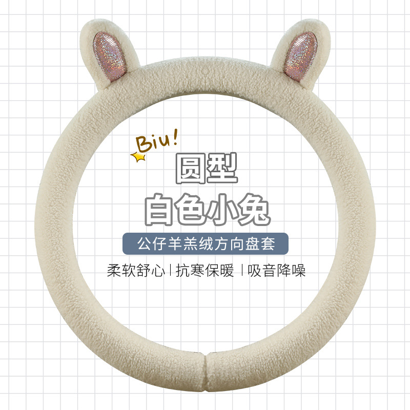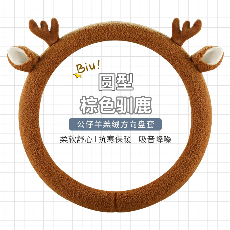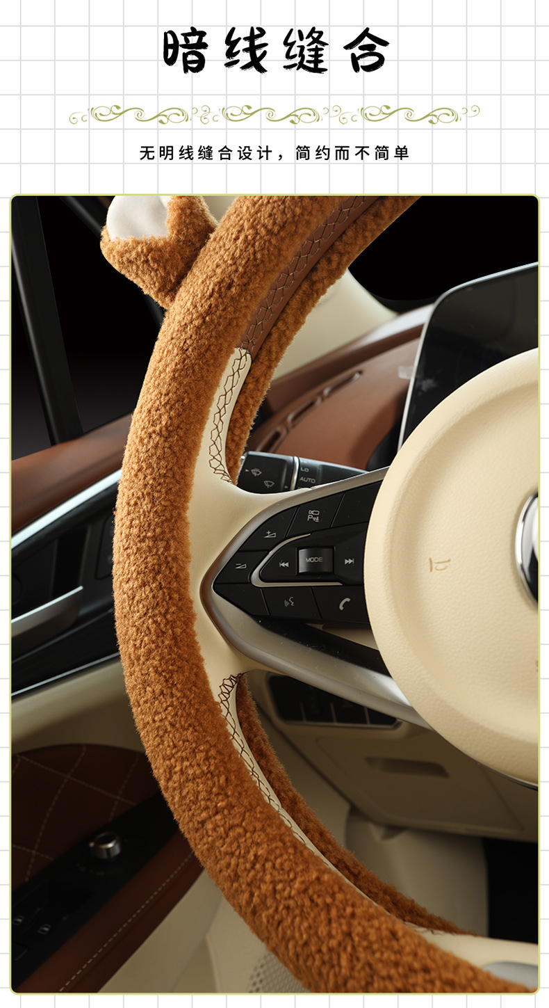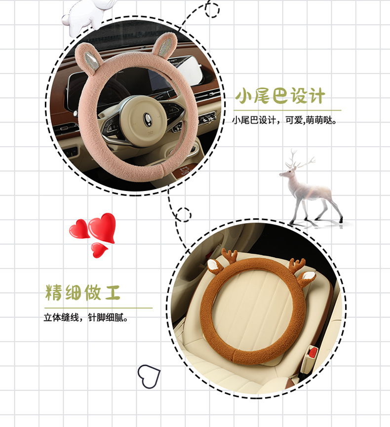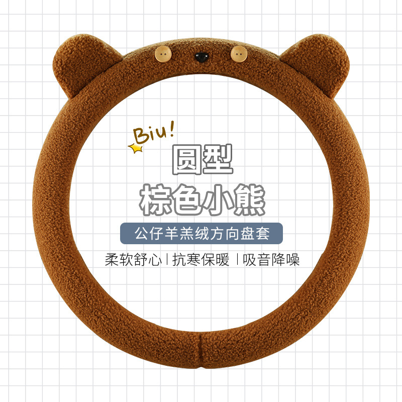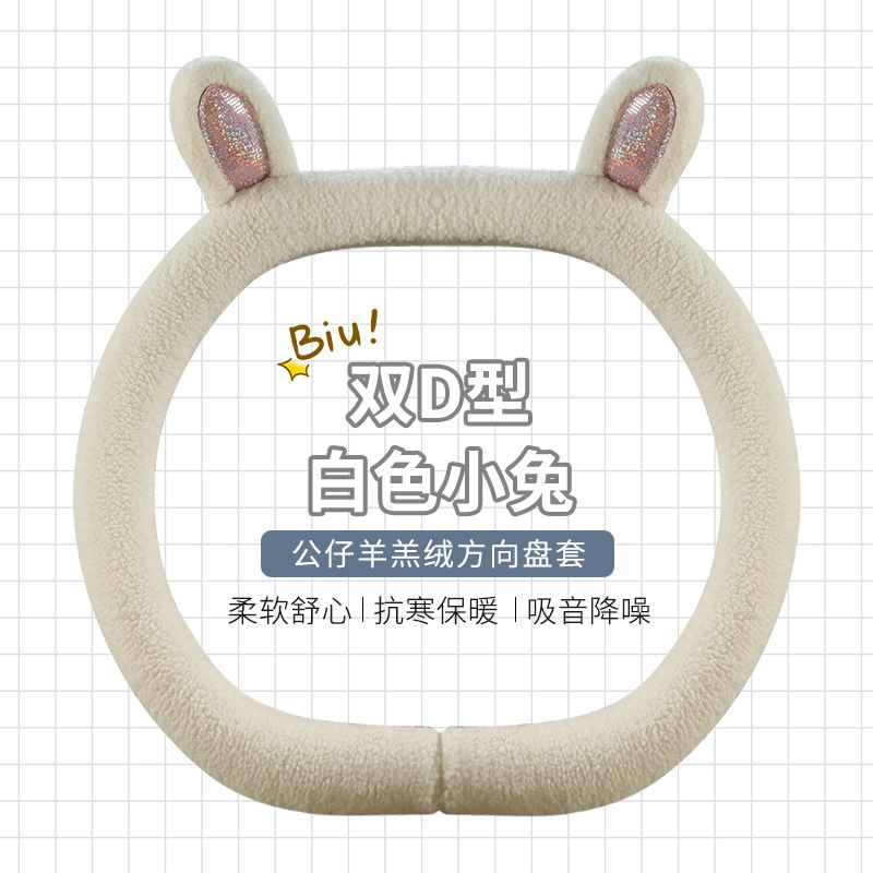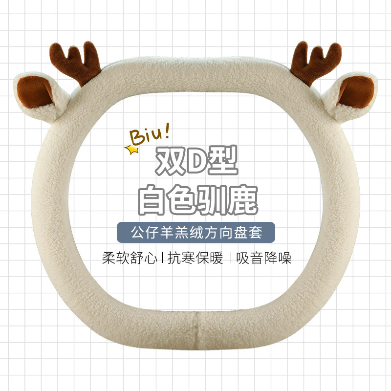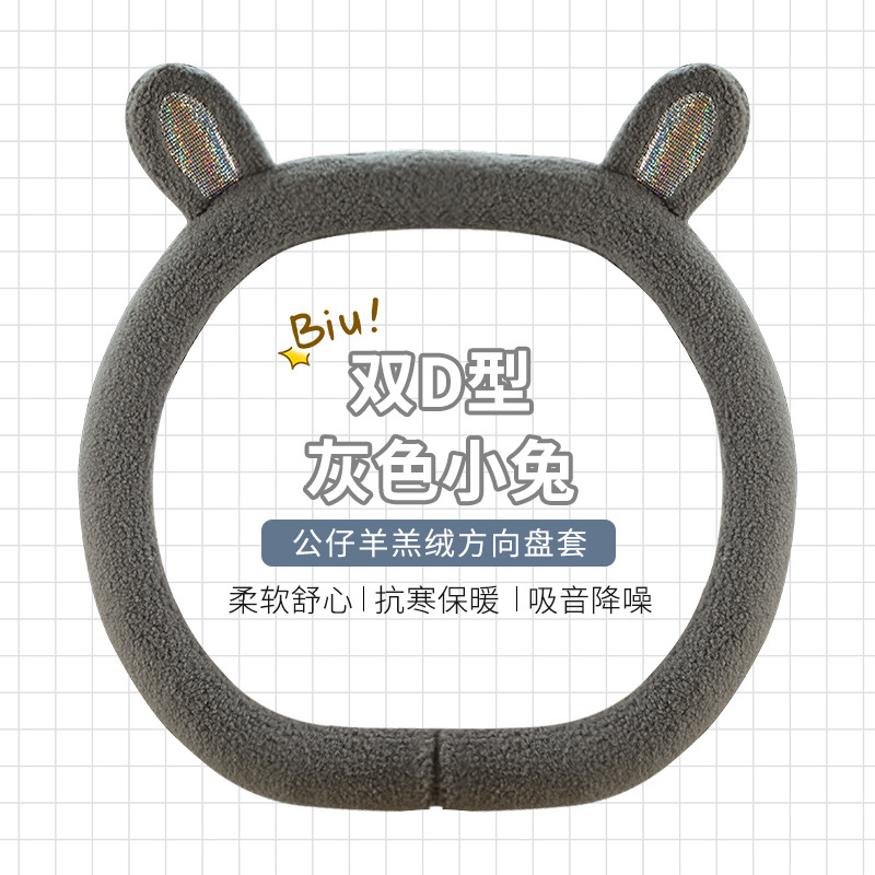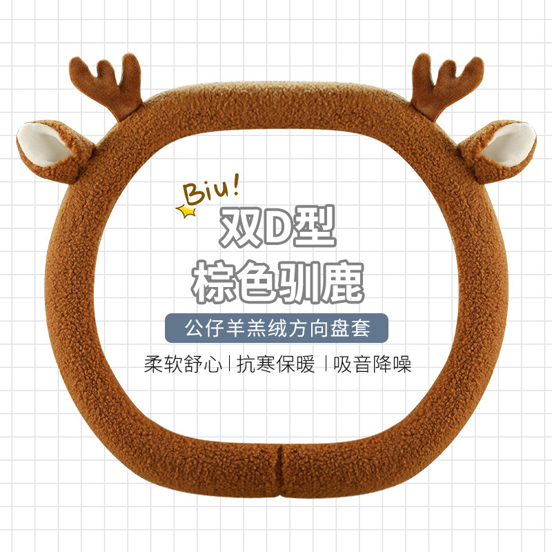 봉제 스티어링 휠 커버 겨울 테디 벨벳 D 형 귀여운 만화 자동차 인테리어 장식 소녀 보호 커버 따뜻한 핸들 커버스토어 가기