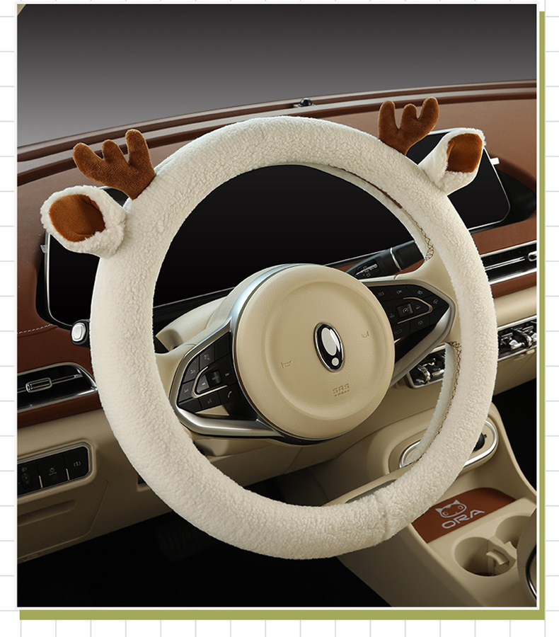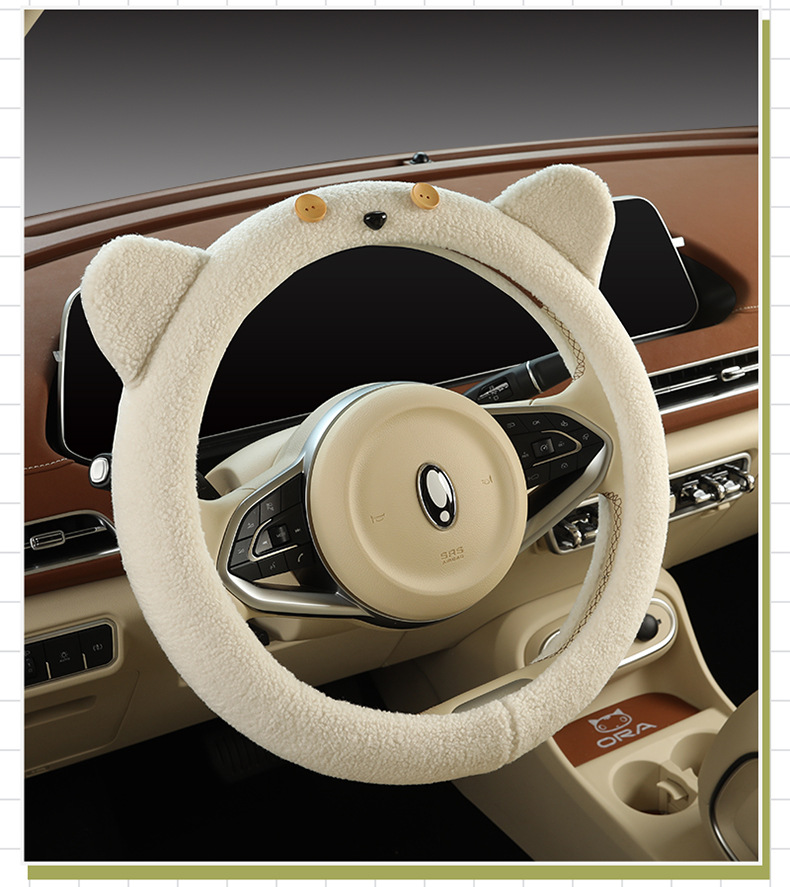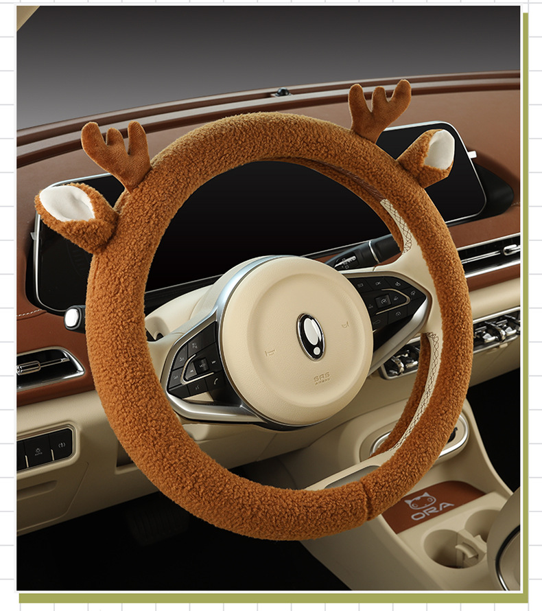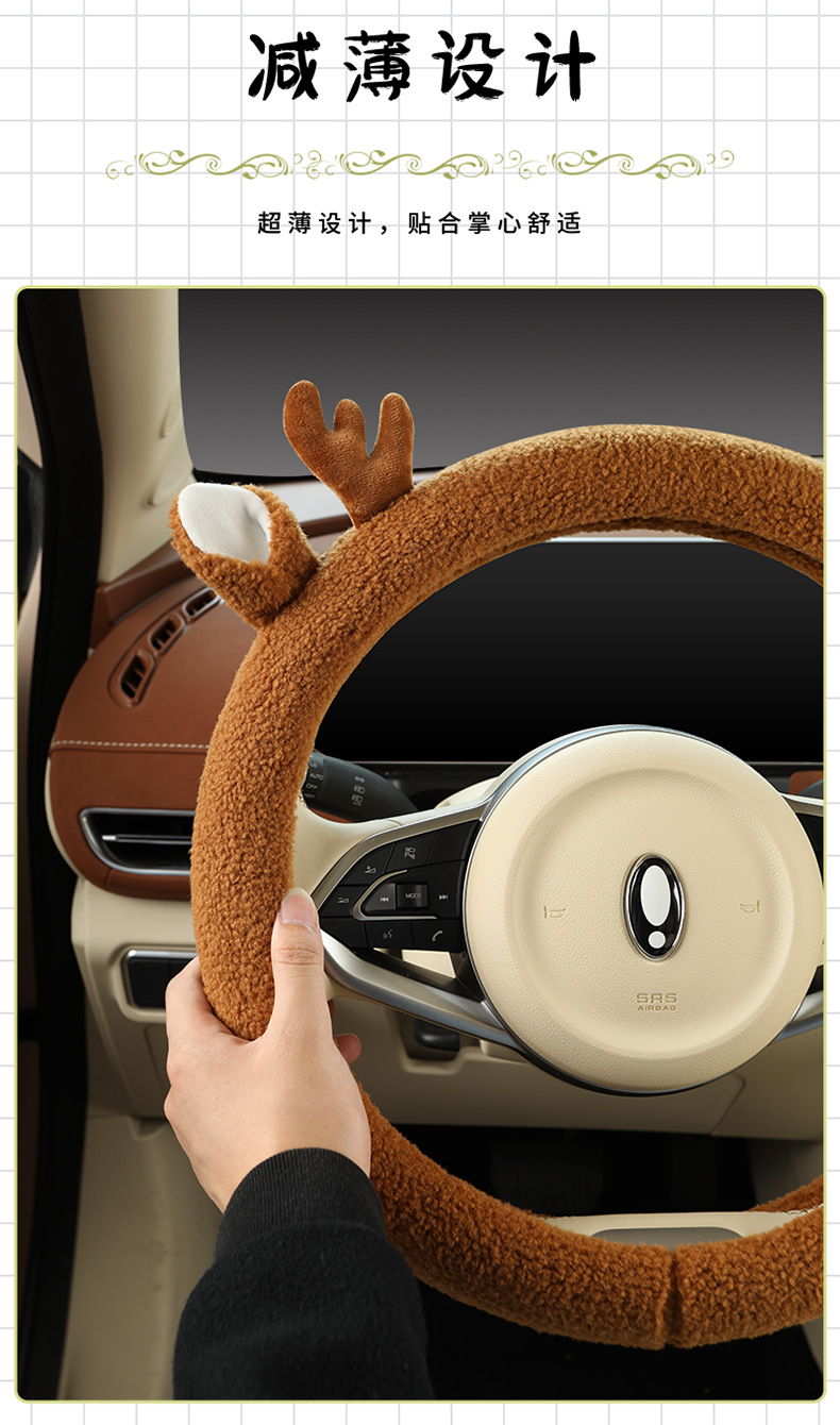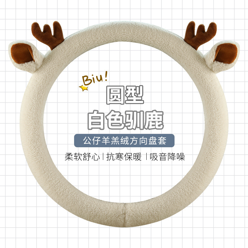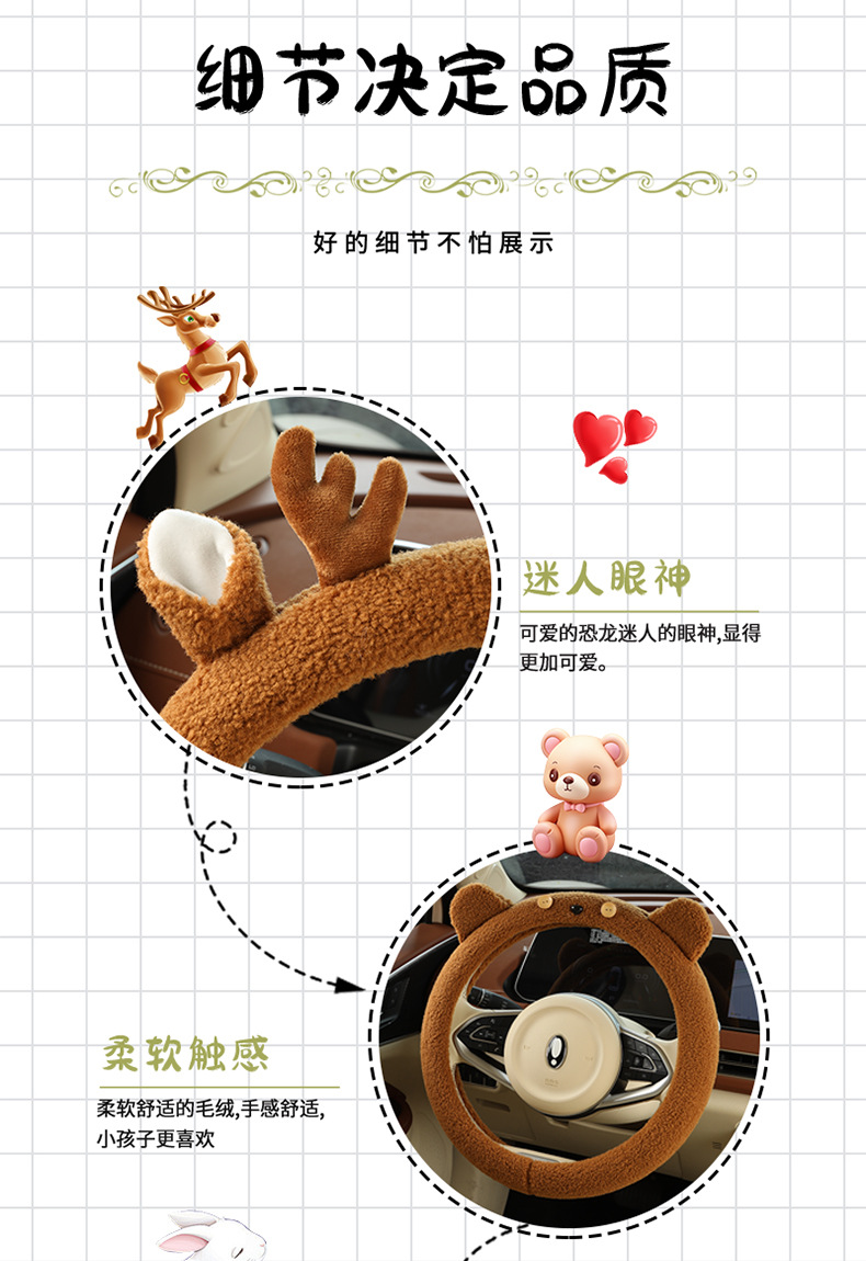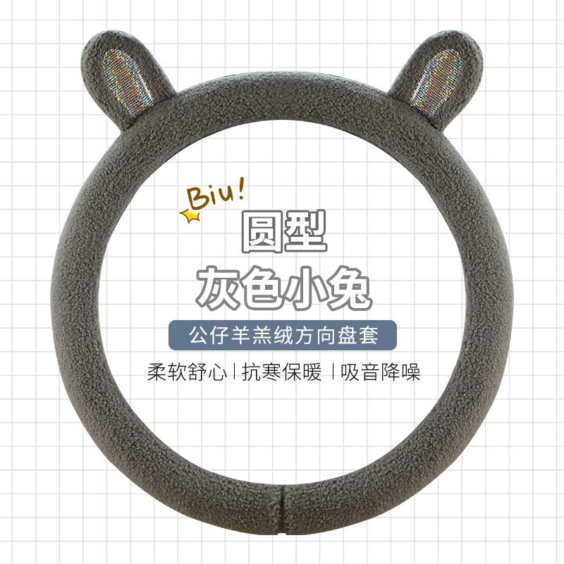 봉제 스티어링 휠 커버 겨울 테디 벨벳 D 형 귀여운 만화 자동차 인테리어 장식 소녀 보호 커버 따뜻한 핸들 커버스토어 가기