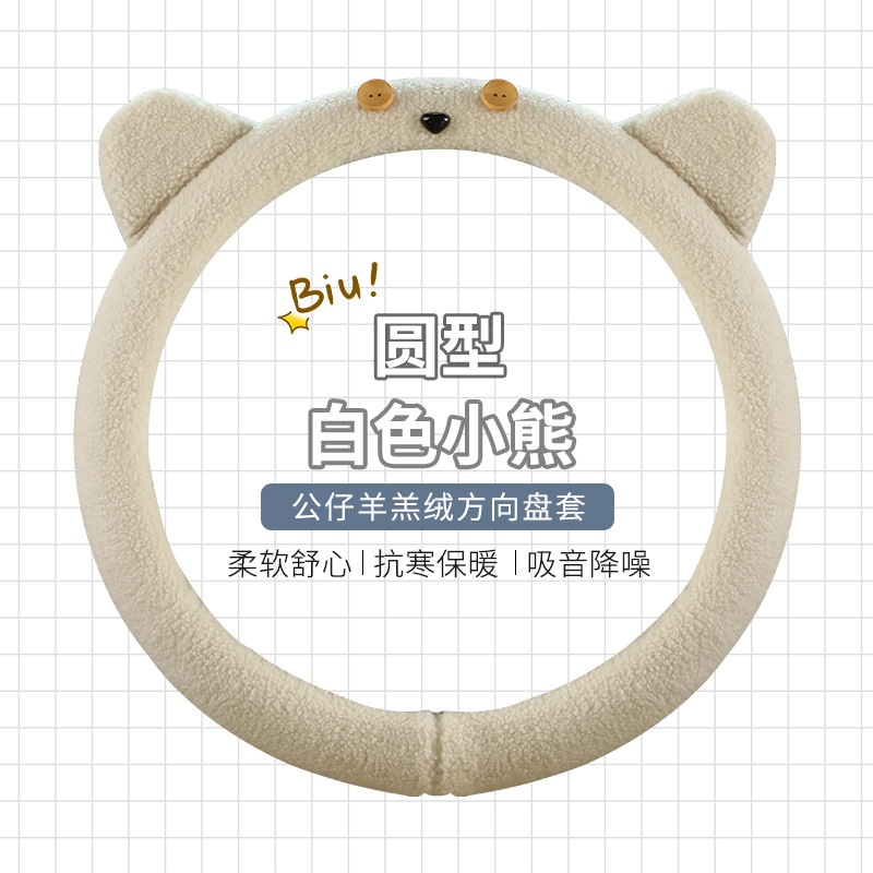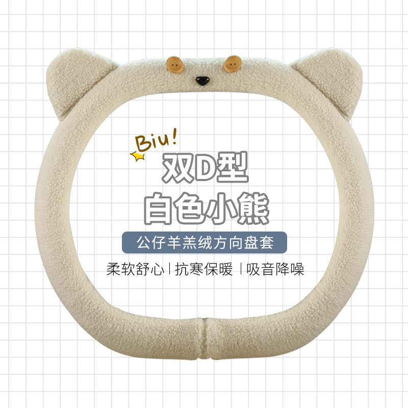 봉제 스티어링 휠 커버 겨울 테디 벨벳 D 형 귀여운 만화 자동차 인테리어 장식 소녀 보호 커버 따뜻한 핸들 커버