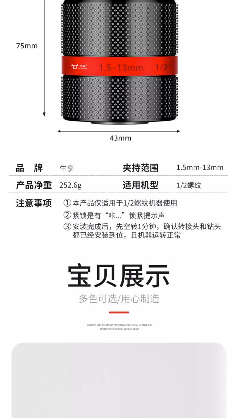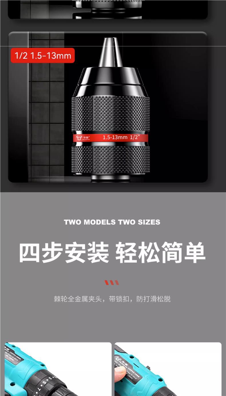 • 래칫 풀 메탈 척 [1.5-13mm] + 전동 렌치 어댑터 1/2
