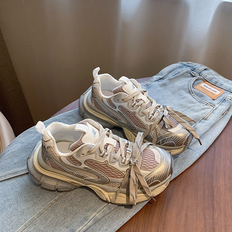 여성을위한 정품 가죽 아빠 신발 2024 새로운 가을 두꺼운 밑창 높이 증가 캐주얼 스포츠 신발 트렌디 한 다목적 운동화스토어 가기